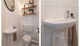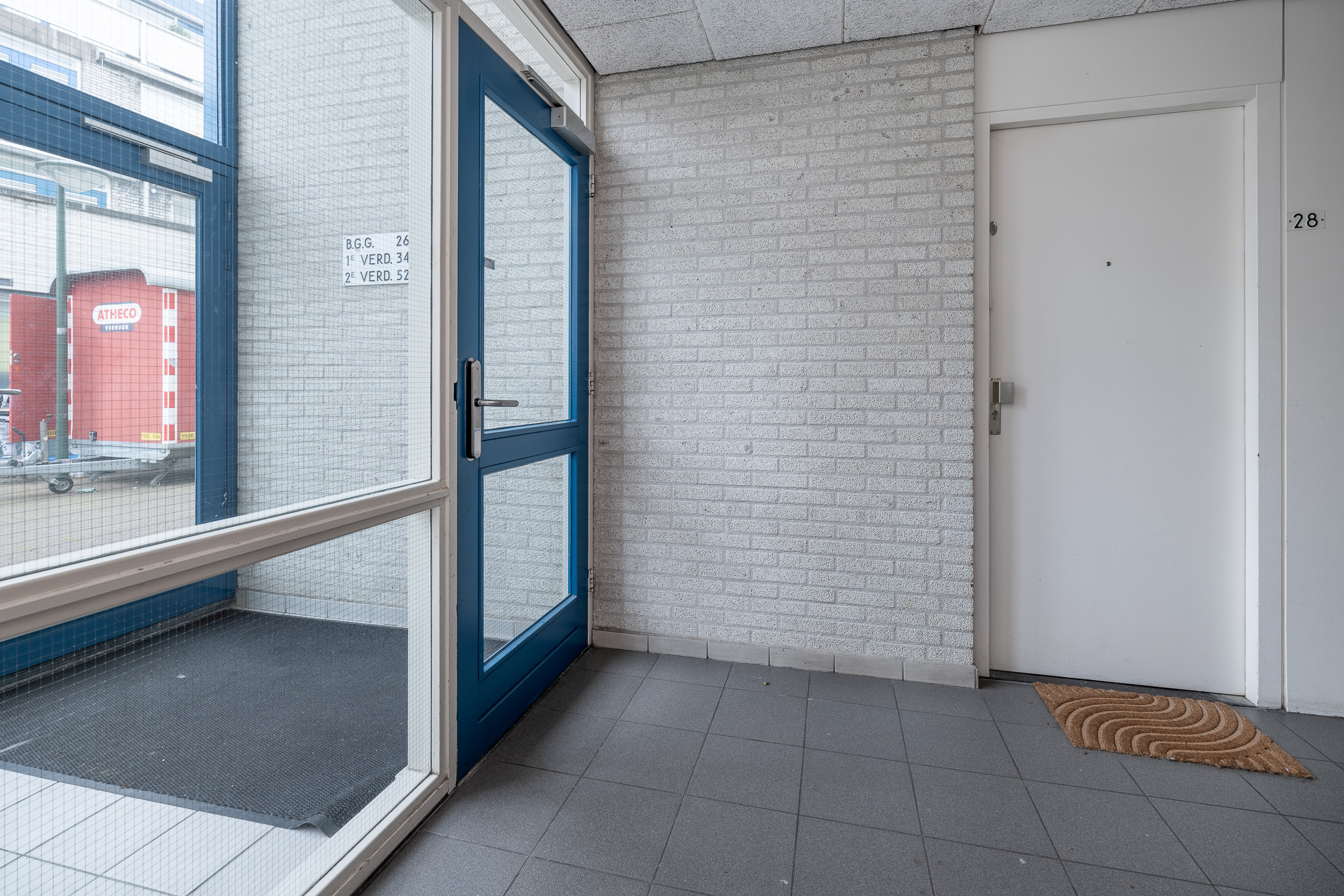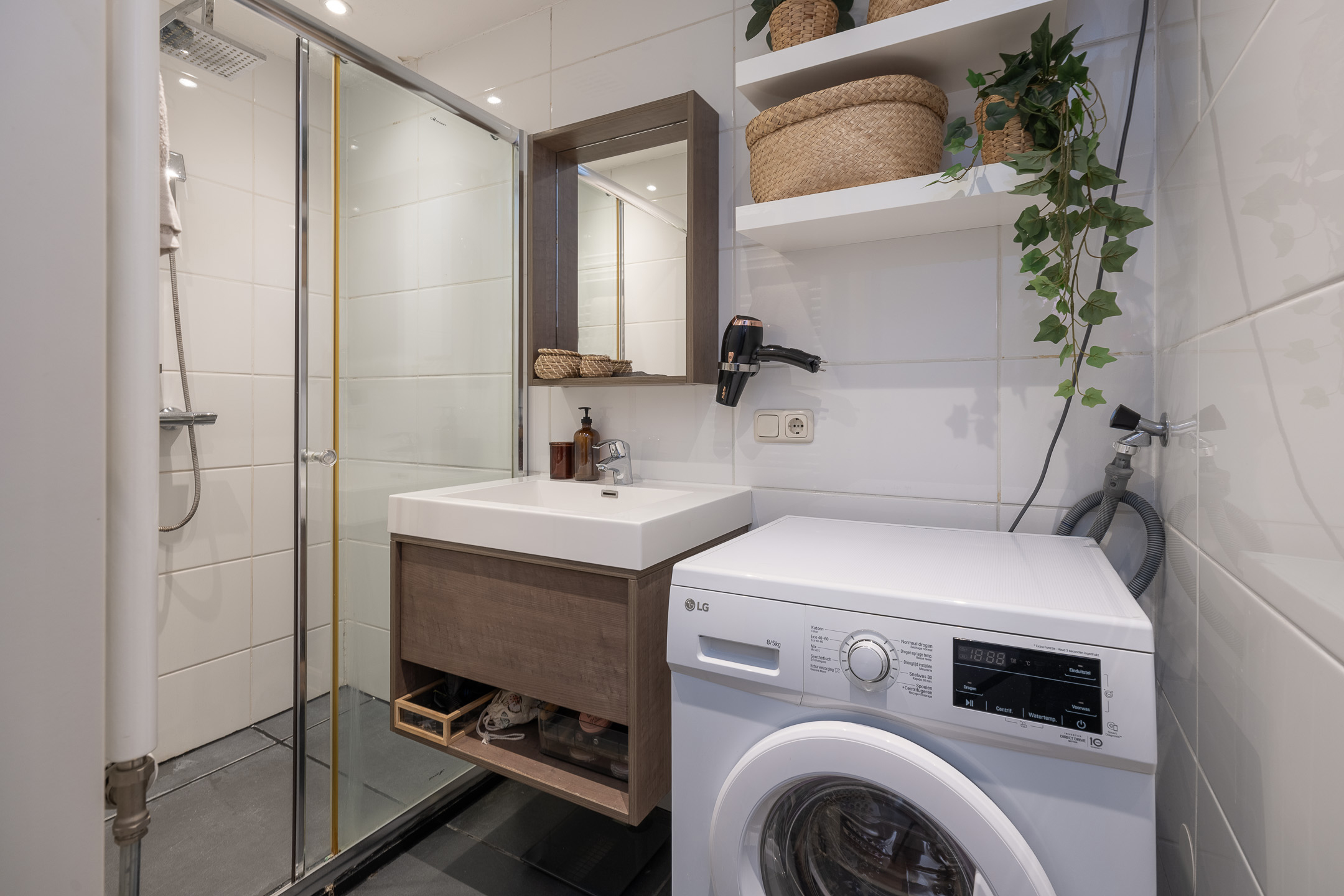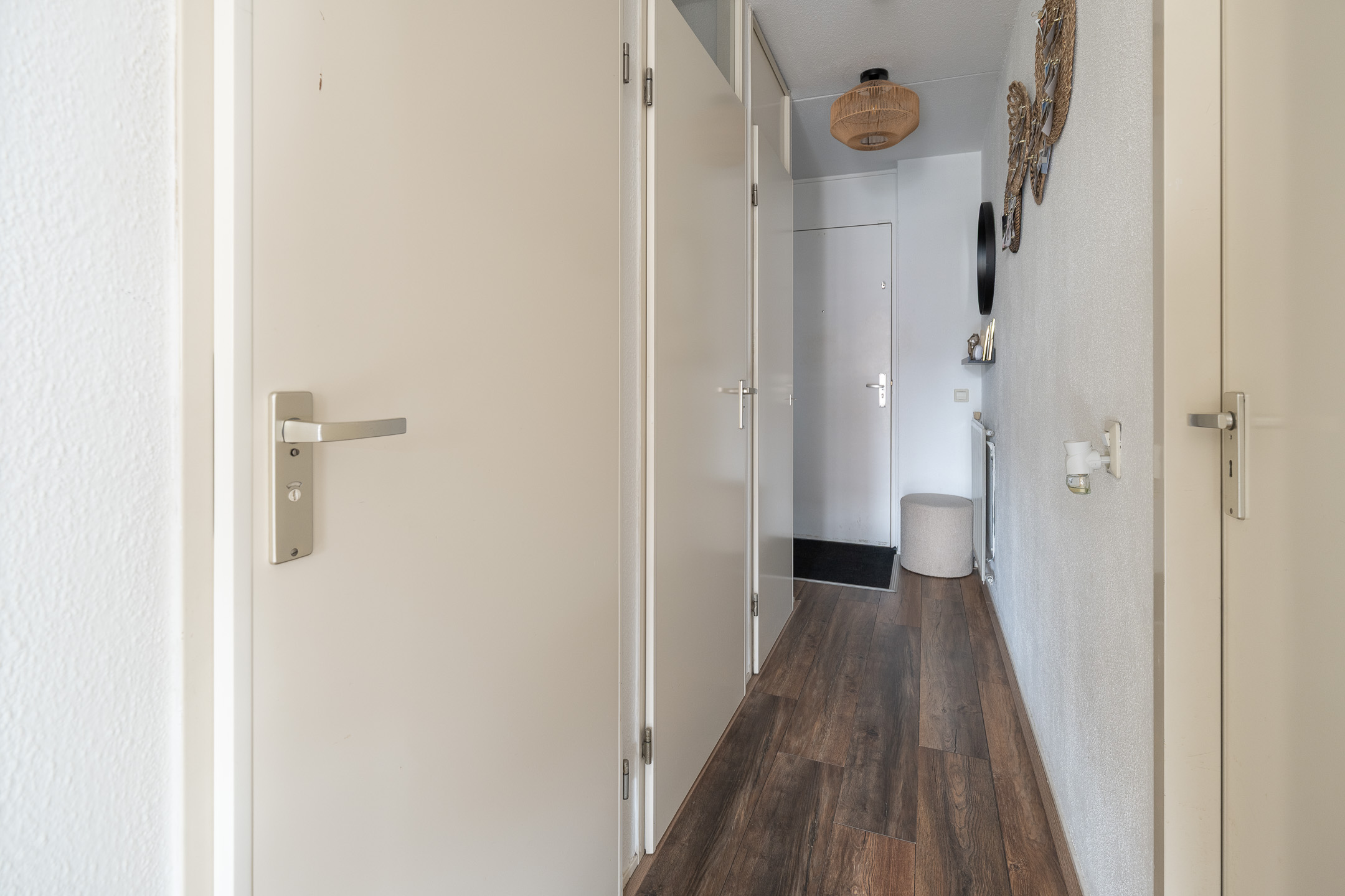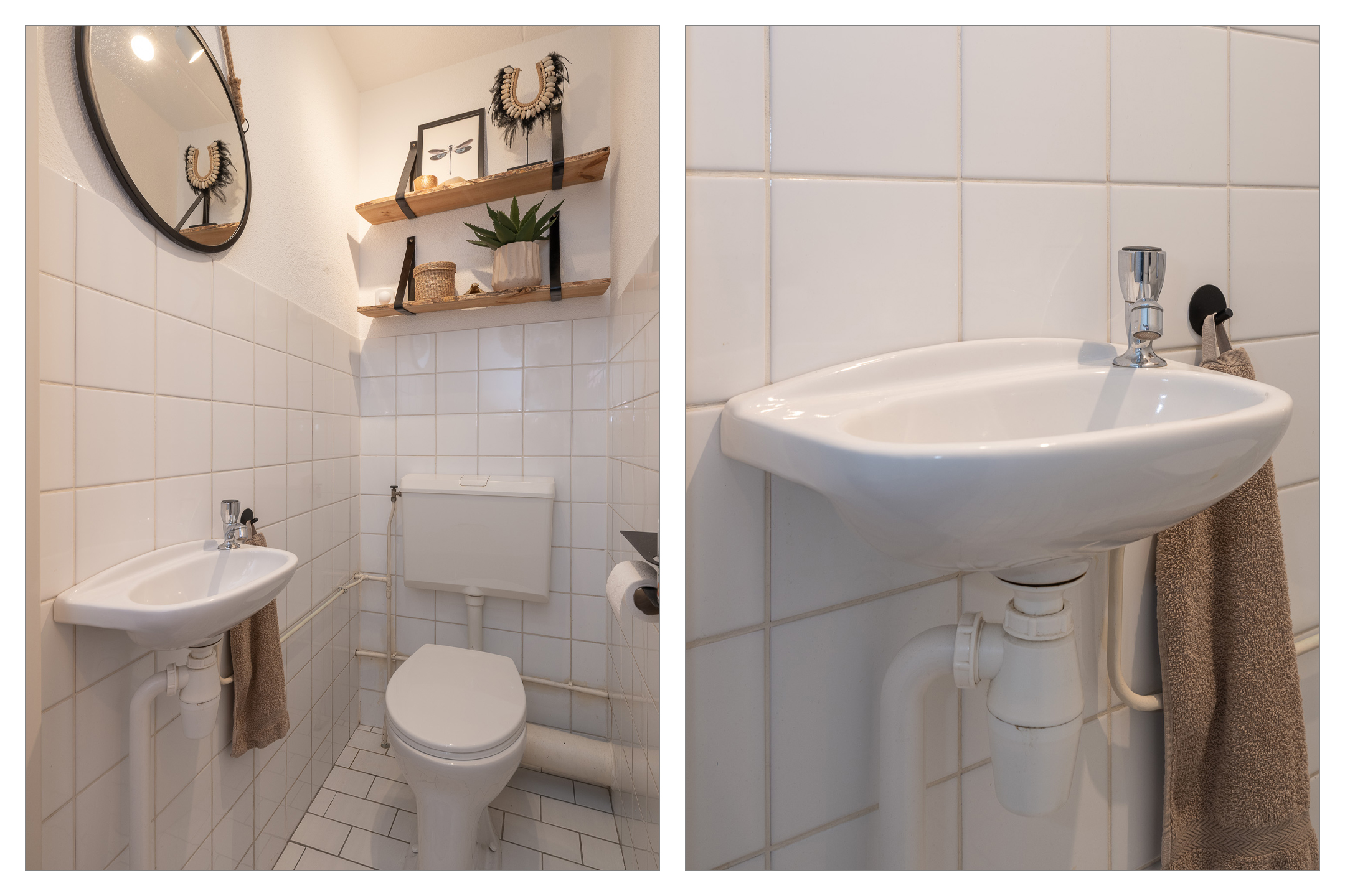 Via de entree kom je in de hal met ruimte voor een garderobe, toegang tot de meterkast en een praktische berging met cv-installatie (Bosch, 2014). Vanuit de hal bereik je het separate toilet met fontein en de badkamer met douche, wastafel en wasmachineaansluiting.