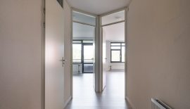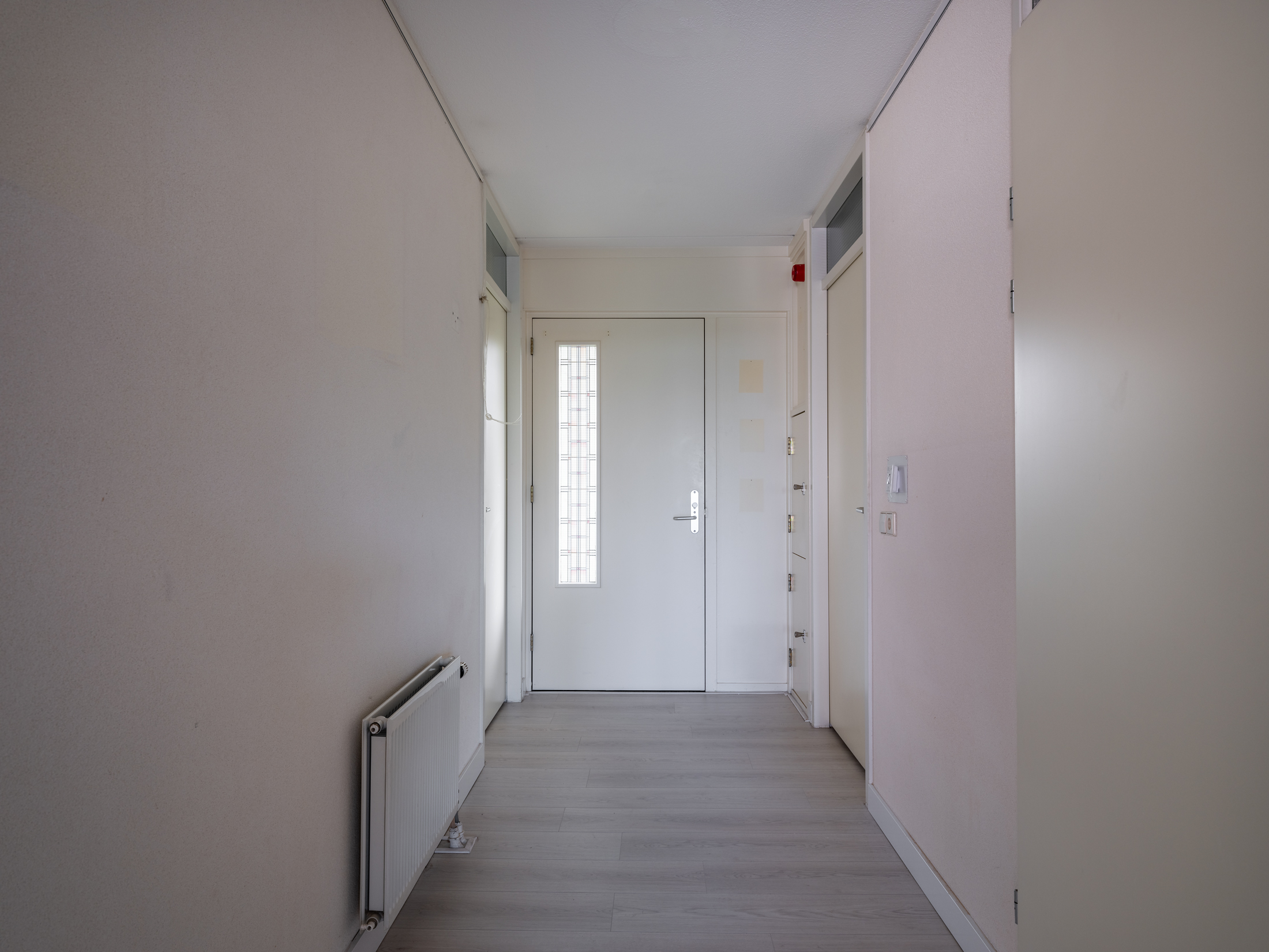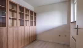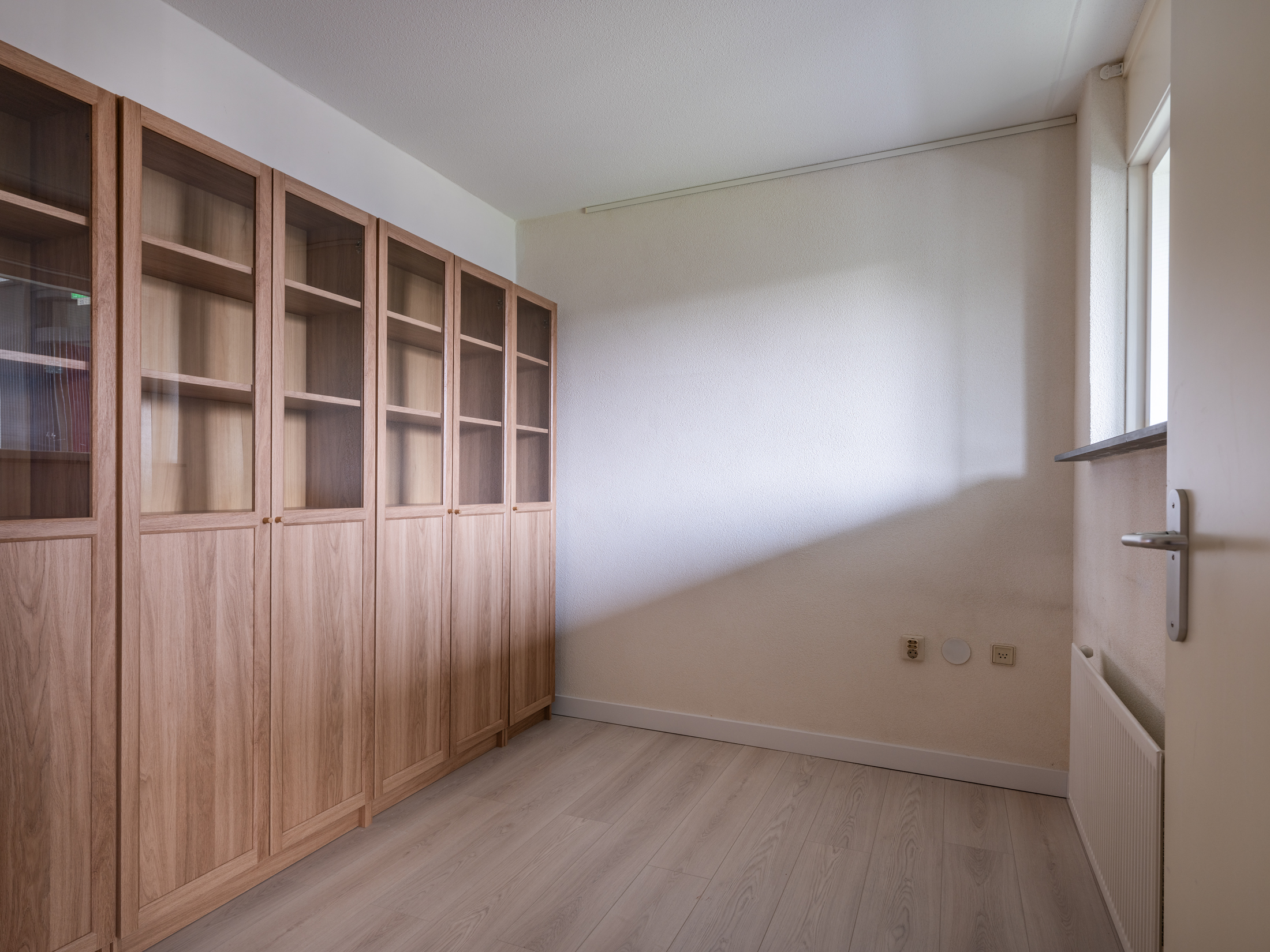 Aan de voorzijde van het appartement vindt u de tweede slaapkamer. Tegenover deze slaapkamer ligt de inpandige berging, waar de warmteterugwininstallatie staat en u de opstelplaats voor wasmachine en droger vindt.