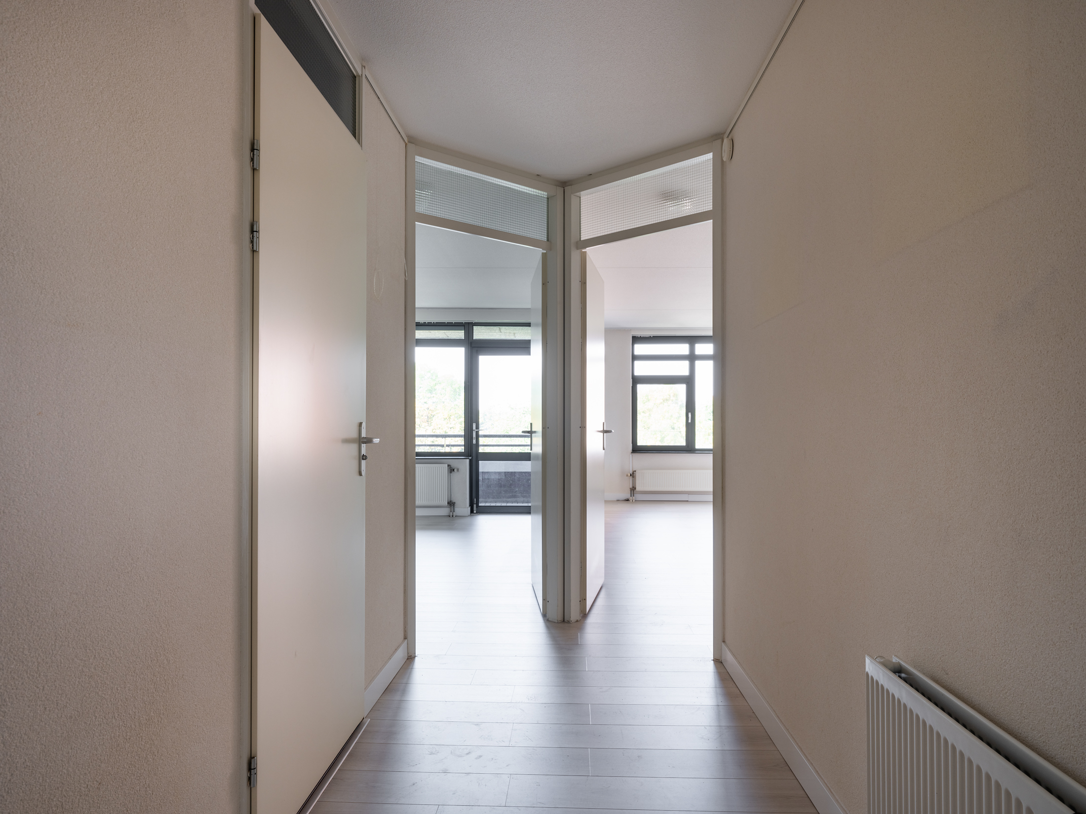Het appartement beschikt over een ruime en lichte woonkamer met open keuken, waar u alle ruimte heeft voor een gezellige zithoek en een eettafel. Er zijn twee goed bemeten slaapkamers, perfect voor zowel een hoofdslaapkamer als een logeer- of hobbykamer. De badkamer is netjes en dankzij de gelijkvloerse indeling is alles binnen handbereik. Tot slot is het inpandige balkon op het westen een heerlijke plek om te ontspannen. Hier kunt u in alle rust genieten van de middag- en avondzon, met een kop koffie of een goed boek.
