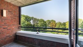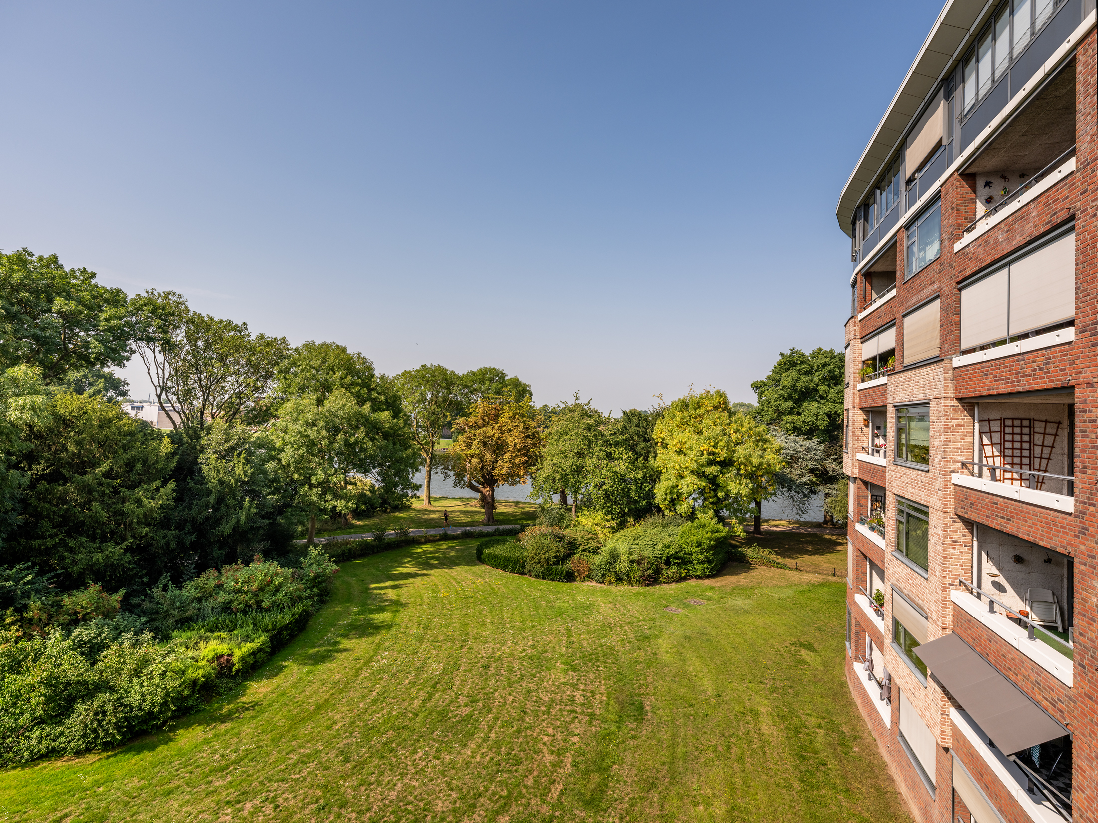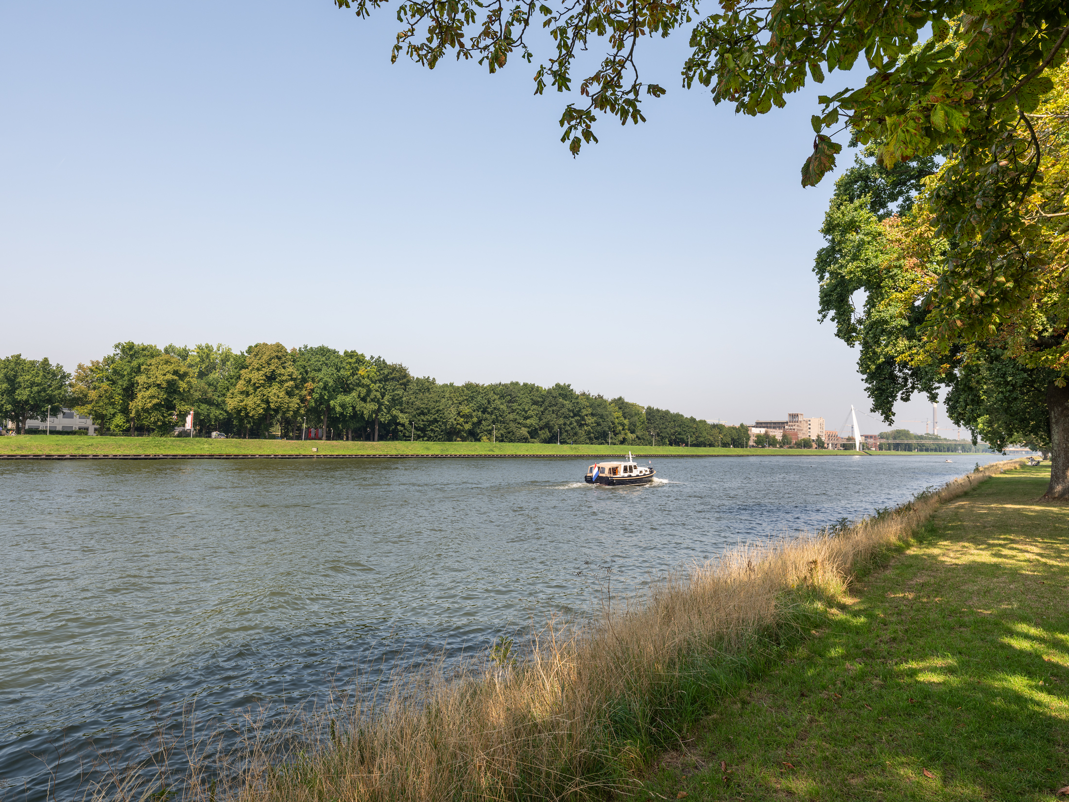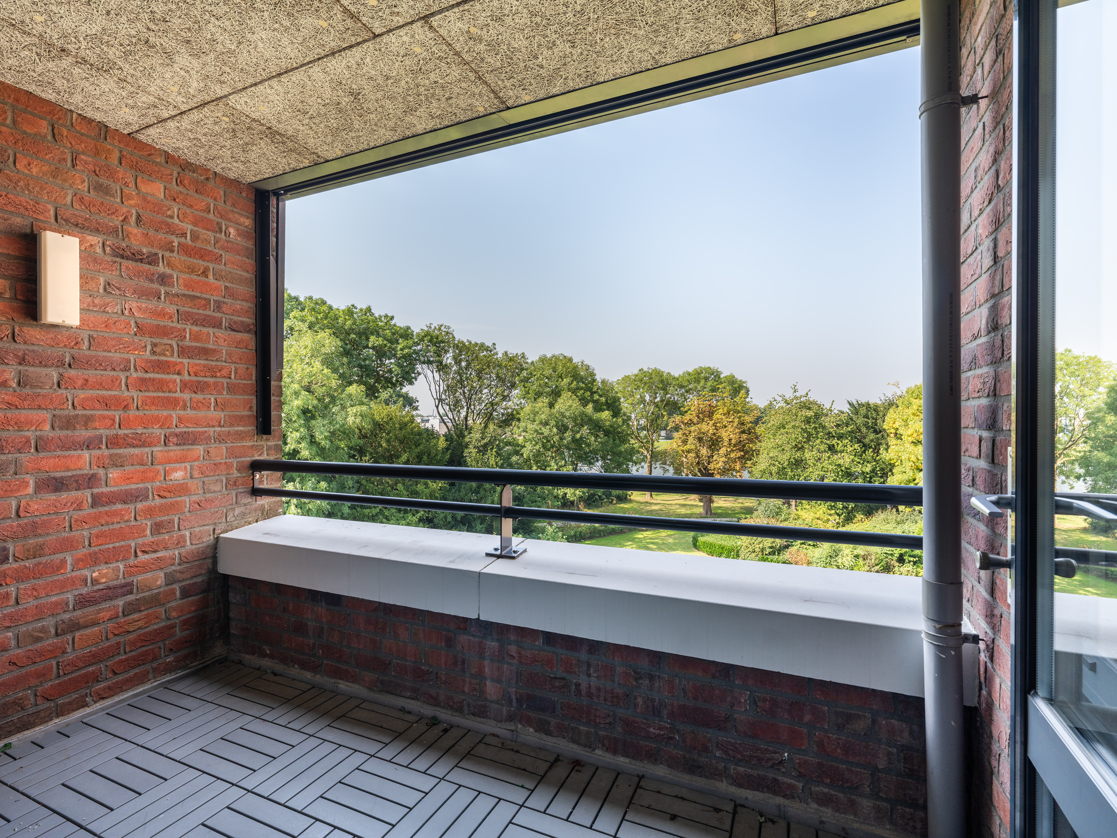 Heerlijk beschut inpandig balkon, gelegen op het westen en met schitterend uitzicht over het groen en het kanaal.