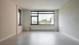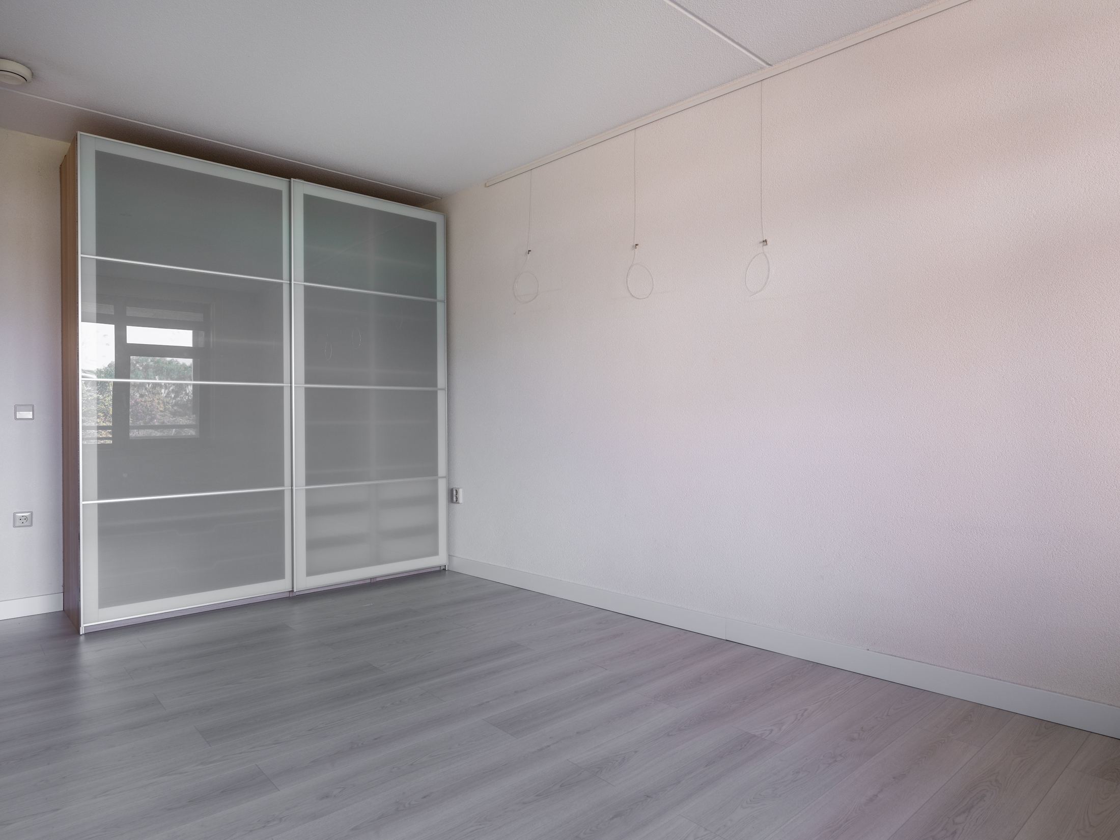 Ruime entree/hal vanwaar uit alle ruimtes bereikbaar zijn. Aan de achterzijde vindt u de ruime woonkamer. Vanuit de woonkamer heeft u een prachtig uitzicht over het groen en het kanaal. De wanden in de woonkamer zijn netjes afgewerkt en er ligt een mooie laminaatvloer, die tevens doorloopt in de hal en slaapkamers. De ramen beschikken over horren. In de woonkamer vindt u tevens een nette open keuken, die voorzien is van een koelkast en inductiekookplaat. Naast de woonkamer ligt de hoofdslaapkamer, die zeer ruim te noemen is en toegang heeft tot het balkon.