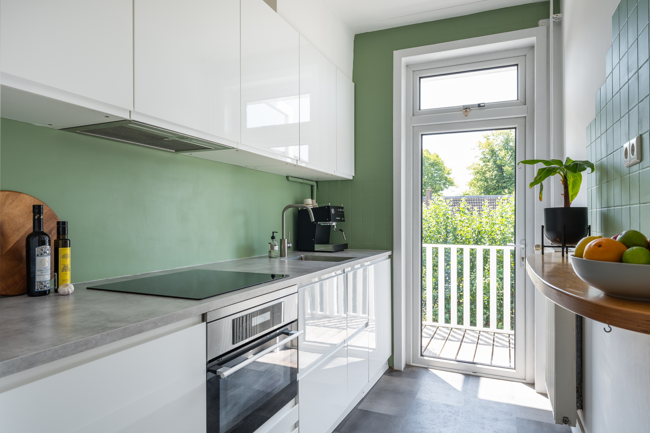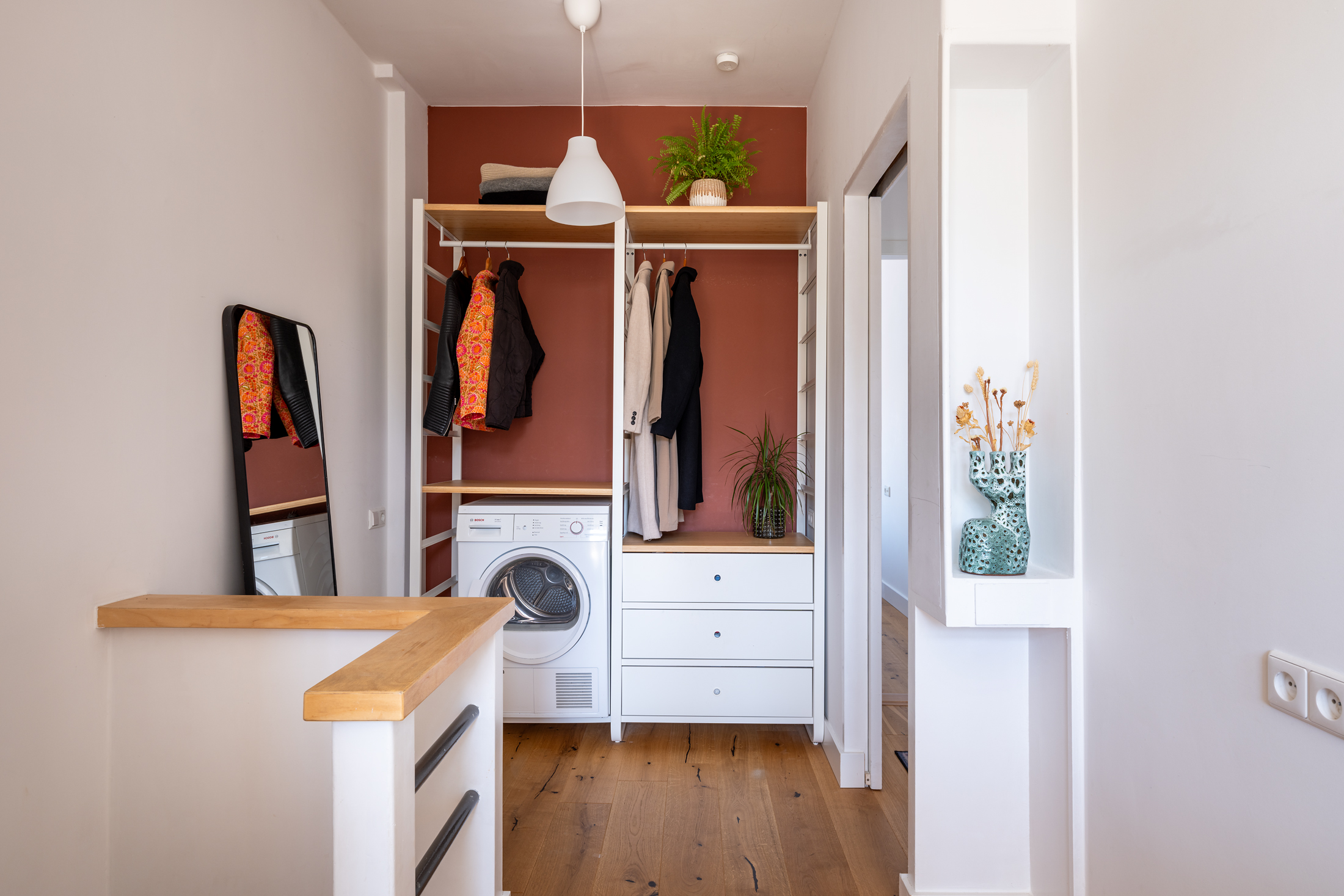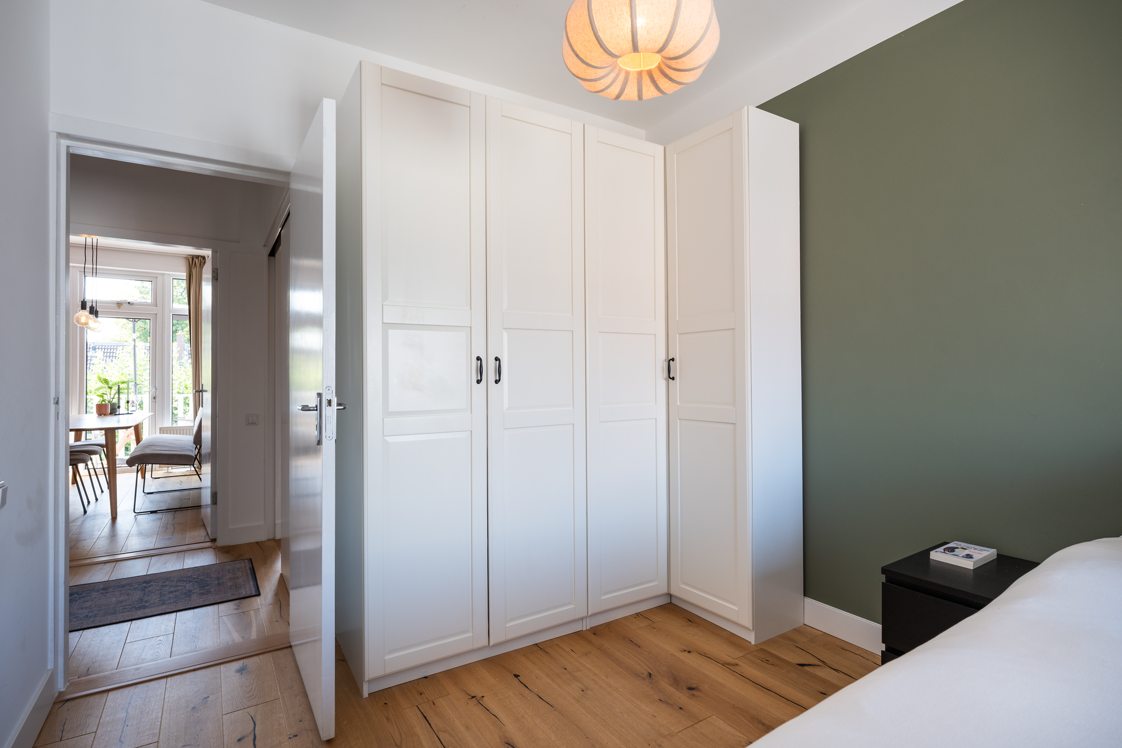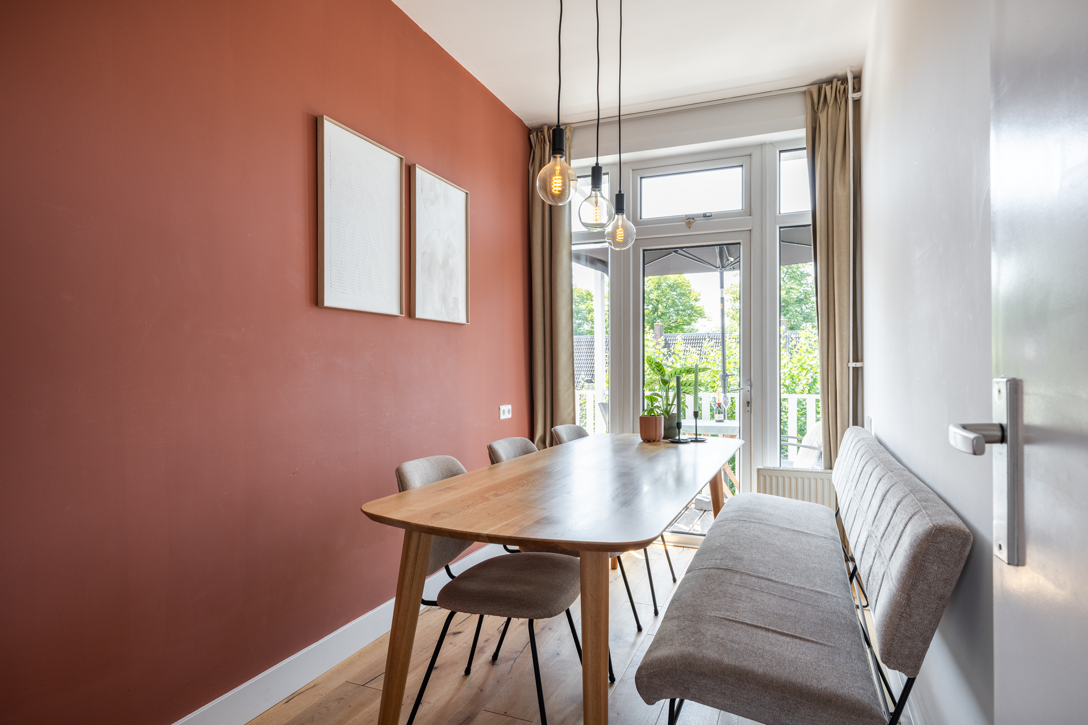 Tweede verdieping: Ruime en lichte overloop met een garderoberuimte en een werkplek. Aan de voorzijde van het appartement vind je een ruime slaapkamer en woonkamer. Een aparte eetkamer vind je aan de achterzijde. Naast de eetkamer ligt de keuken, die in 2023 compleet is vernieuwd en voorzien van een inductie kookplaat, oven met magnetronfunctie, koelkast, vriezer, vaatwasser, wasmachine-aansluiting en een verdiept aanrecht. Ook de cv-opstelling (Intergas, 2022) vind je in de keuken. Tot slot de badkamer, die is netjes en voorzien van een douche en wastafelmeubel. De toiletruimte is separaat.