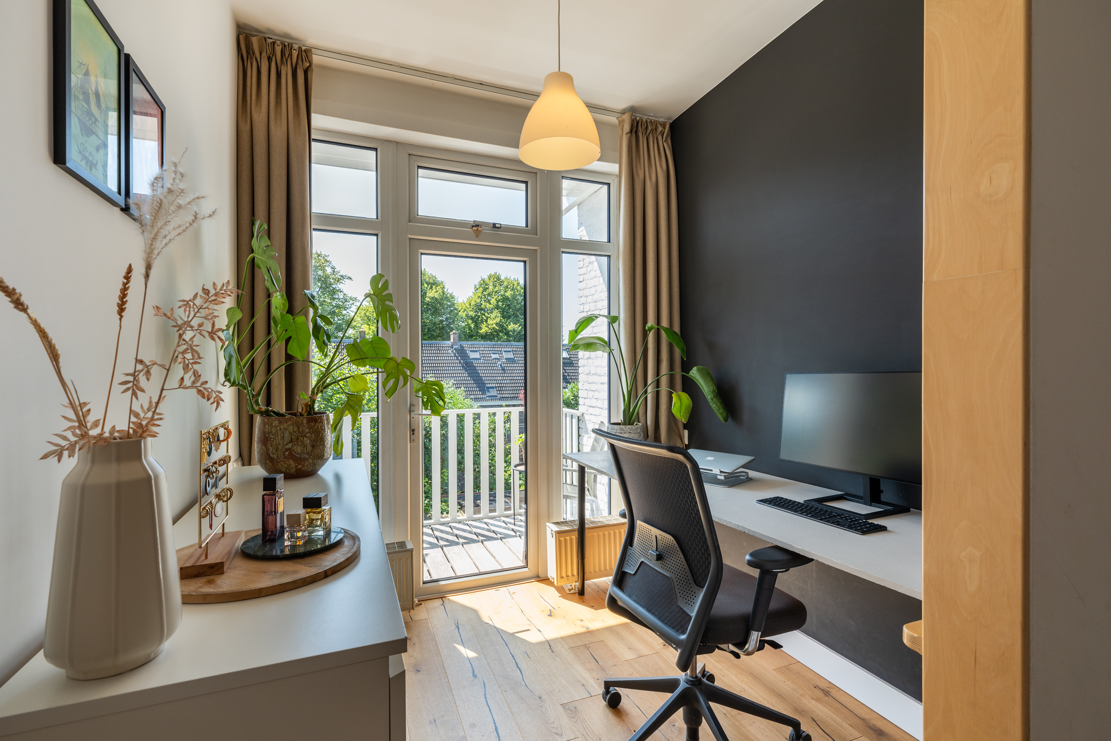 Met een woonoppervlakte van 69m2 biedt de woning een gezellige woonkamer, aparte eetkamer (ook te gebruiken als tweede slaapkamer), ruime slaapkamer én een lichte overloop met een praktische thuiswerkplek. En met het balkon op het zuidwesten geniet je van de gehele dag zon (zelfs tot in de late uurtjes).