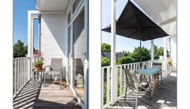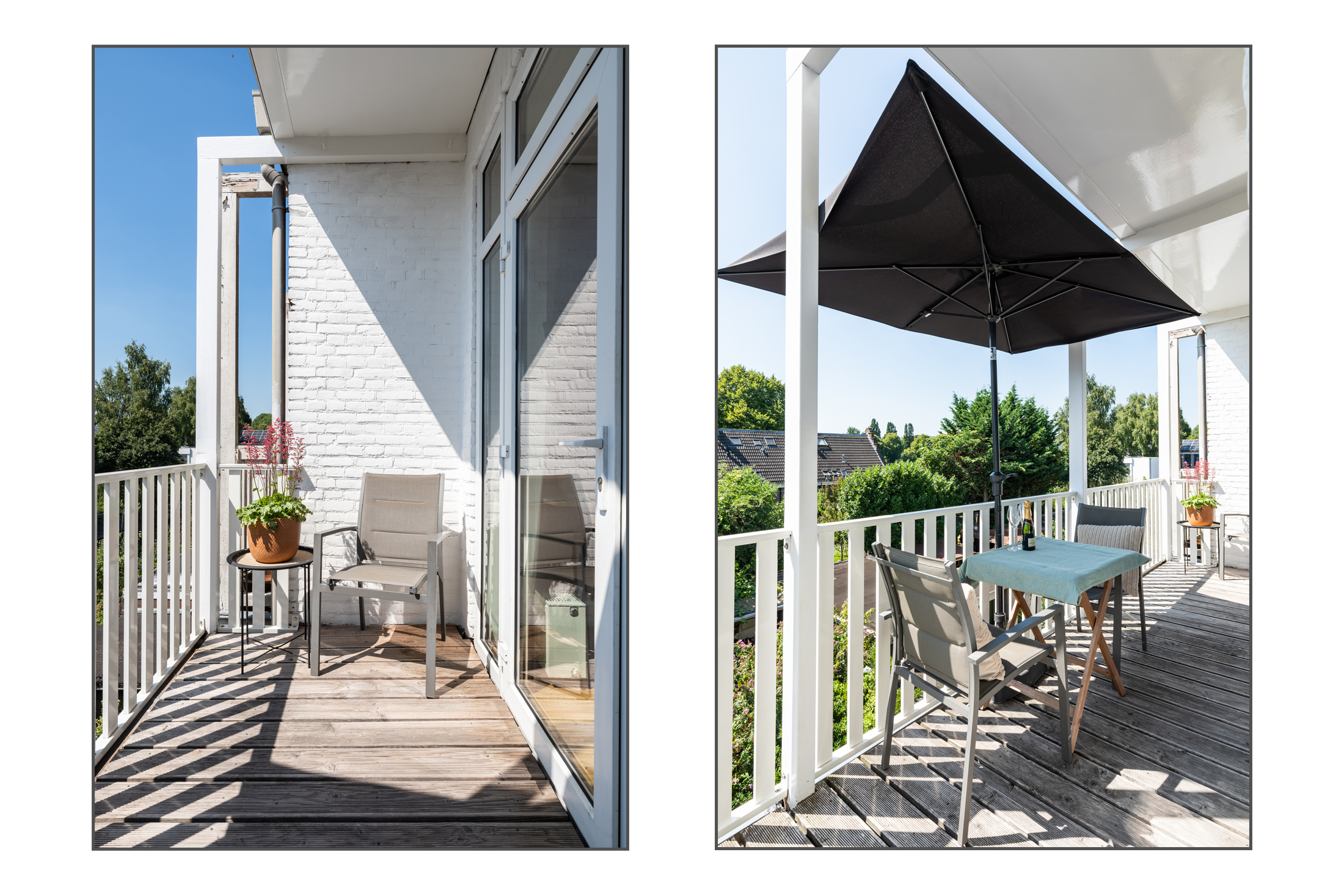BUITENRUIMTE: Zeer ruim en zonnig gerenoveerd en geschilderd (2024) balkon over de volle breedte van het appartement, waar je heerlijk kunt genieten van een kopje koffie of een borrel met vrienden. Het balkon is vanuit de keuken, eetkamer en overloop te bereiken en gelegen op het zuidwesten. Het hekwerk is recent volledig vernieuwd.