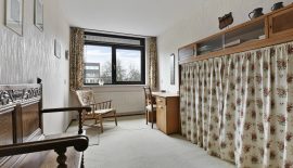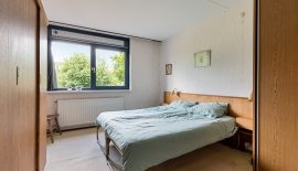 Verder naar achteren liggen 2 ruime slaapkamers. De hoofdslaapkamer van 16 m2 beschikt over een schuifkast. De 2e slaapkamer van 11 m2 is bij uitstek geschikt als werk- en logeerkamer. Tot slot een ruime badkamer compleet ingericht met een ligbad, douchecabine, wastafel, 2e toilet en bidet.