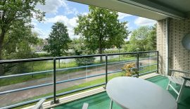 Dit geldt ook voor het balkon dat zeer gunstig op het zuid-westen ligt en waar je geniet van het stromende water, de vele watervogels en mooie bomen. Kortom het is een heerlijke plek om te wonen in gebouw “De Zilvermeeuw”, op loop-/ fietsafstand van de historische binnenstad, het ‘Waterwingebied’ en winkelcentrum ‘Neptunusplein’.