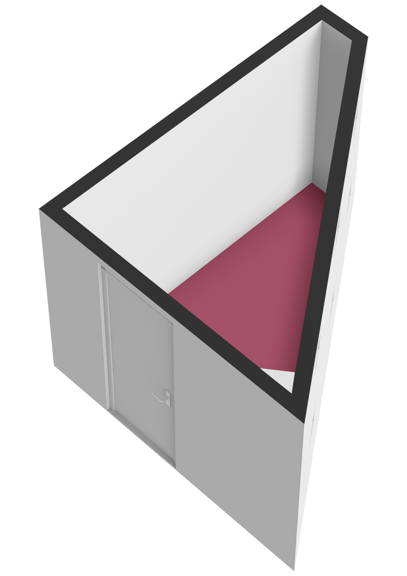 Triangular storage room on the ground floor with three small facade windows and an electricity connection