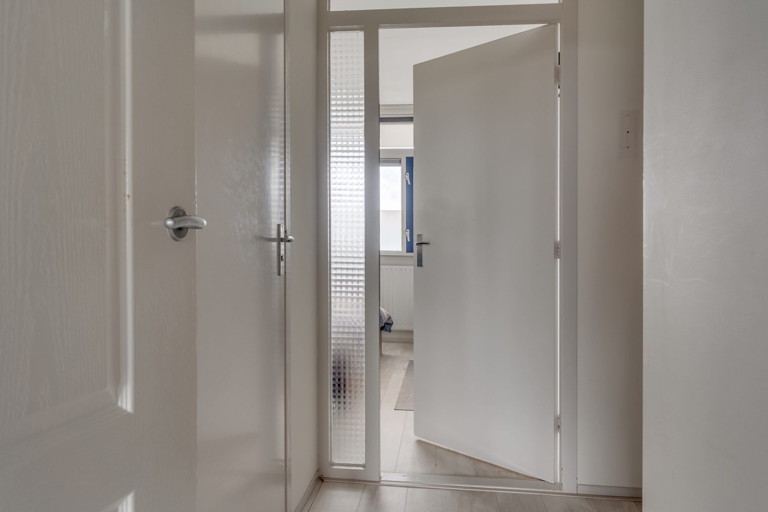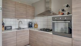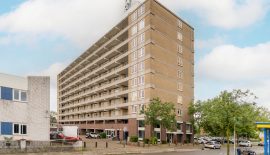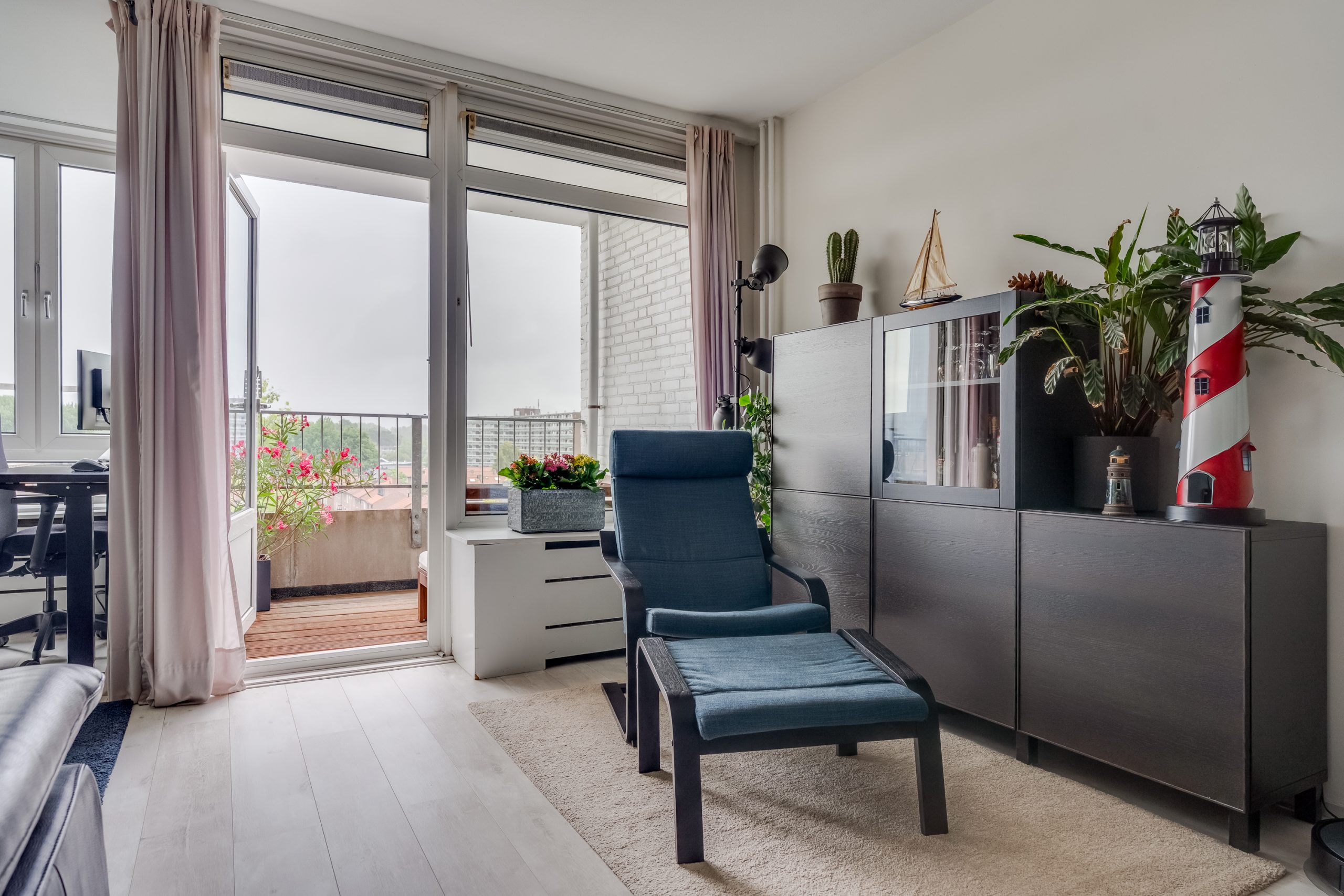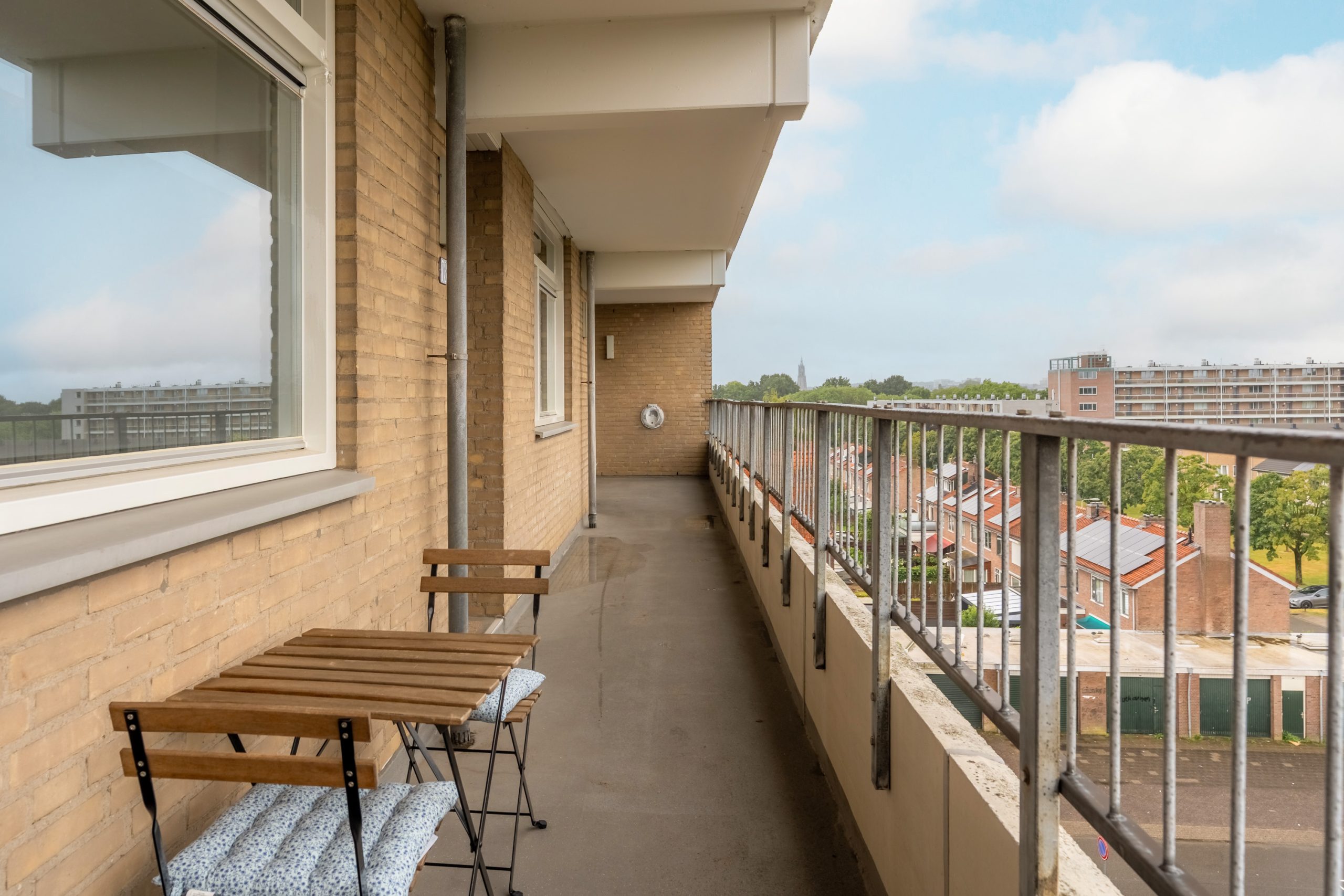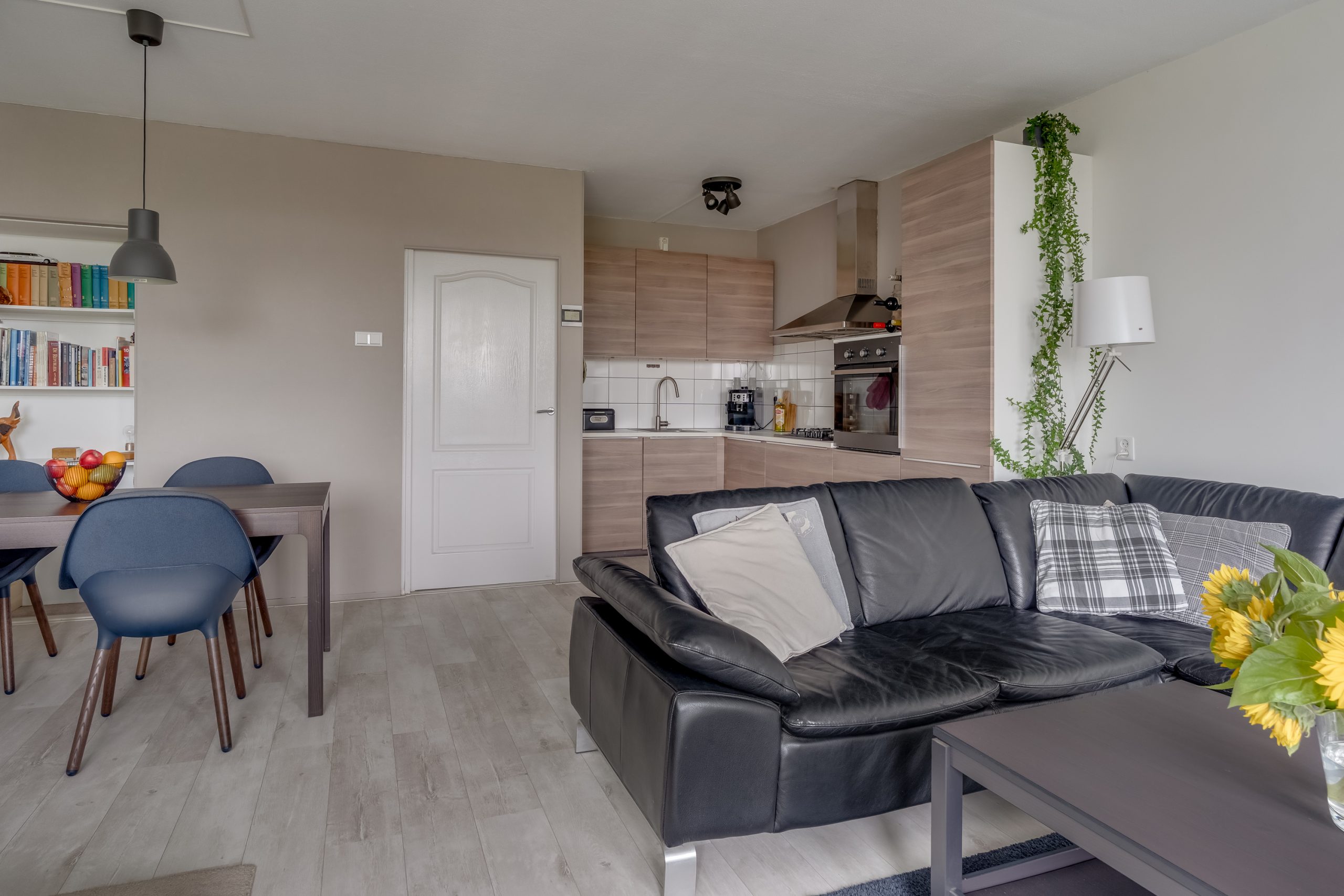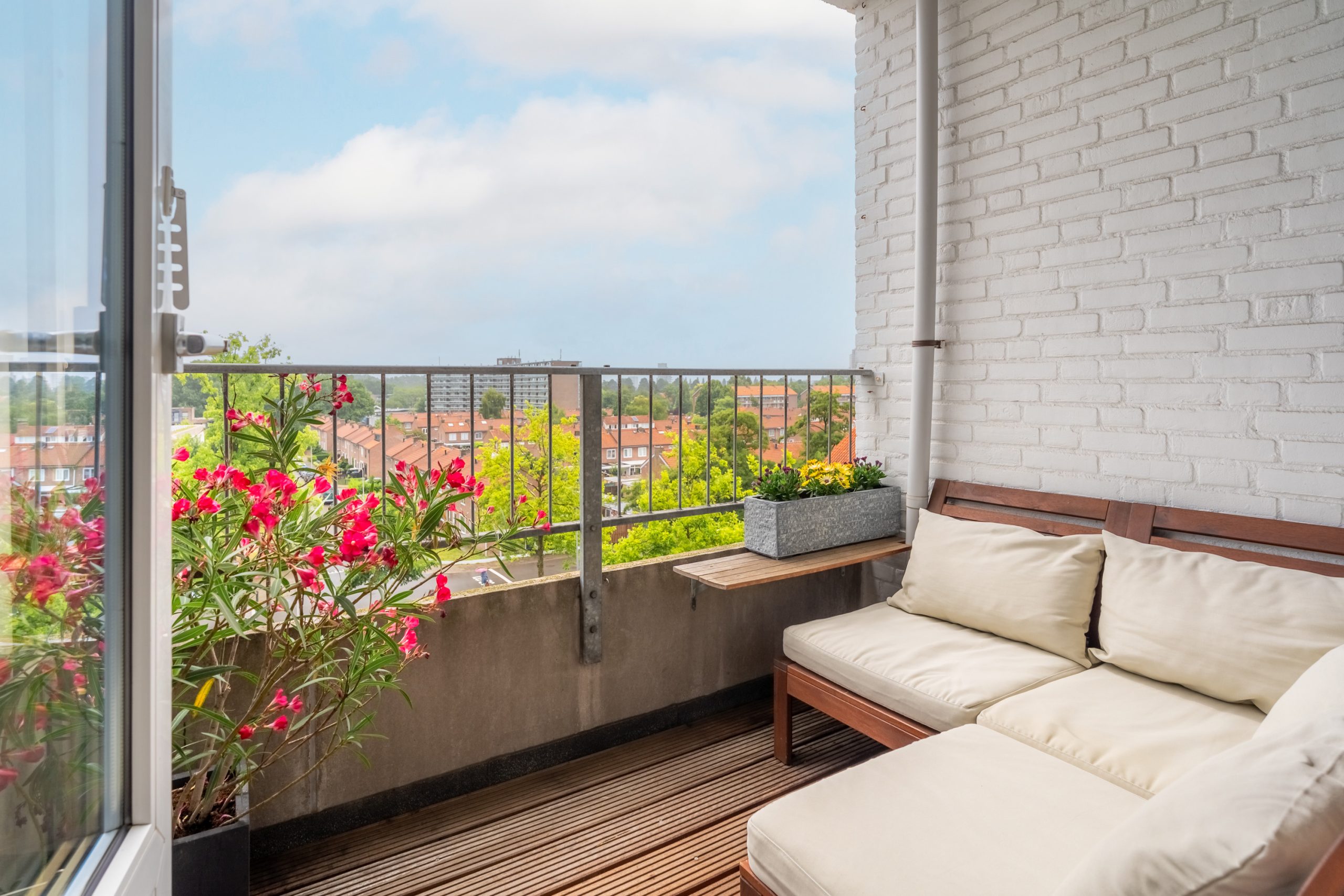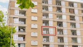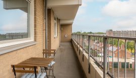 Via de galerij op 5e etage heb je toegang tot het appartement. Bij binnenkomst vind je, in de hal een ruime inbouwkast, nette meterkast en toegang tot alle ruimten van het appartement. Het gehele appartement is voorzien van een laminaatvloer, gesausde en gestucte afwerking op de wanden en plafonds. Ook is er in de woonkamer een open kast met planken, welke mooi past in de open, lichte woonkamer. Vanuit de woonkamer bereik je het zonnige balkon (zuidoost ligging). Het balkon is voorzien van vlonders, deze geven een vrolijke uitstraling aan de buitenruimte. Tel daar het fraaie uitzicht bij op en je ziet je zelf hier de hele avond zitten onder het genot van een drankje.