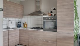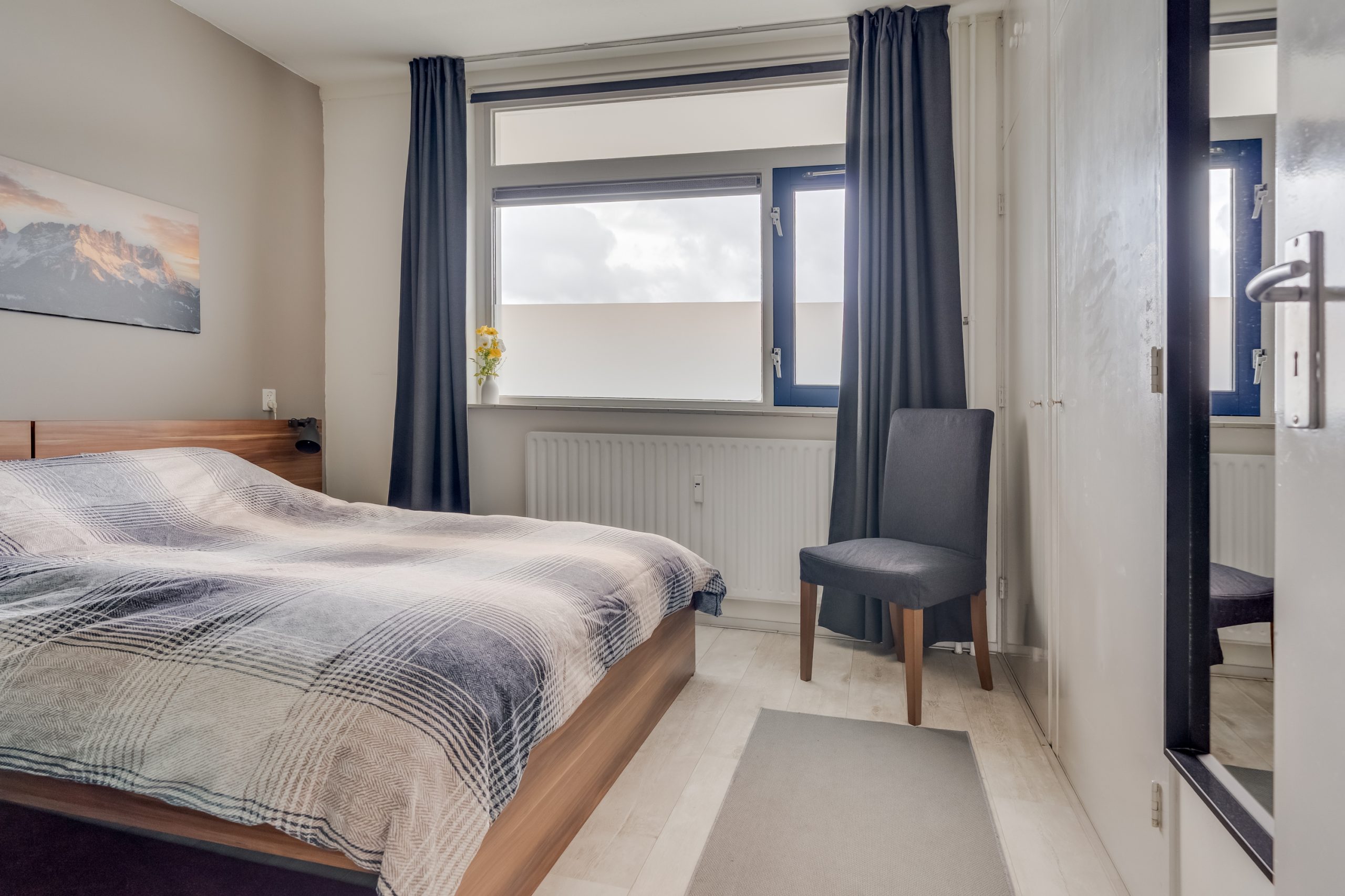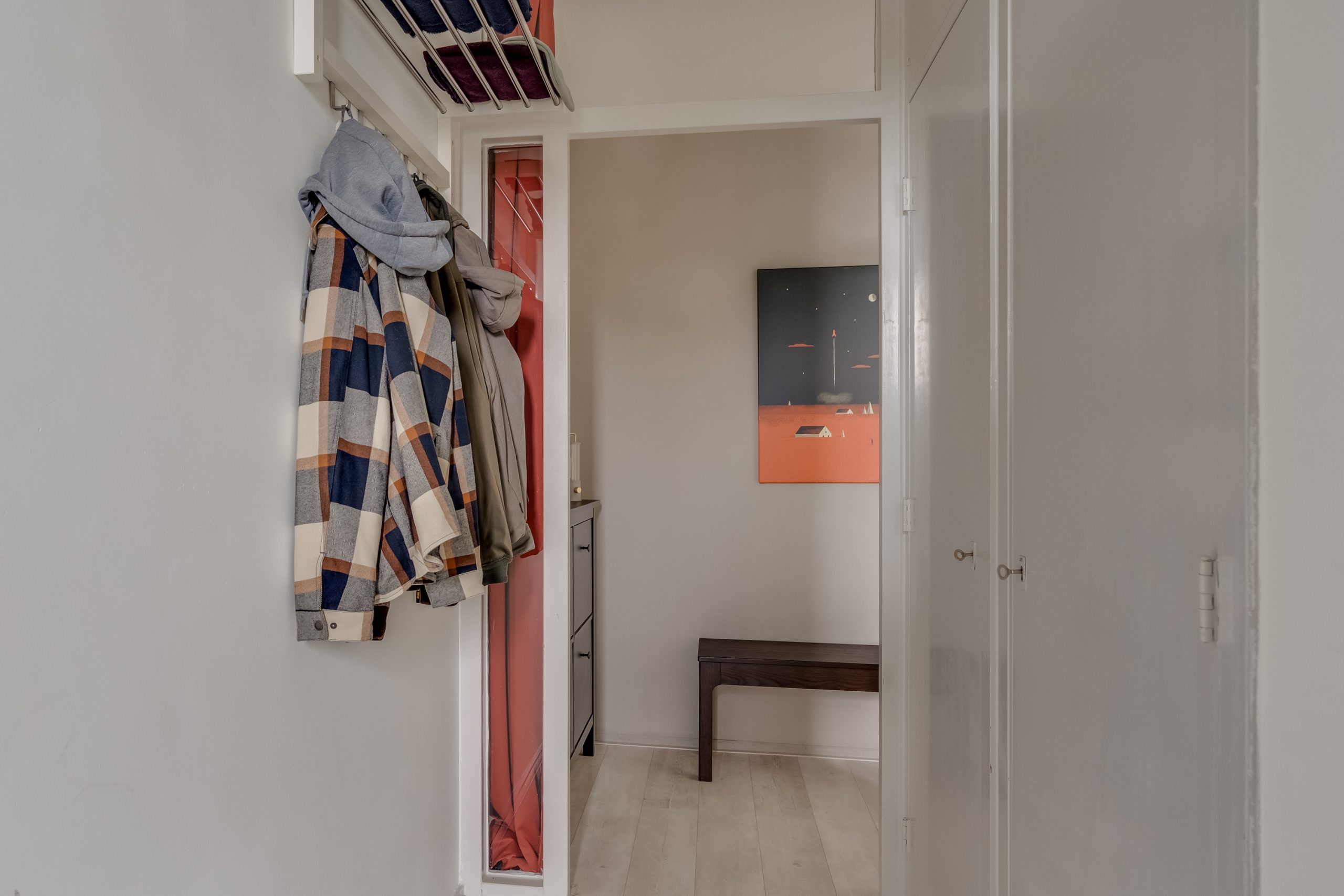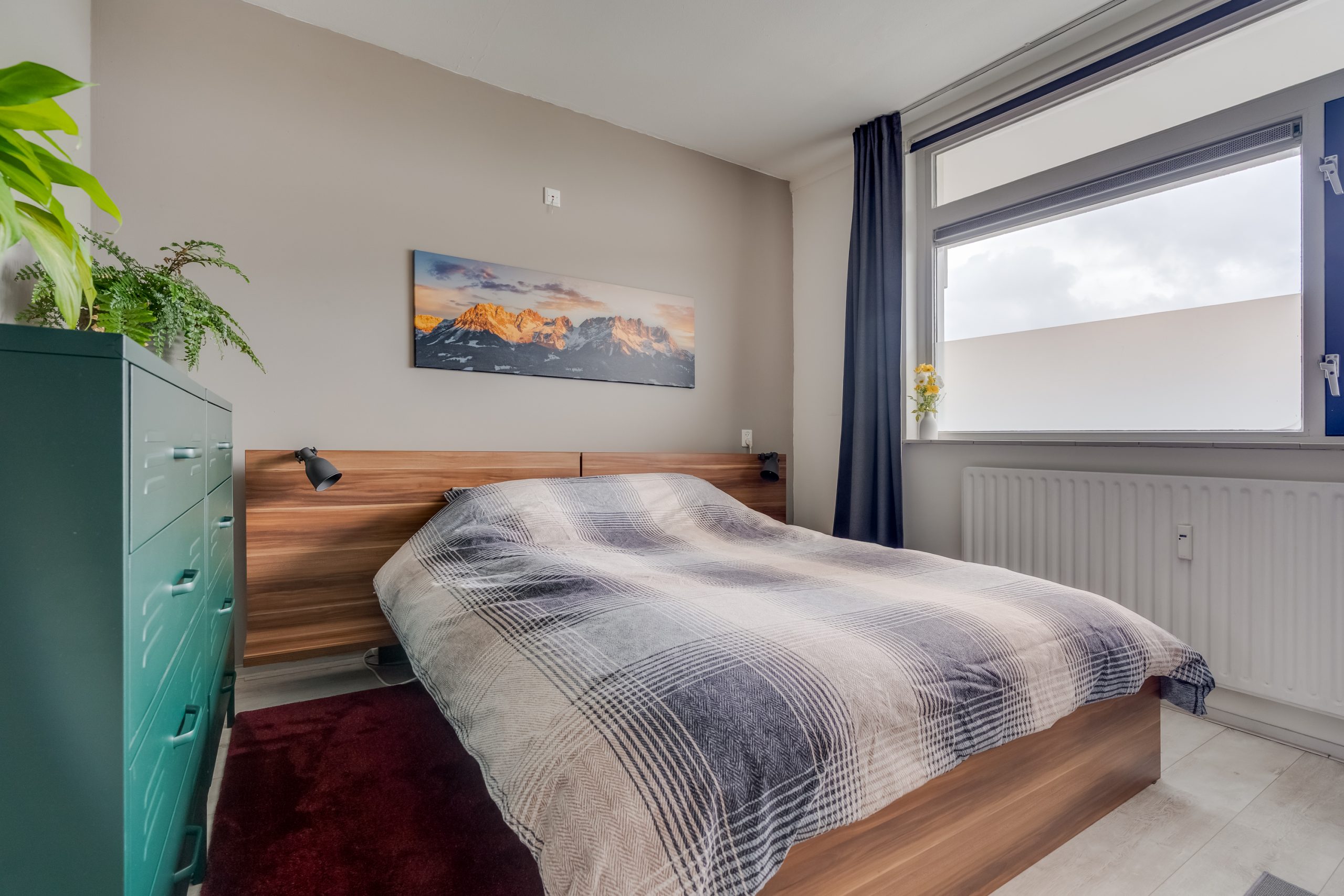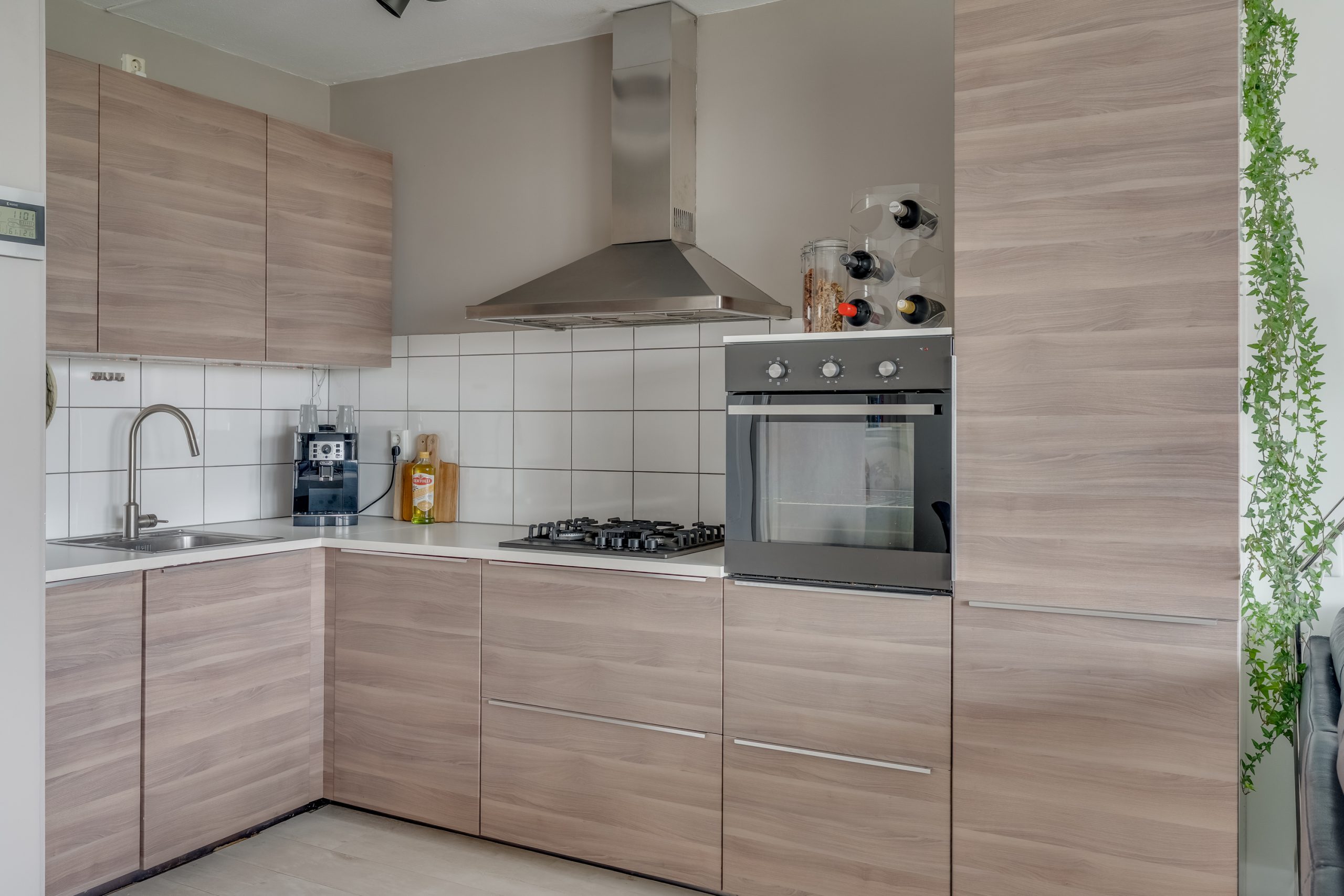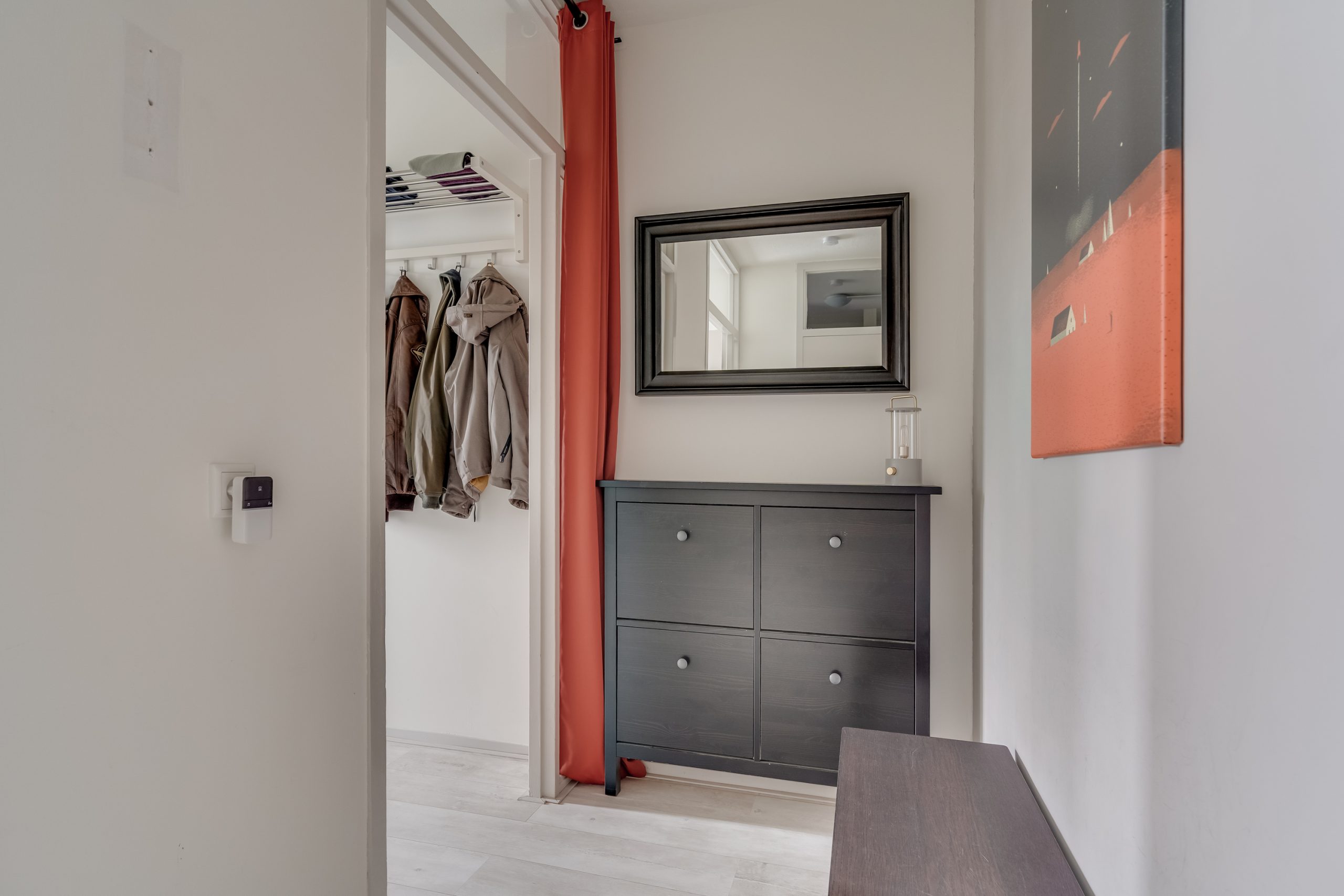 Via de galerij op 5e etage heb je toegang tot het appartement. Bij binnenkomst vind je, in de hal een ruime inbouwkast, nette meterkast en toegang tot alle ruimten van het appartement. Het gehele appartement is voorzien van een laminaatvloer, gesausde en gestucte afwerking op de wanden en plafonds. Ook is er in de woonkamer een open kast met planken, welke mooi past in de open, lichte woonkamer. Vanuit de woonkamer bereik je het zonnige balkon (zuidoost ligging). Het balkon is voorzien van vlonders, deze geven een vrolijke uitstraling aan de buitenruimte. Tel daar het fraaie uitzicht bij op en je ziet je zelf hier de hele avond zitten onder het genot van een drankje.