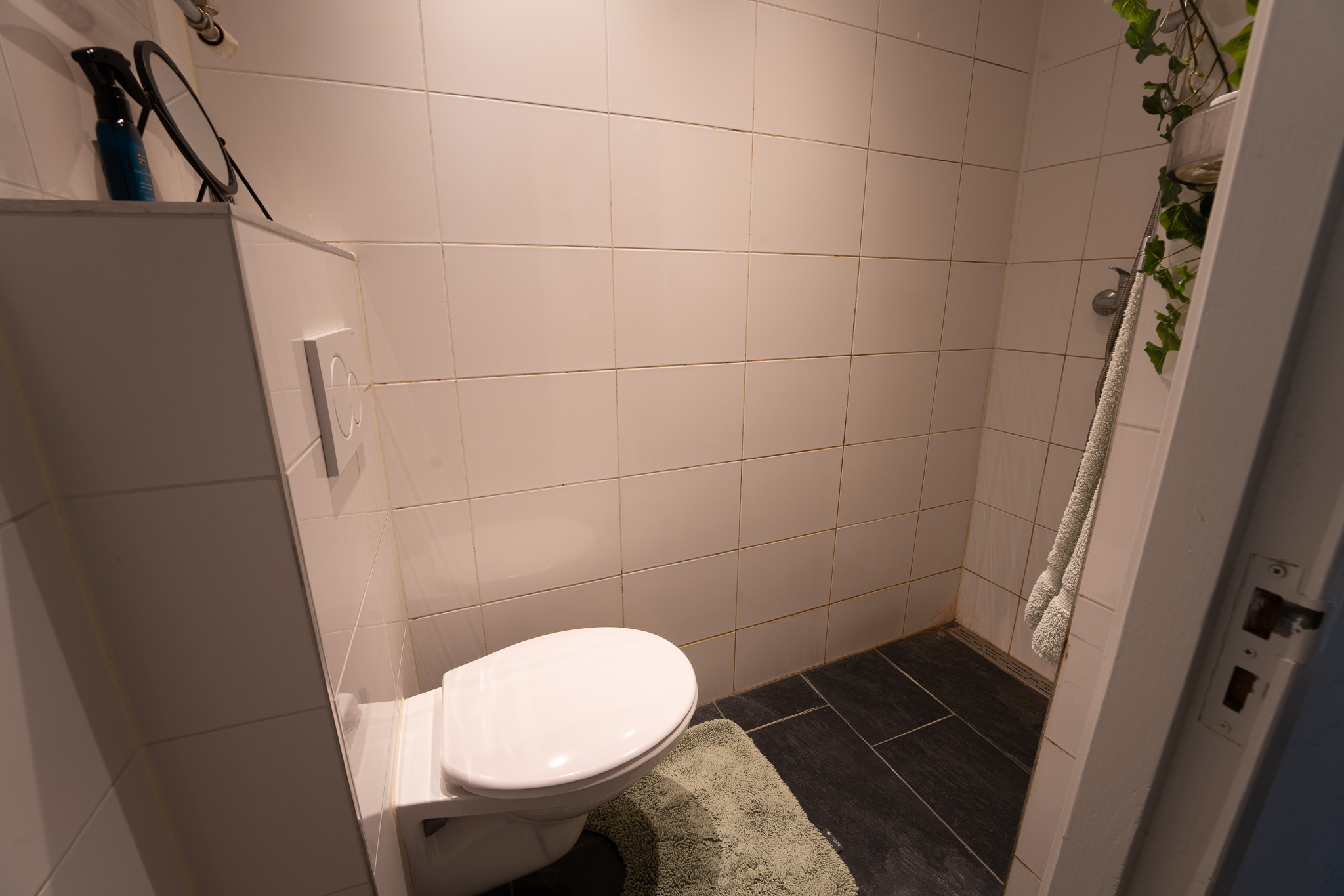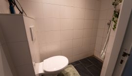 Als je door de deur stapt kom je in een lange hal met aan je linkerhand direct de gerenoveerde badkamer (2018), deze beschikt over een inloopdouche, hangend toilet en designradiator. Boven de badkamer is een ruime bergvliering.