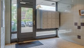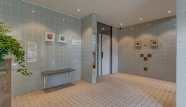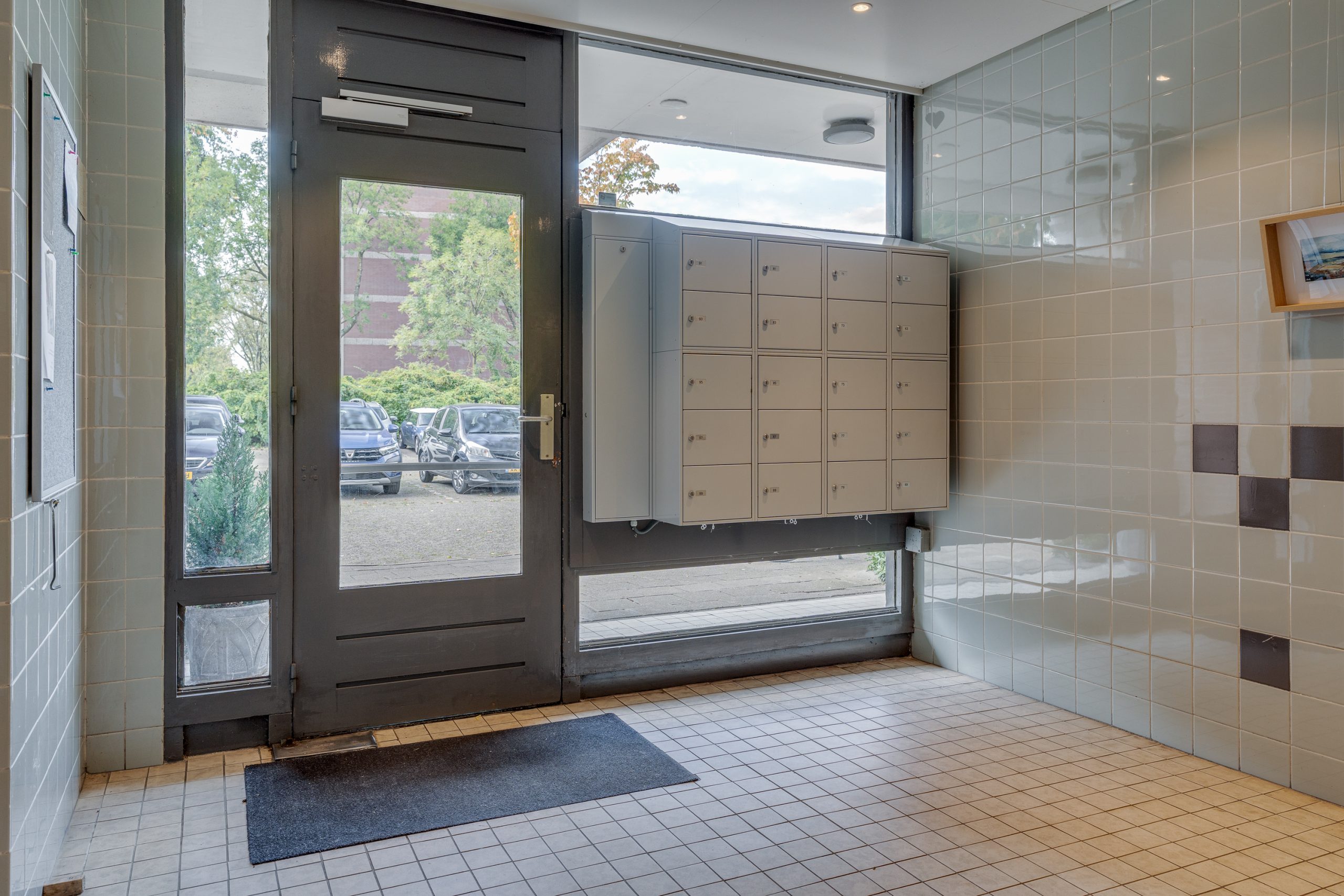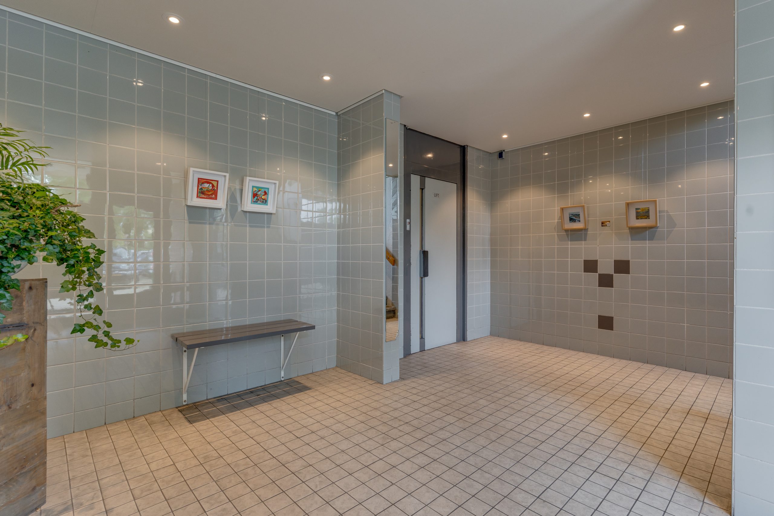 Centrale hal met bellentableau, intercom en lift.