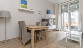 Dit moderne driekamerappartement (circa 65 m2) met terras op het zuiden en eigen parkeerplaats in de ondergelegen parkeergarage is in 2015 gerealiseerd. De woning ligt op de begane grond en beschikt over een lichte woonkamer, een moderne keuken en sanitaire voorzieningen en twee ruime slaapkamers. Het appartement is hoogwaardig afgewerkt en voelt door de hoge plafonds extra ruim aan.