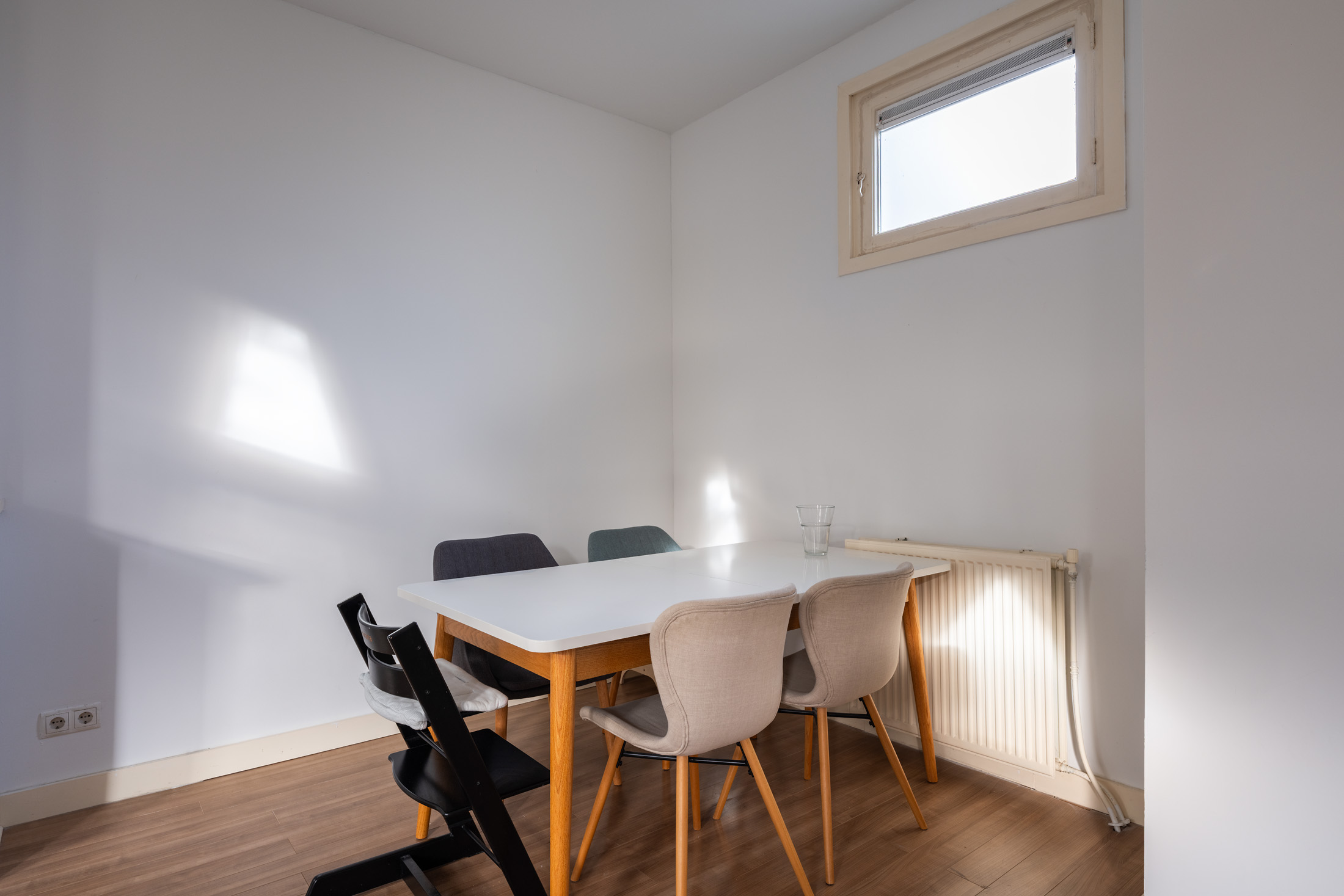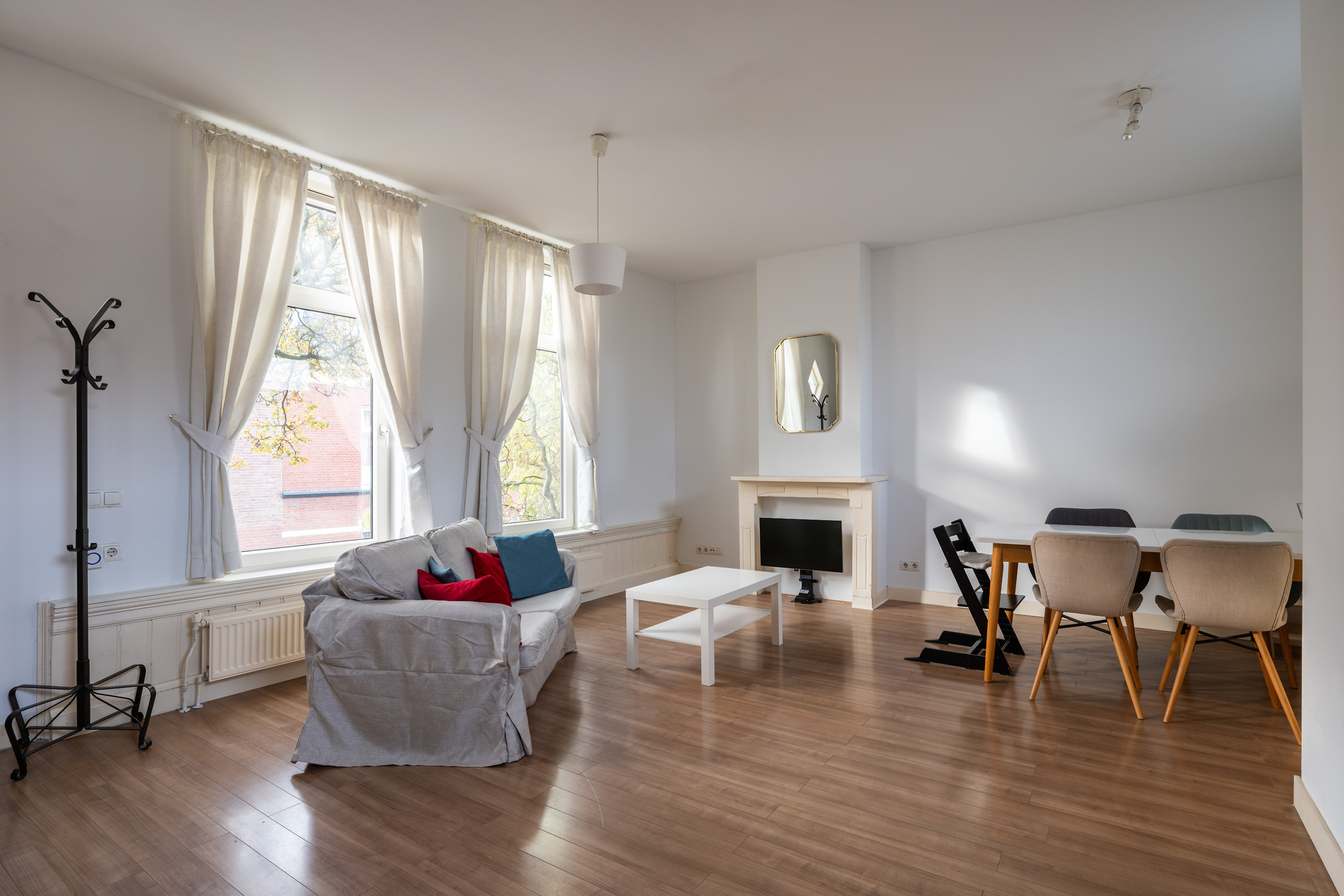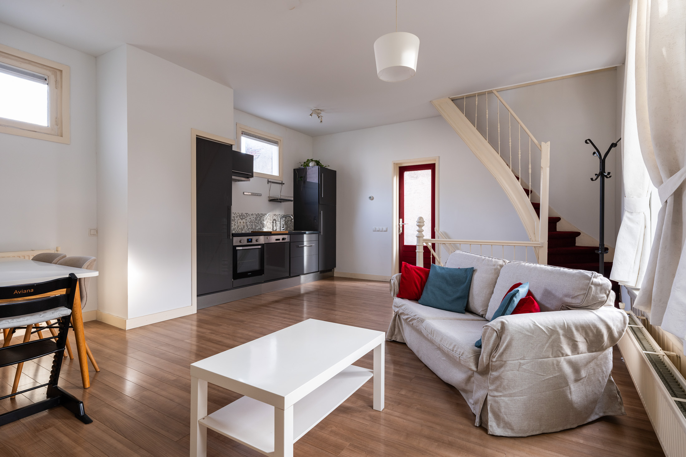 Zodra je binnenstapt, voel je het: dit huis heeft sfeer. De hoge plafonds, de klassieke lambrisering en het ruime gevoel maken dit een plek waar je je direct thuis voelt. De lichte woonkamer met grote raampartijen biedt volop ruimte voor een gezellige zithoek en een eethoek bij de open keuken – ideaal voor etentjes met vrienden of ontspannen avonden thuis.