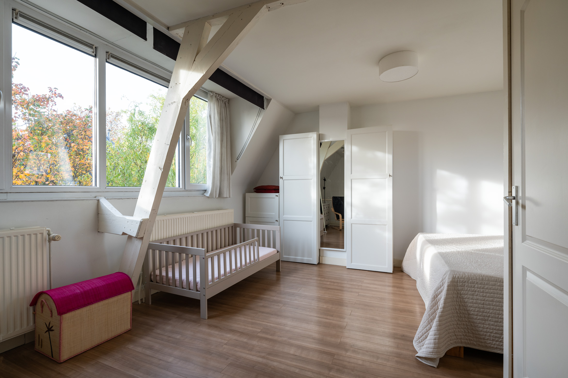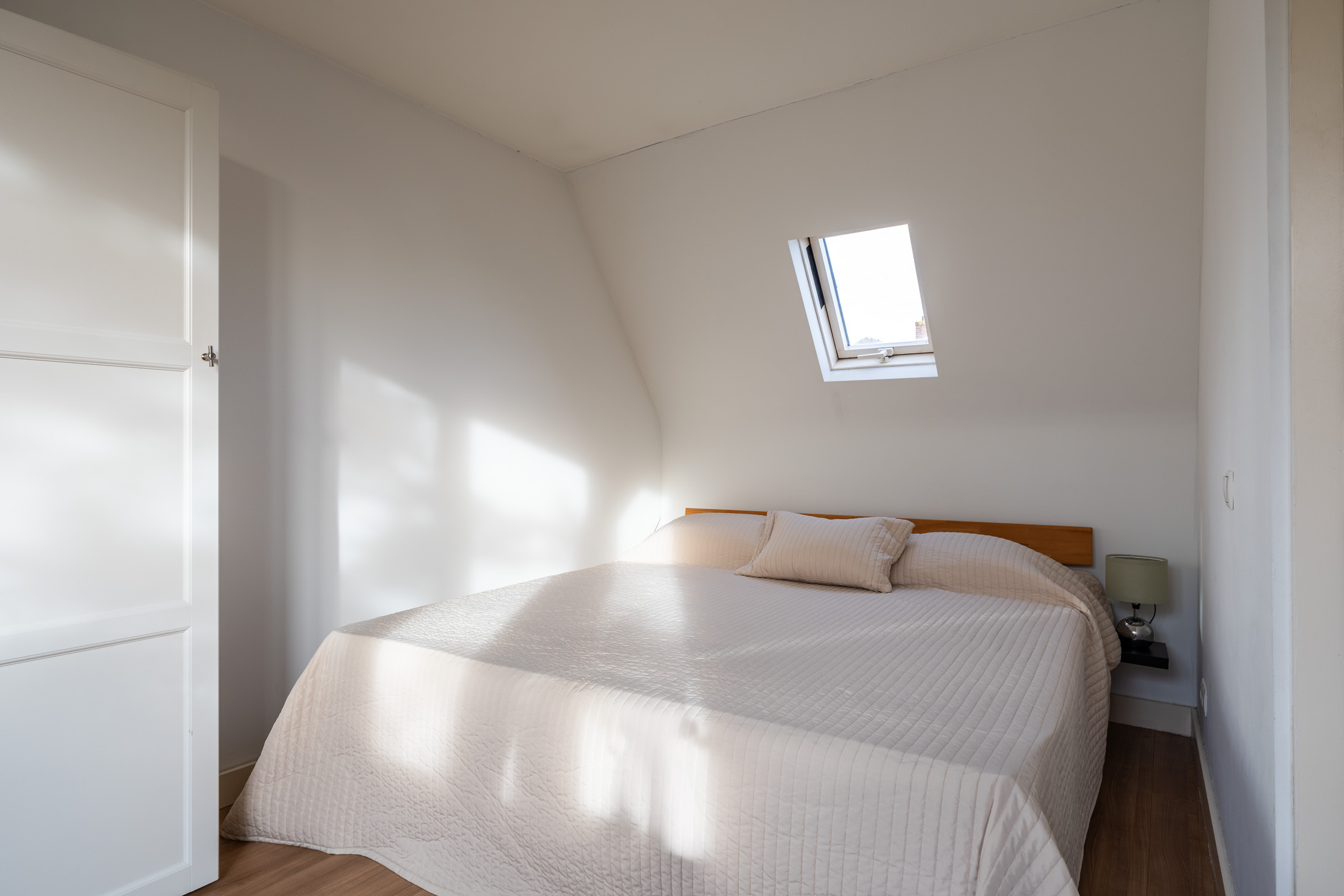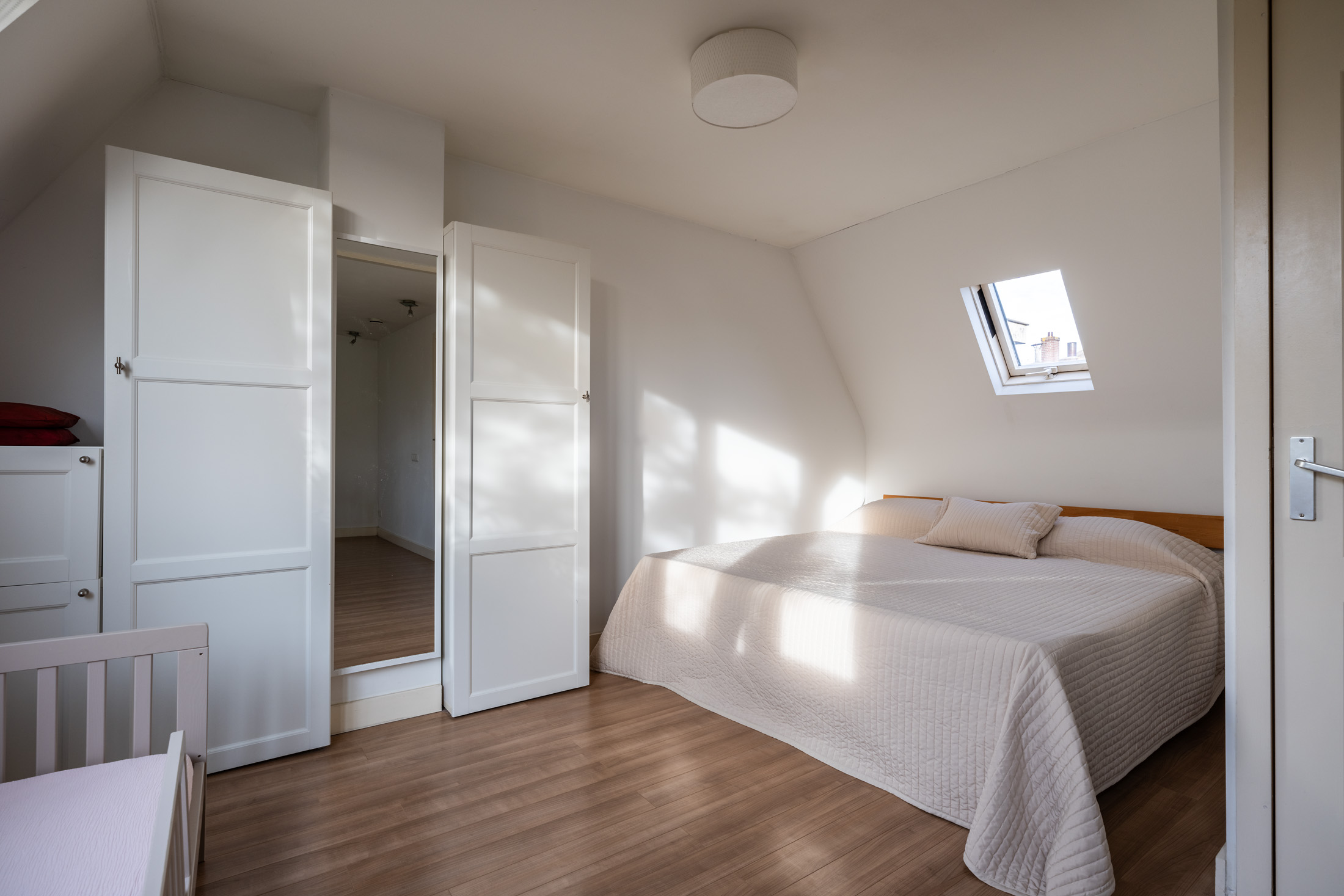 De ruime slaapkamer biedt veel mogelijkheden: zo kun je er eenvoudig een tweede kamer creëren – perfect als werkkamer, logeerkamer of kinderkamer. ’s Zomers geniet je van je eigen dakterras, een knus plekje om in alle te genieten midden in de stad.