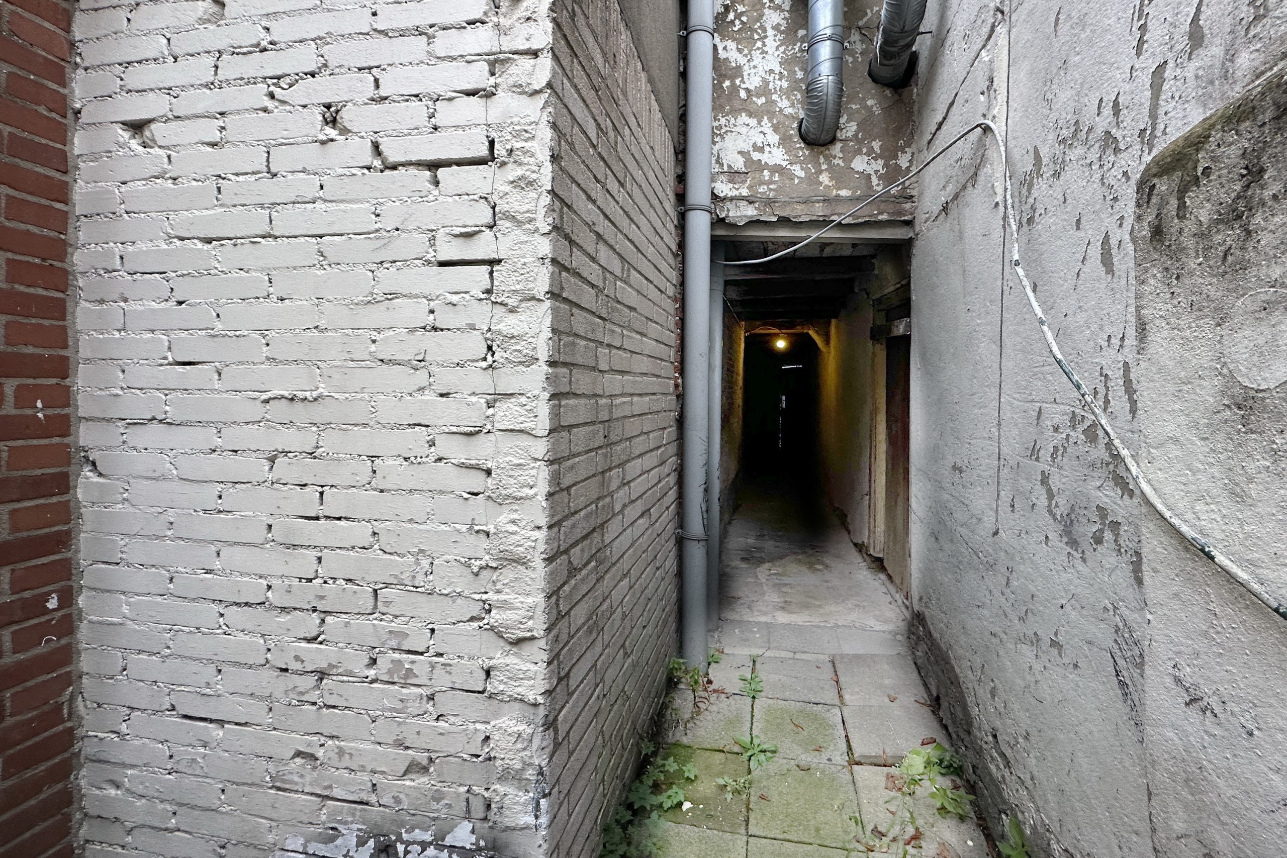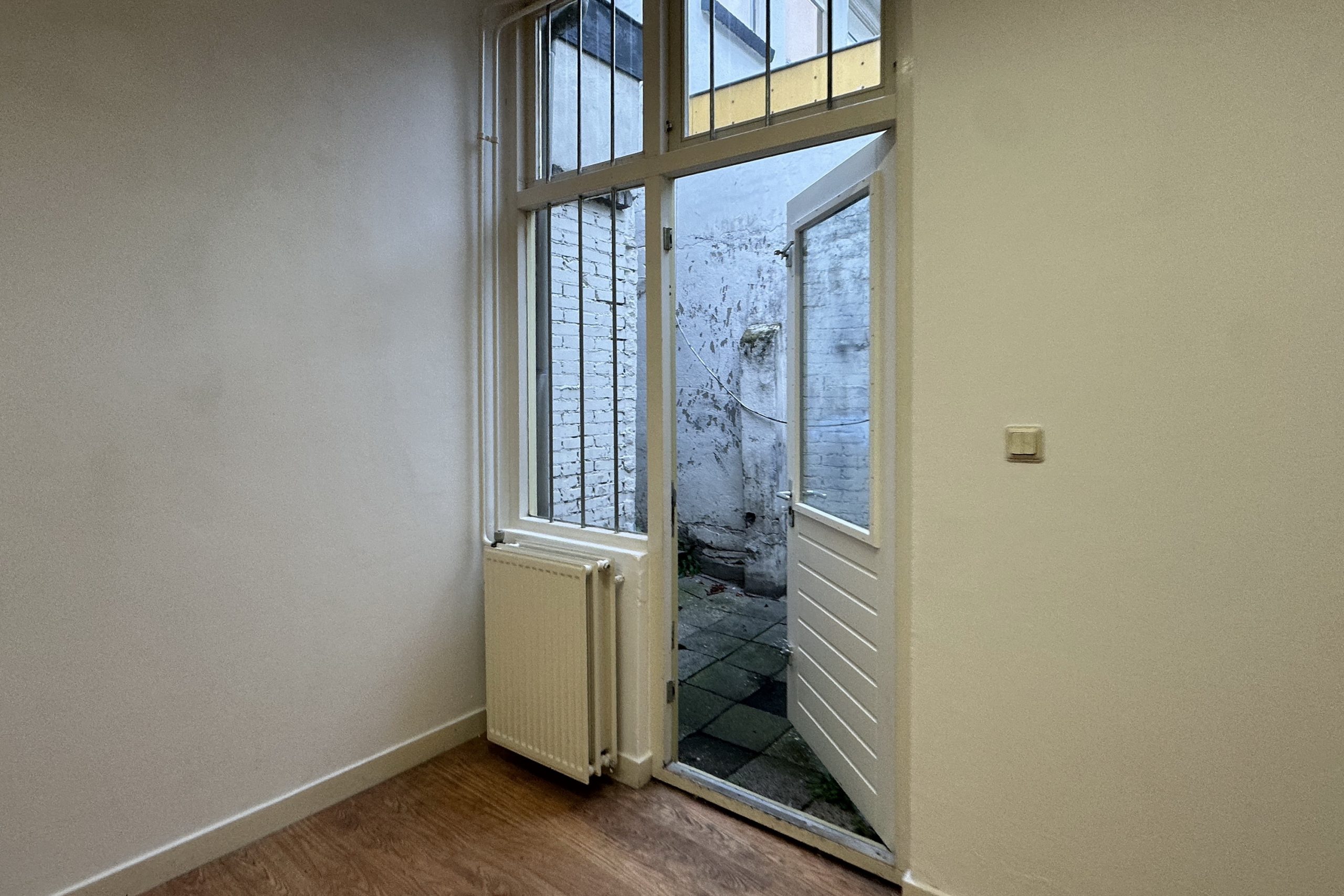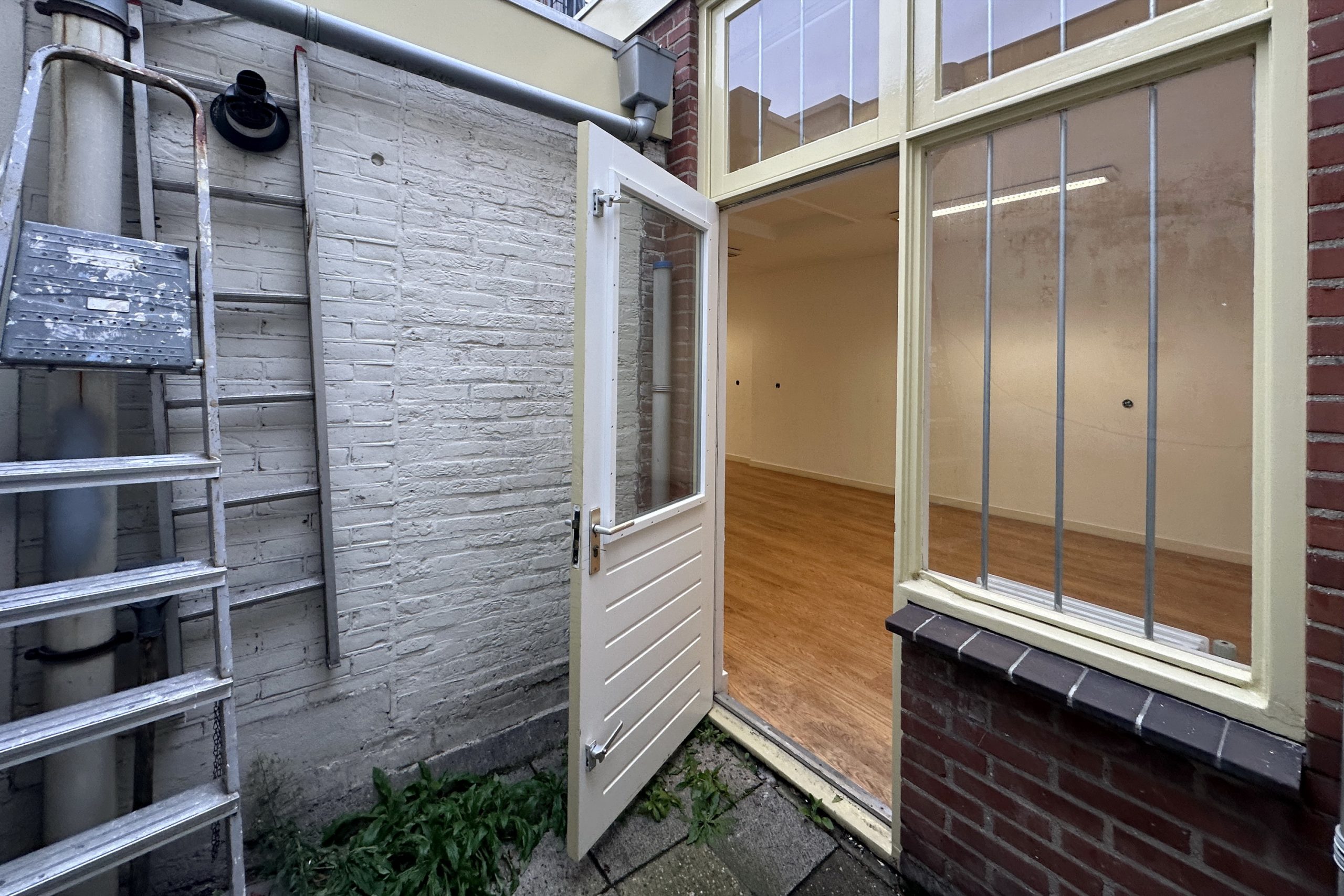Achter deze ruimte ligt voorbij de brede karakteristieke toog een tweede open vertrek van vergelijkbare grootte. Deze ruimte biedt talloze mogelijkheden, denk aan meerdere slaapkamers, een eet- of werkkamer, woonkeuken of zelfs een atelier. Hier bevindt zich tevens de deur naar de compacte patio-tuin en de afsluitbare overdekte steeg die uitkomt in de Grote Sint Jansstraat. In deze steeg kan je prima wat fietsen stallen bijvoorbeeld. Het plaatsje biedt bovendien een fijne, privé buitenruimte.