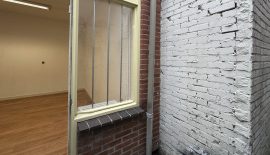 Aan de voorzijde van het pand valt direct de karakteristieke voormalige winkelpui met veel glas op het westen op. Bij binnenkomst door de glazen deur ervaar je hoe het licht via de vele ramen prettig naar binnenkomt. De ruimte waar je binnenkomt is een enorm grote ruimte van maar liefst 42 m2. Deze ruimte is voorheen gebruikt als winkelruimte, dit zie je nog goed terug door het systeemplafond. Van deze ruimte is gemakkelijk een bijzonder ruime woonkamer / woonkeuken te maken, er ligt namelijk al wel een huiselijke parket vloer in de open ruimte. Aan de rechterkant bevind zich de meterkast.