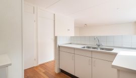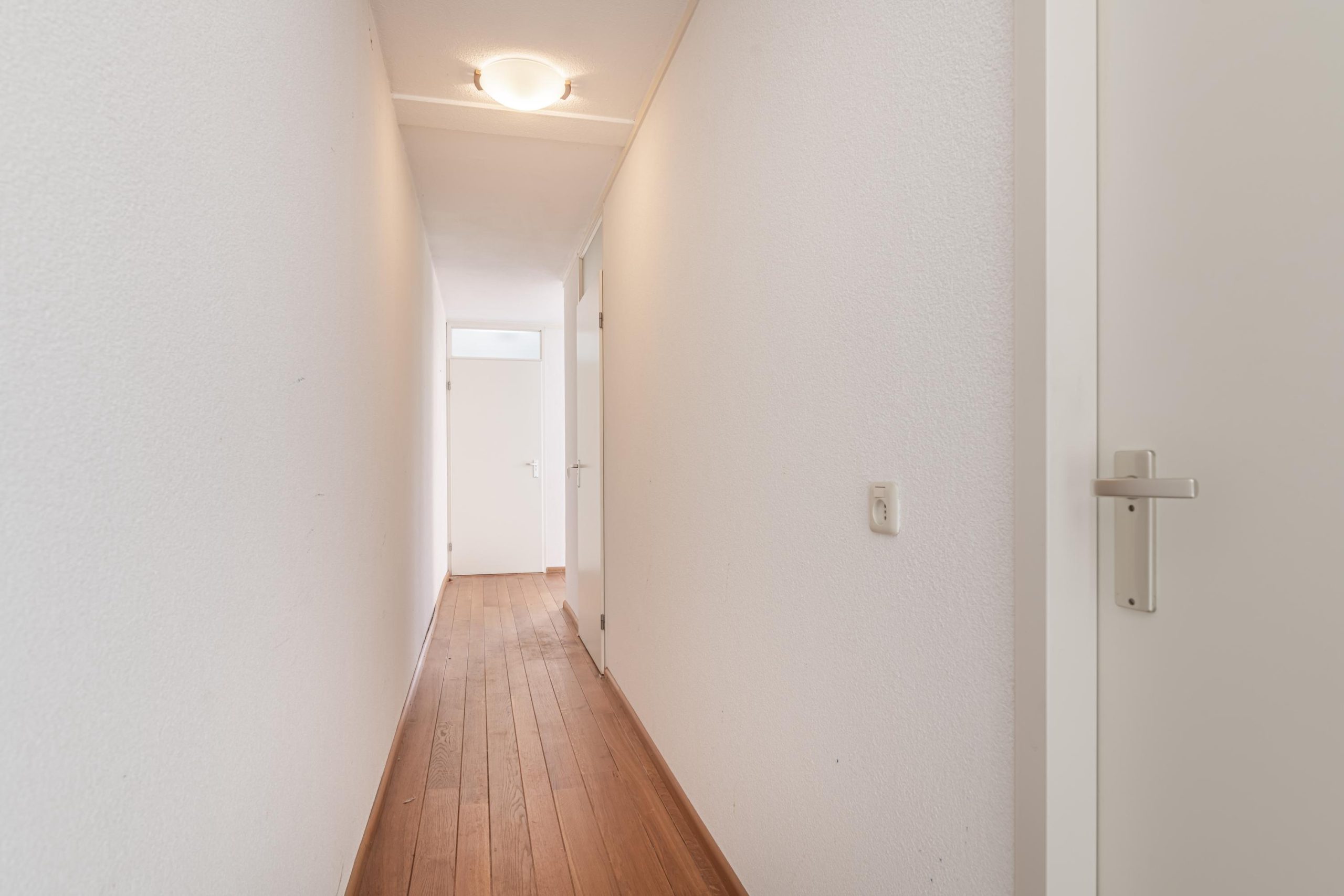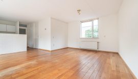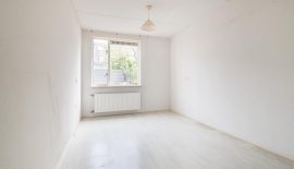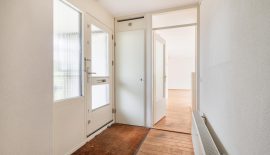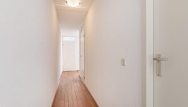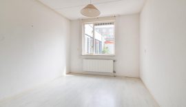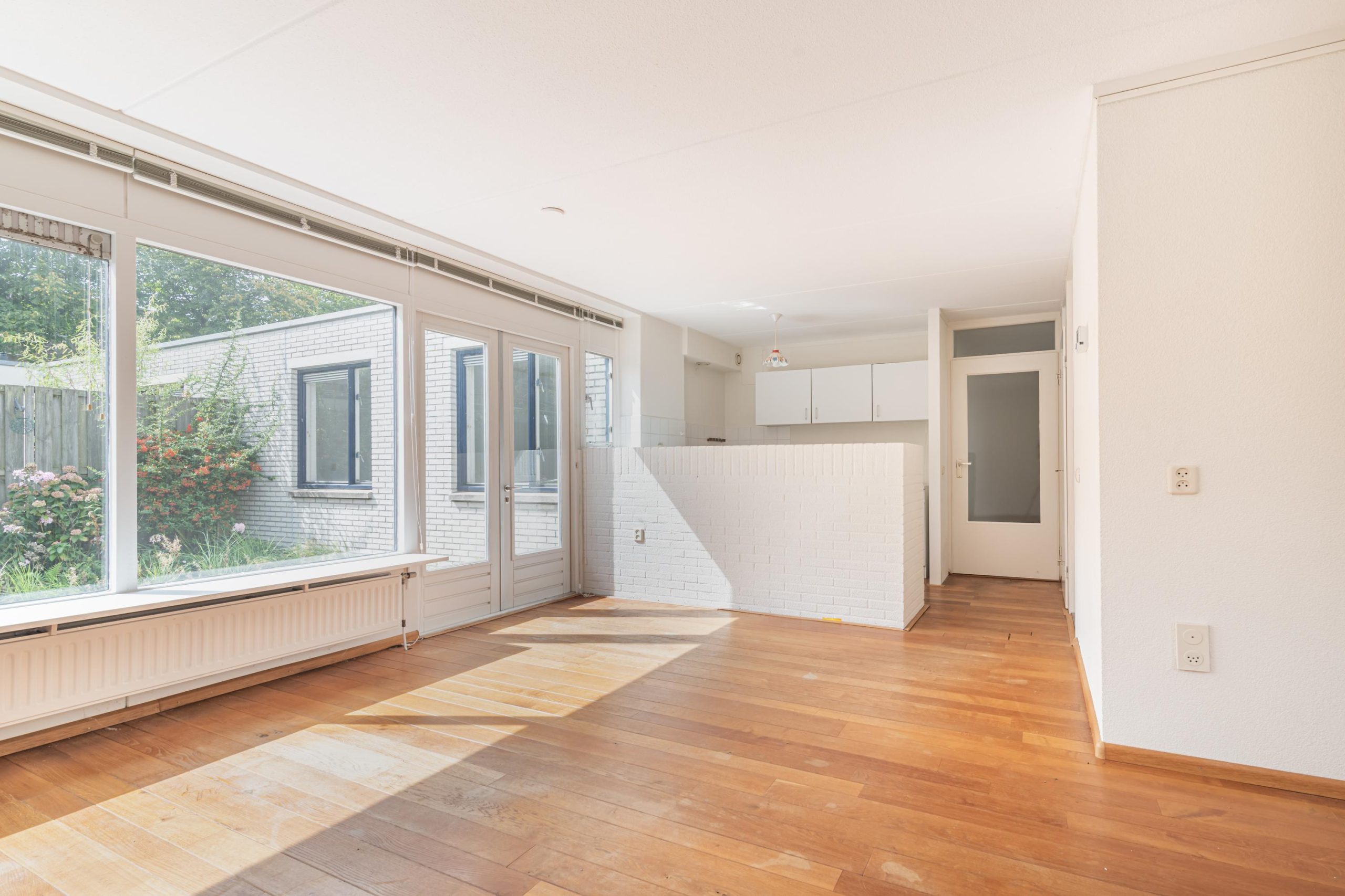 Via de overdekte entree bereikt u de hal, die toegang biedt tot alle vertrekken. De ruime en lichte woonkamer is voorzien van een eiken vloer met grote raampartij met uitzicht op het voetpad met bomenplein en op de patiotuin. Via de tuindeur stapt u direct deze zonnige buitenruimte in. De open hoekkeuken is eenvoudig en bestaat uit een keukenblok met aansluiting voor losse apparatuur.
