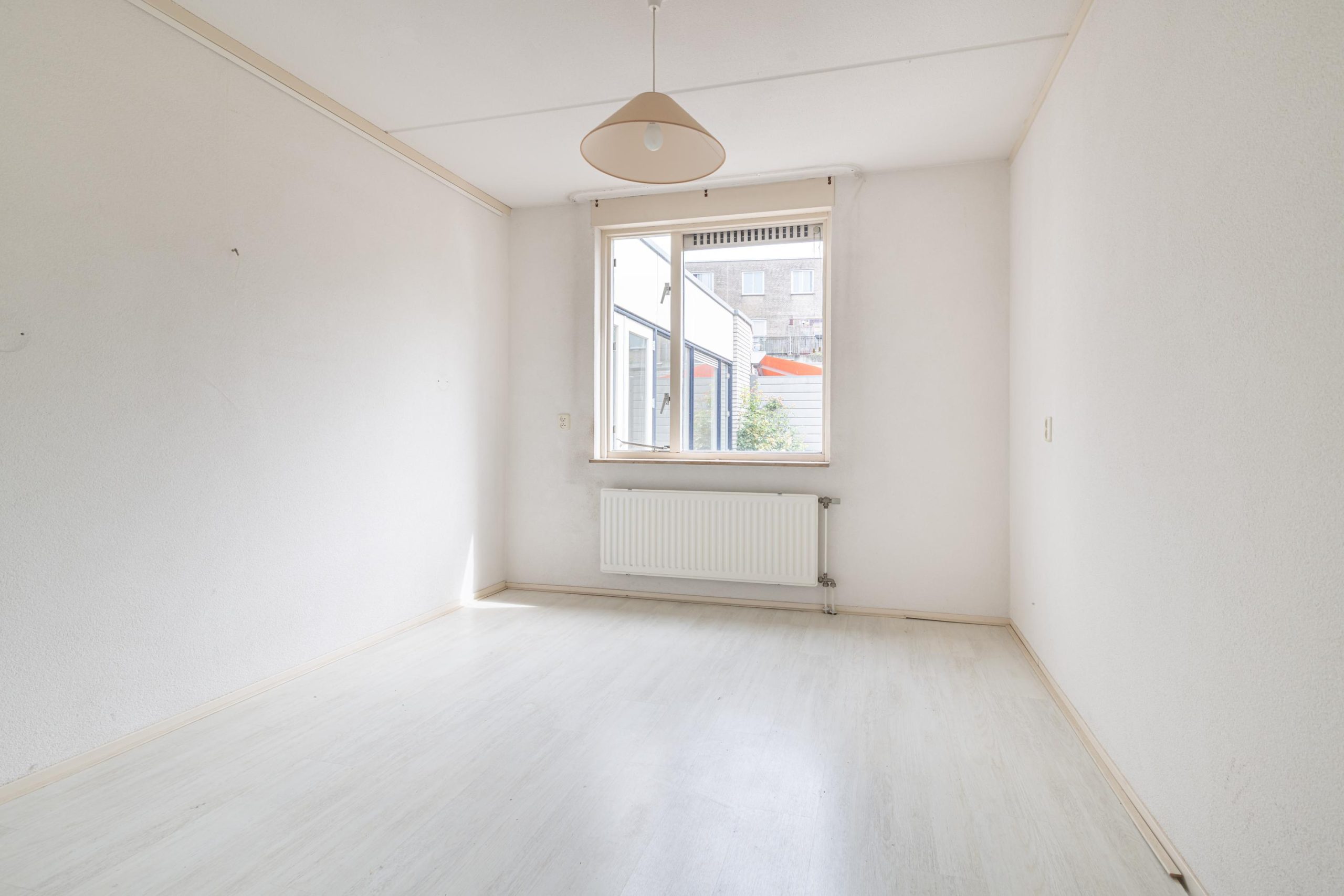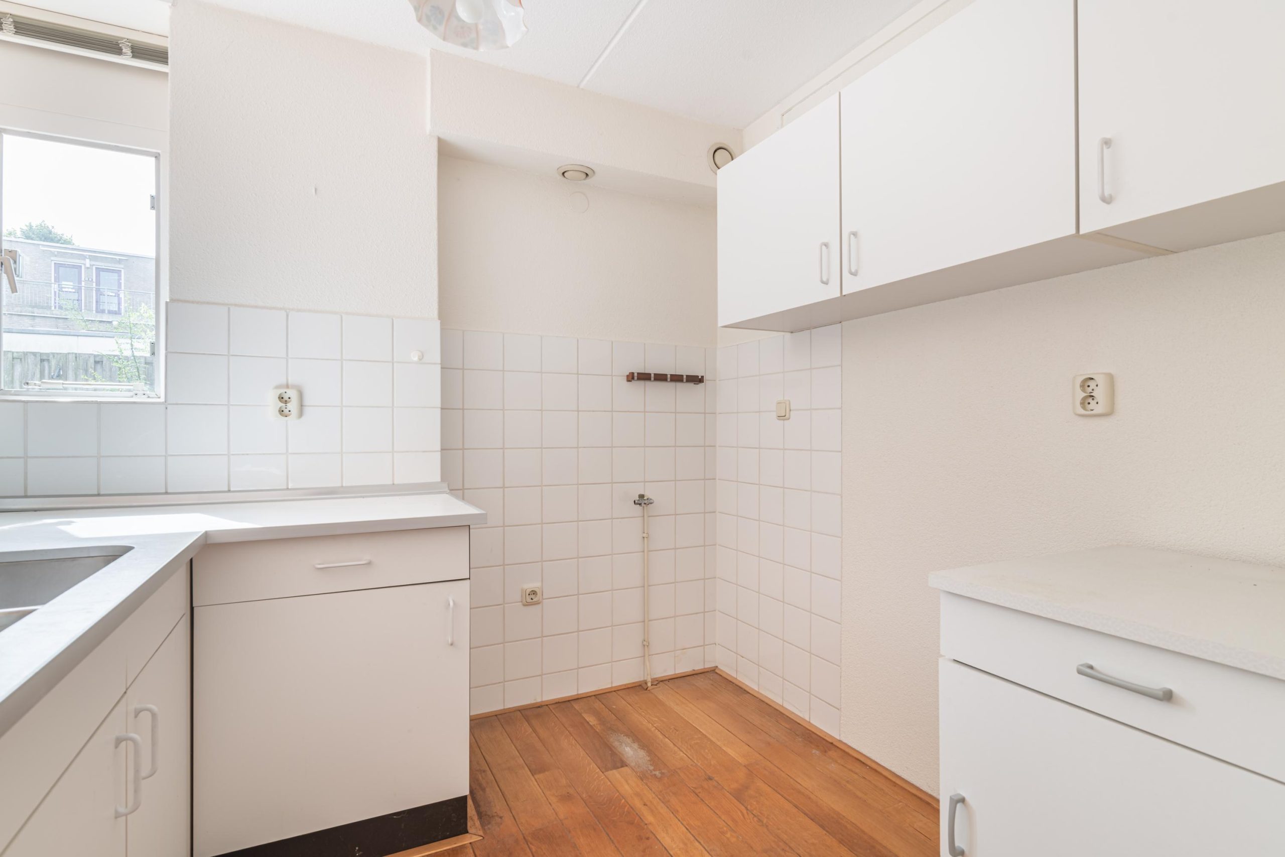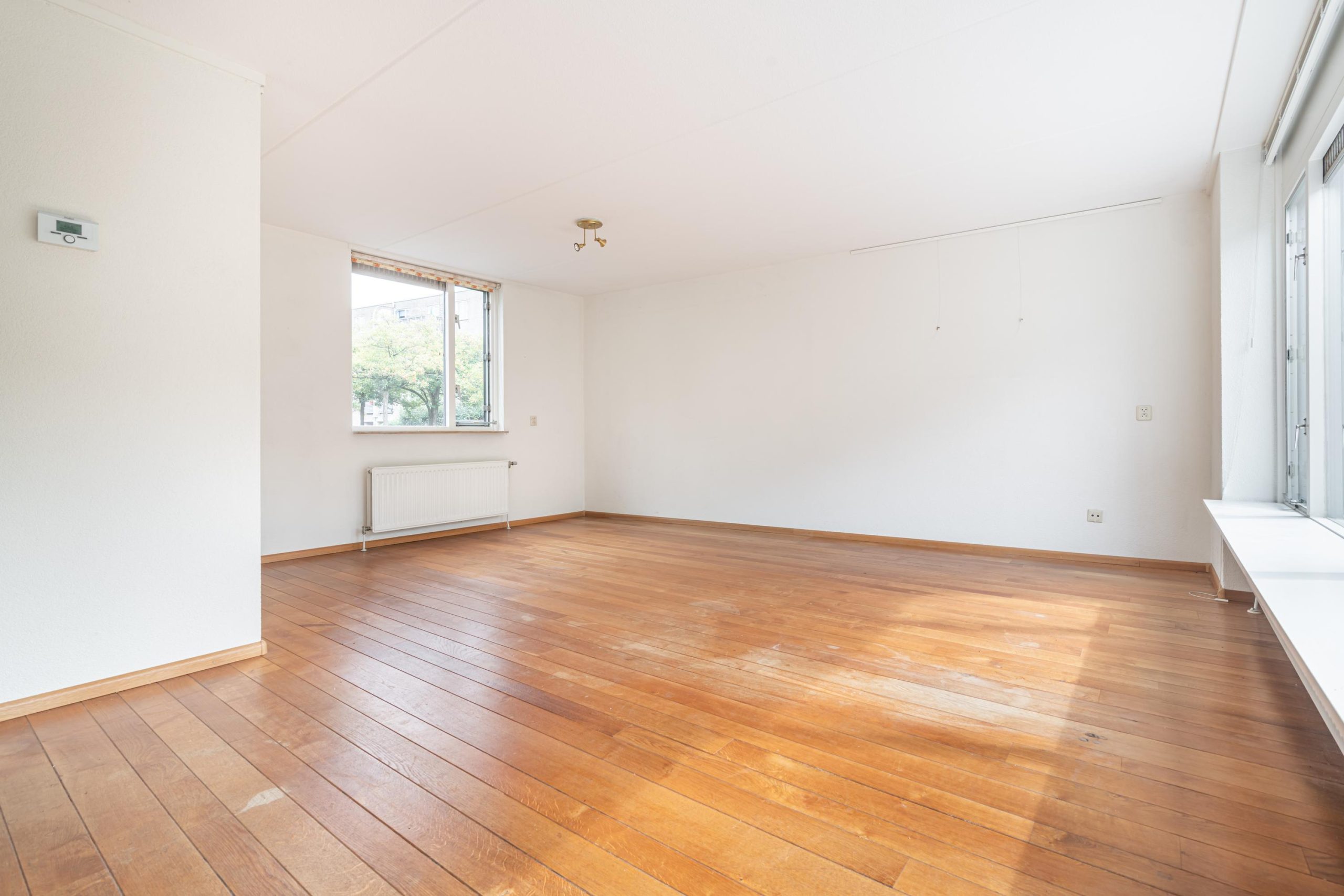 Via de overdekte entree bereikt u de hal, die toegang biedt tot alle vertrekken. De ruime en lichte woonkamer is voorzien van een eiken vloer met grote raampartij met uitzicht op het voetpad met bomenplein en op de patiotuin. Via de tuindeur stapt u direct deze zonnige buitenruimte in. De open hoekkeuken is eenvoudig en bestaat uit een keukenblok met aansluiting voor losse apparatuur.