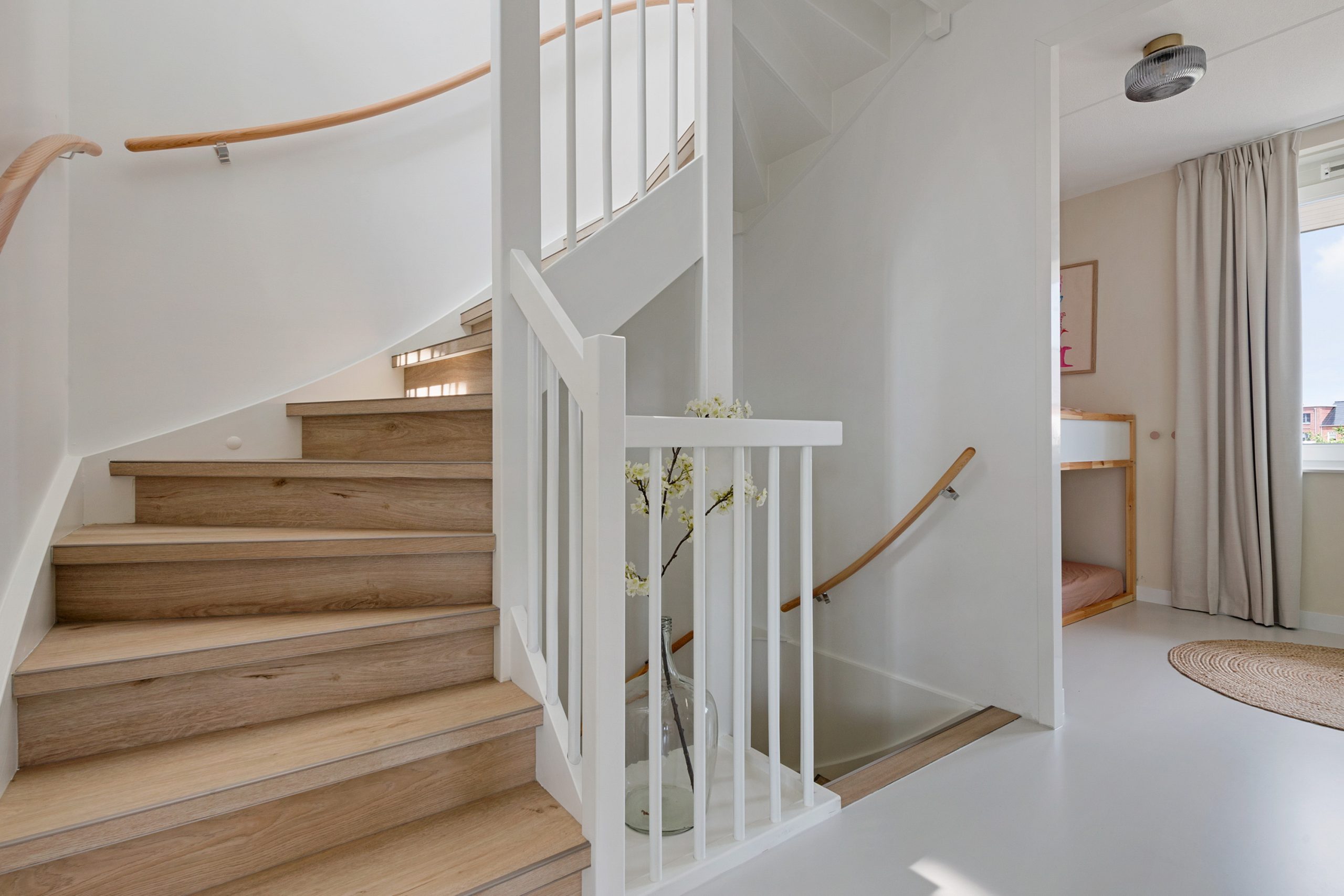 – Hoge deuren en chique luie trappen, bekleed met eiken PVC