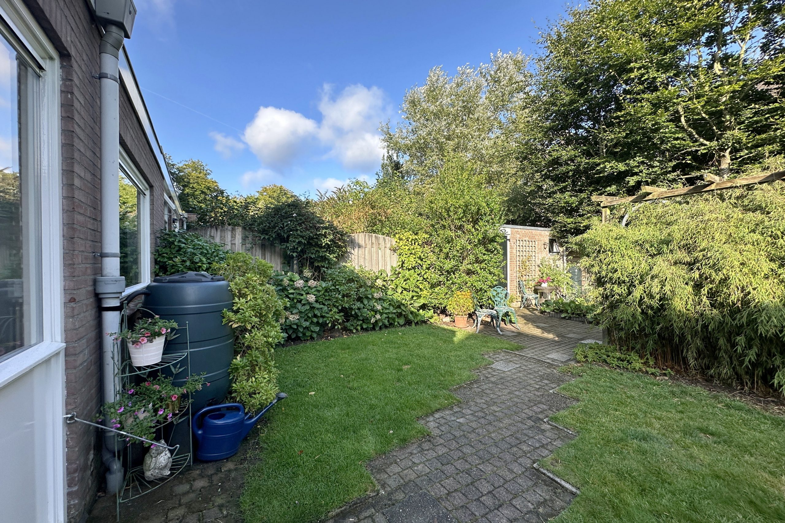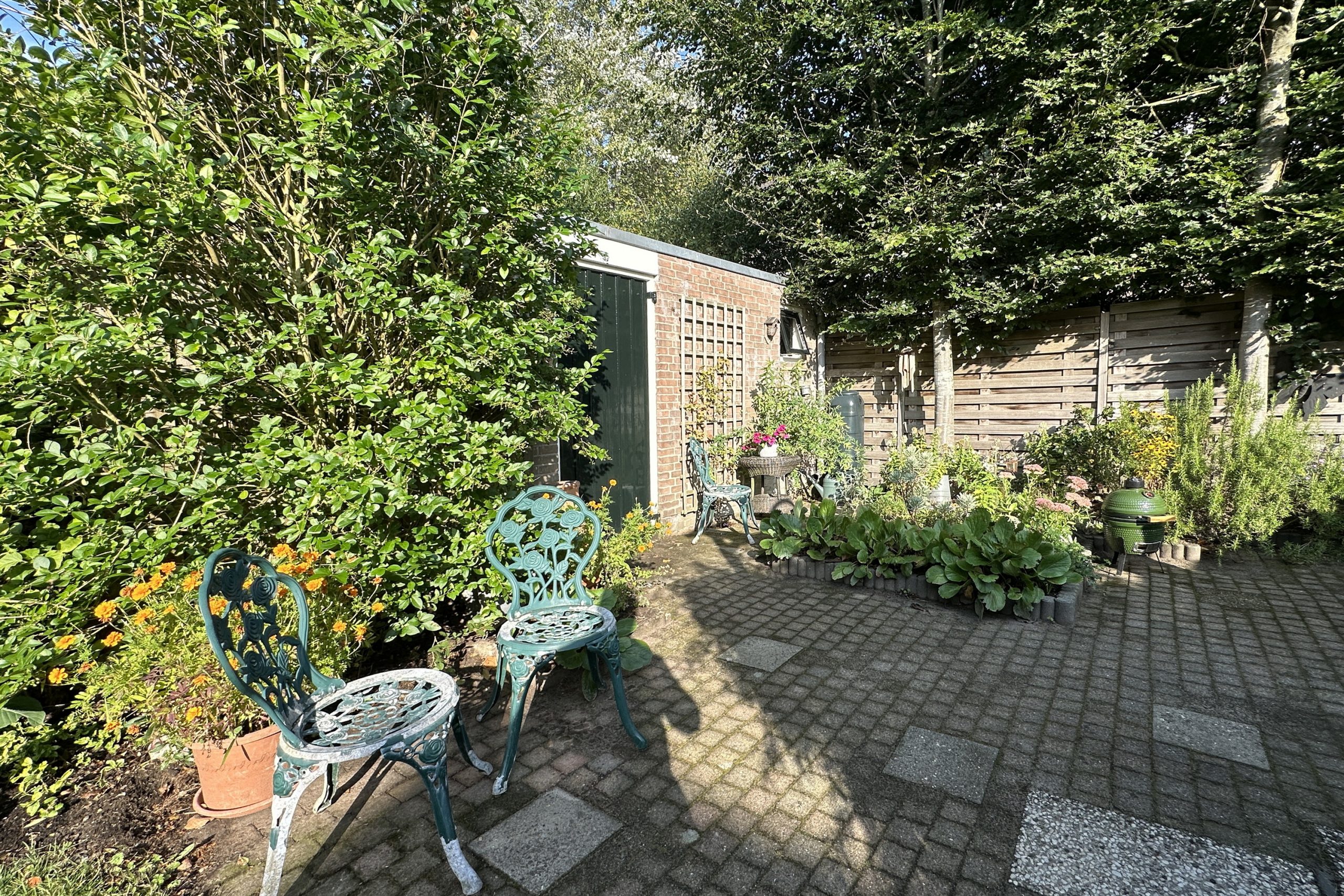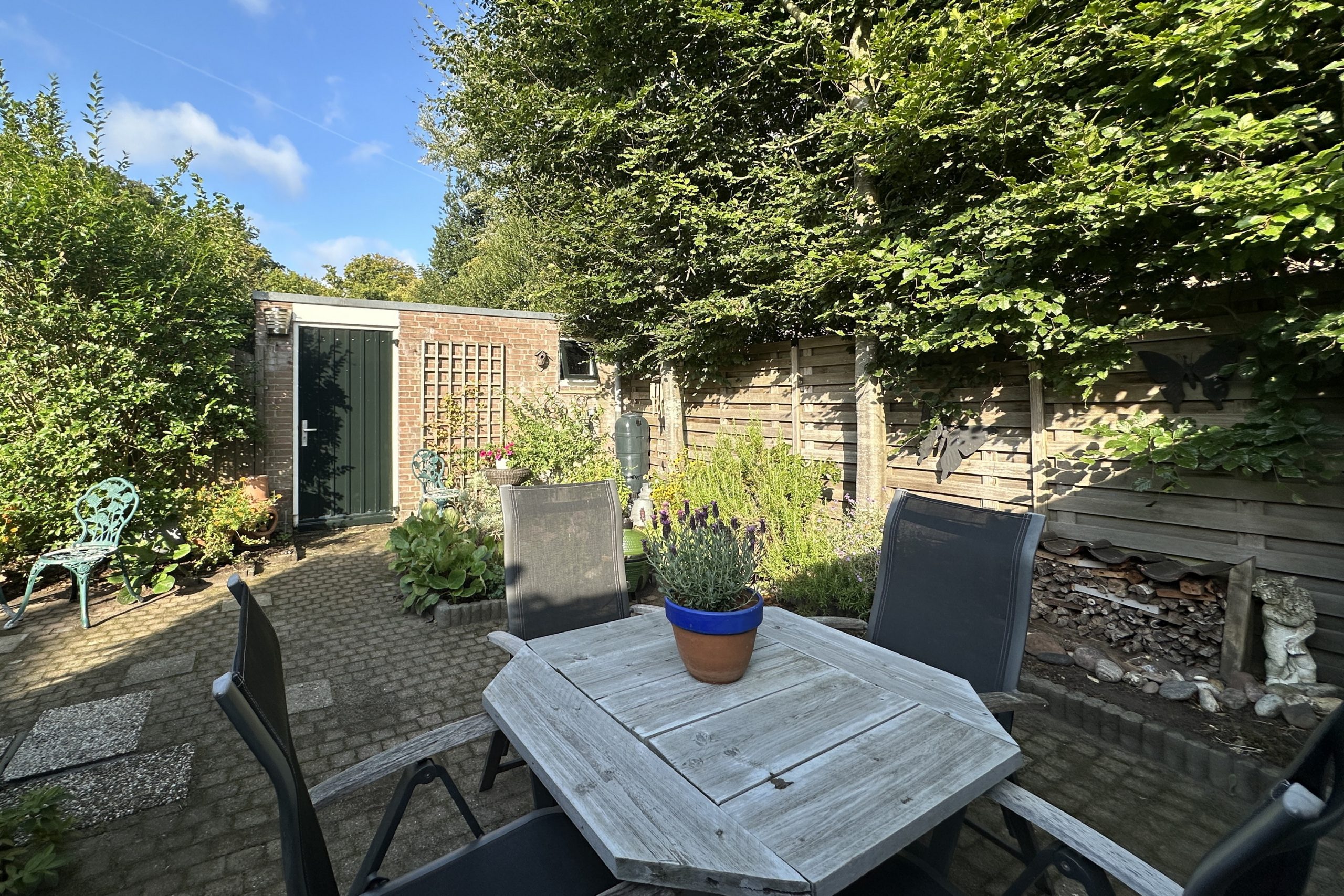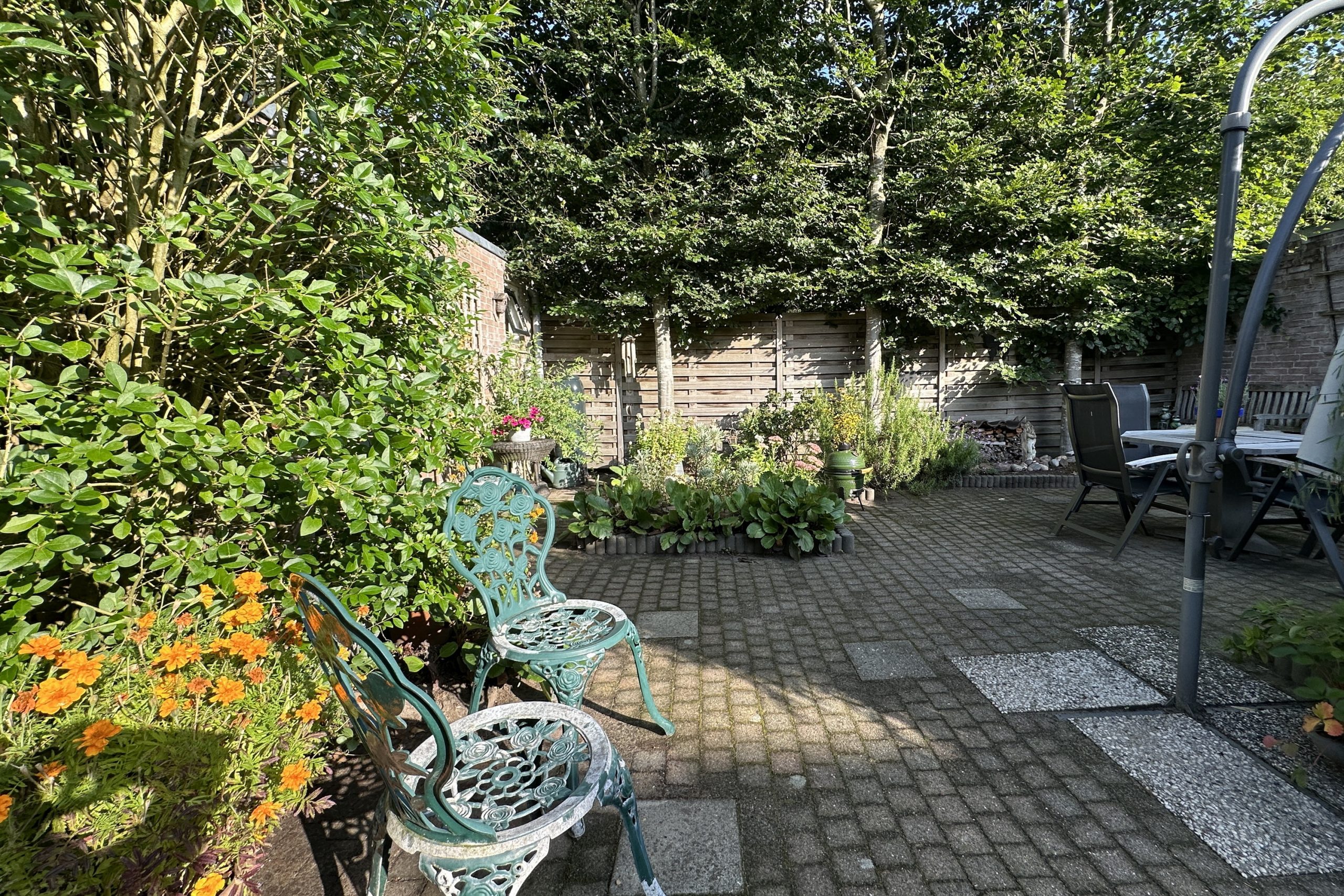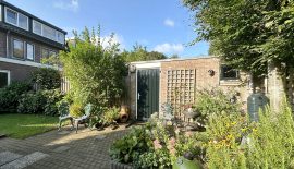 De achtertuin is gelegen op het noord-westen (ca. 115 m²). De voor- en achtertuin zijn fraai aangelegd met diverse borders, beplanting en terrassen, de voortuin is recentelijk omheind met een nieuw schapenhek. In deze 2 tuinen kunt u op elk moment van de dag ergens van de zon genieten en kunnen kinderen heerlijk spelen. Hoe handig is het om een aparte schuur te hebben, zodat bijvoorbeeld jouw oldtimer gewoon in de garage kan staan.