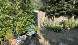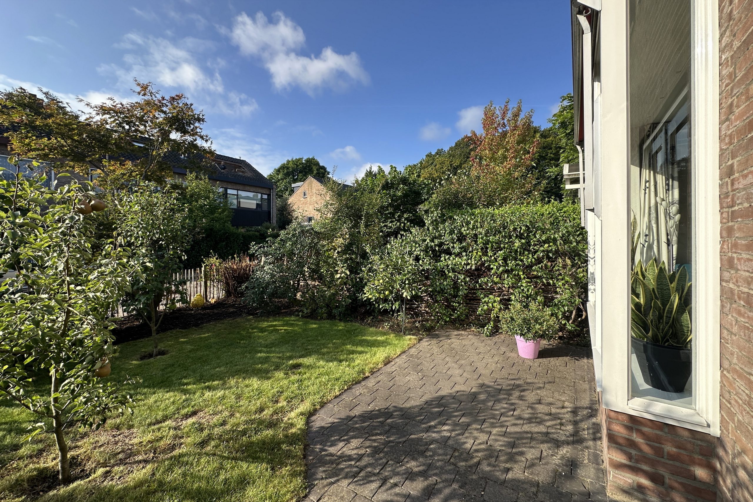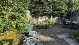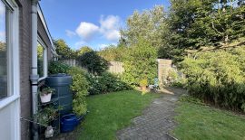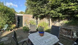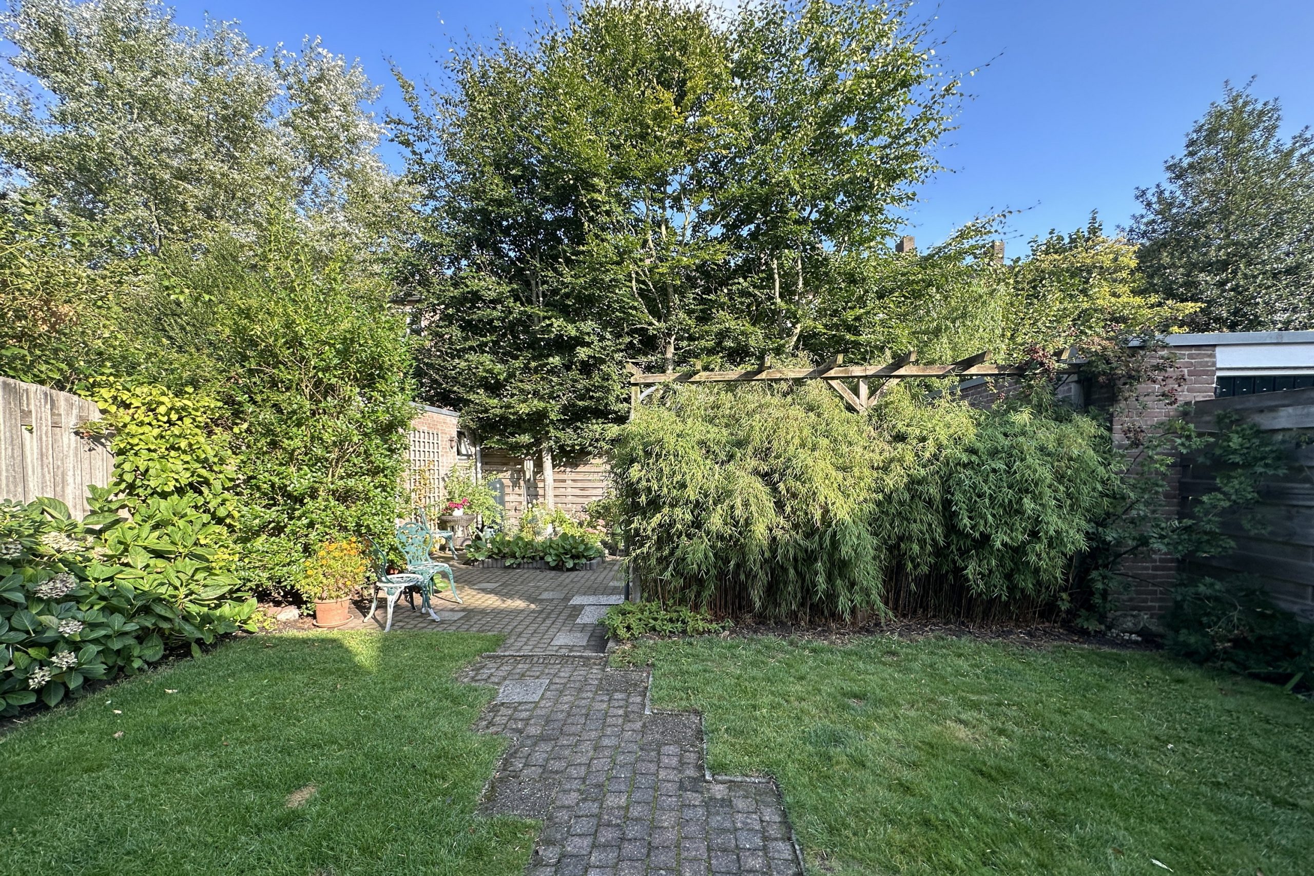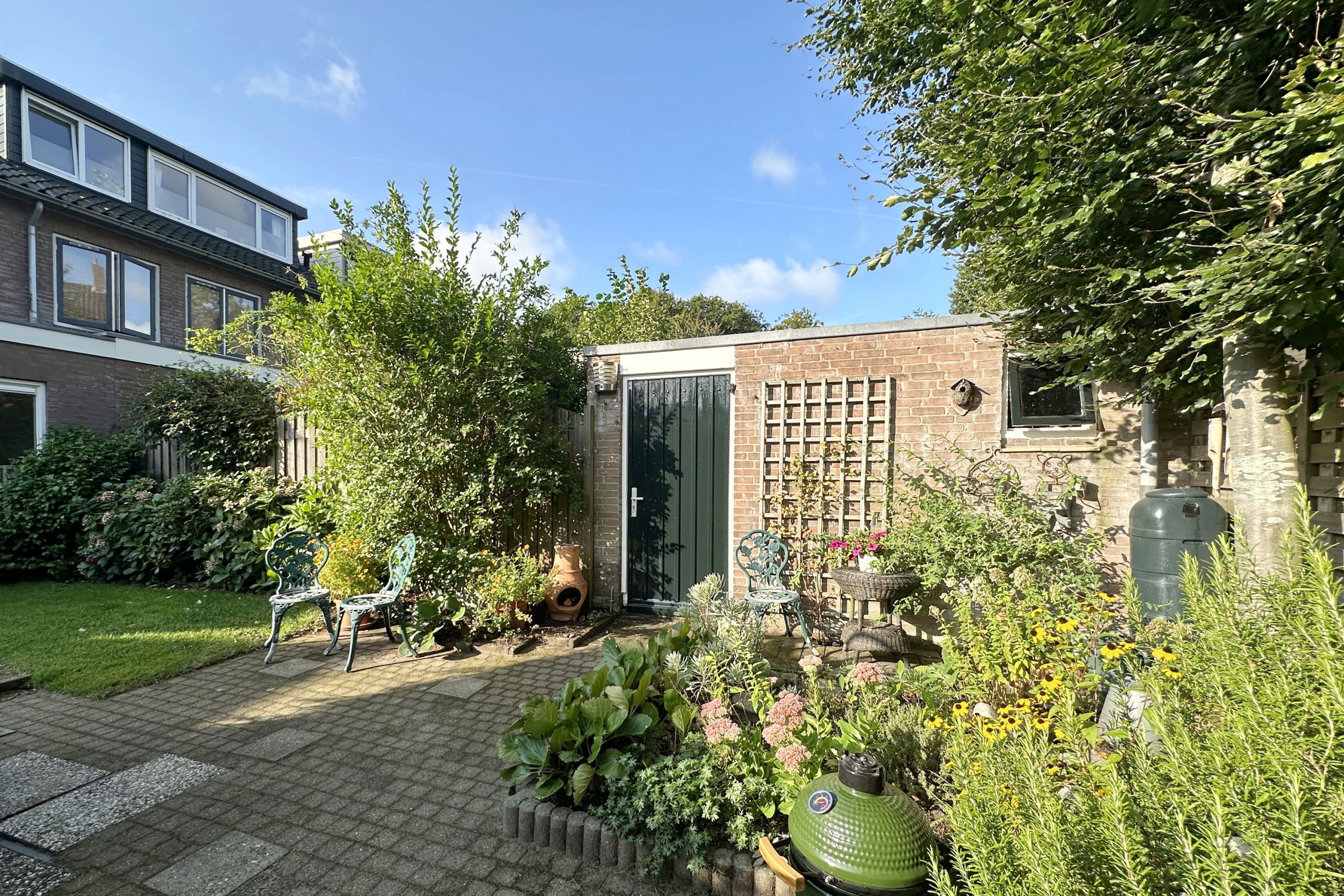De achtertuin is gelegen op het noord-westen (ca. 115 m²). De voor- en achtertuin zijn fraai aangelegd met diverse borders, beplanting en terrassen, de voortuin is recentelijk omheind met een nieuw schapenhek. In deze 2 tuinen kunt u op elk moment van de dag ergens van de zon genieten en kunnen kinderen heerlijk spelen. Hoe handig is het om een aparte schuur te hebben, zodat bijvoorbeeld jouw oldtimer gewoon in de garage kan staan.