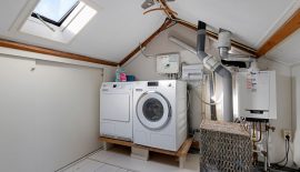 Bereikbaar met een nieuw geplaatste vaste trap die uitkomt in de dakkapel (2012) waardoor er ook daglicht is. Kleine overloop, waskamer met dakraam, aansluiting was- en droogmachine, opstelling CV-HR-Combiketel (Remeha, 2016) en bergruimte. Tot slot een mooie 4e slaapkamer met dakkapel, radiator en berging.