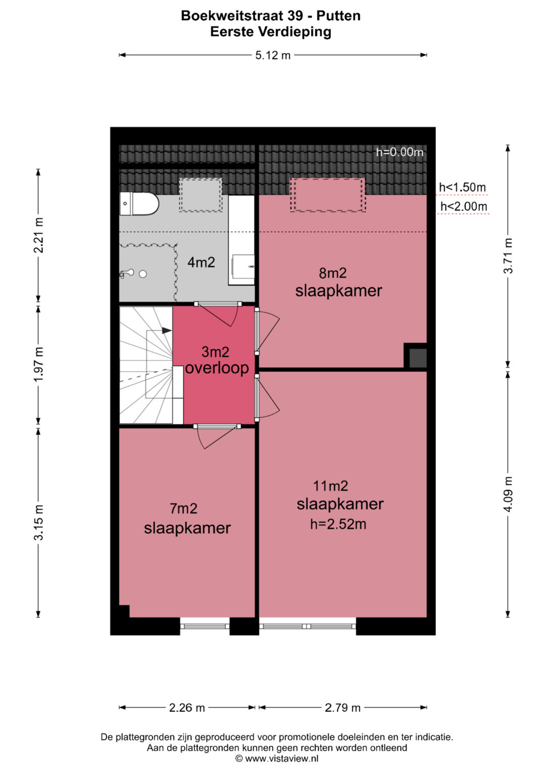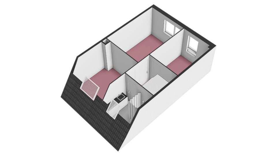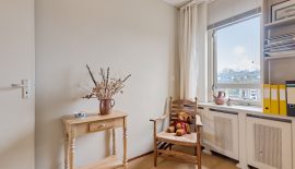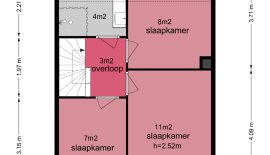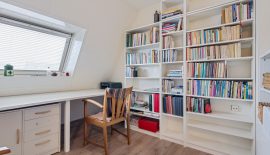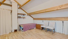 Overloop, royale hoofdslaapkamer van 11 m2 aan de voorzijde; 2e grote slaapkamer met Veluxraam en een vast bureaublad aan de achterzijde. De 3e slaapkamer beschikt over een gevelraam. De originele badkamer bestaat uit een open douchehoek, een 2e toilet, een ‘retro’ meubel met wastafel en een Veluxraam.