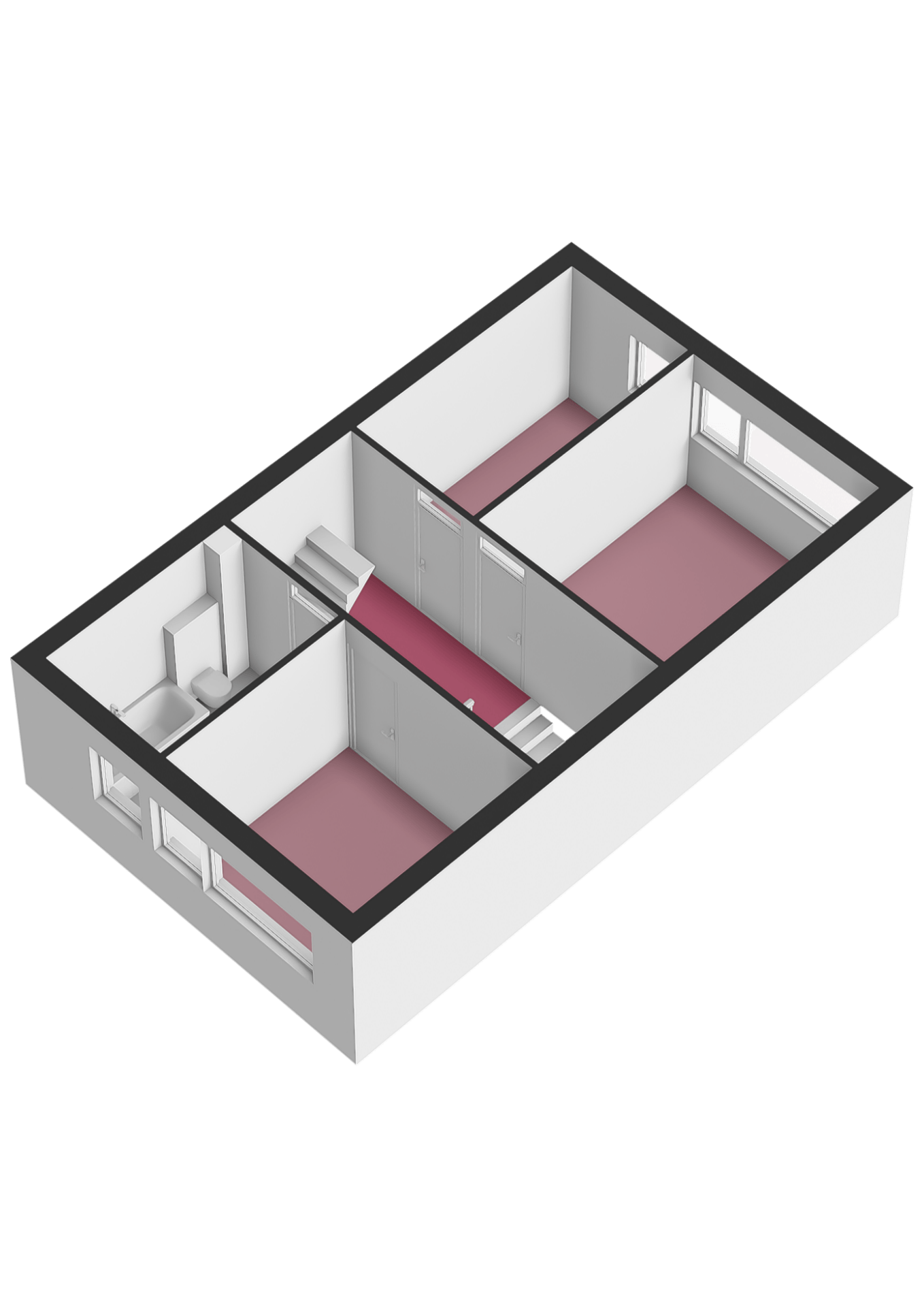 Ruime overloop met toegang tot 2 grote slaapkamers en een derde kleinere slaapkamer. De ruime badkamer heeft alles wat je nodig hebt: een ligbad met douche, wastafel, hangend toilet, wasmachine-aansluiting en een gevelraam.