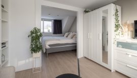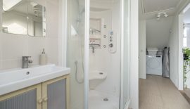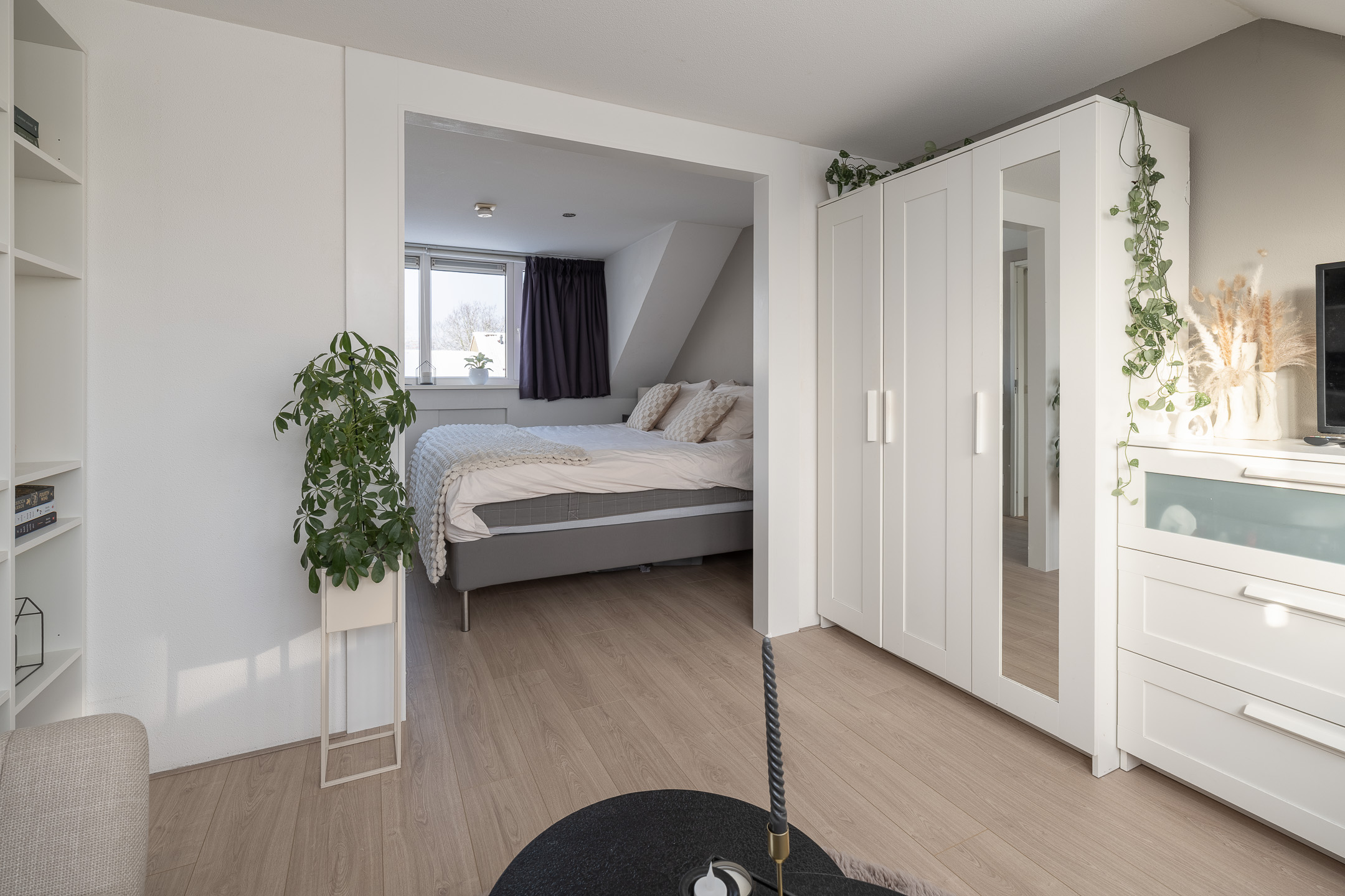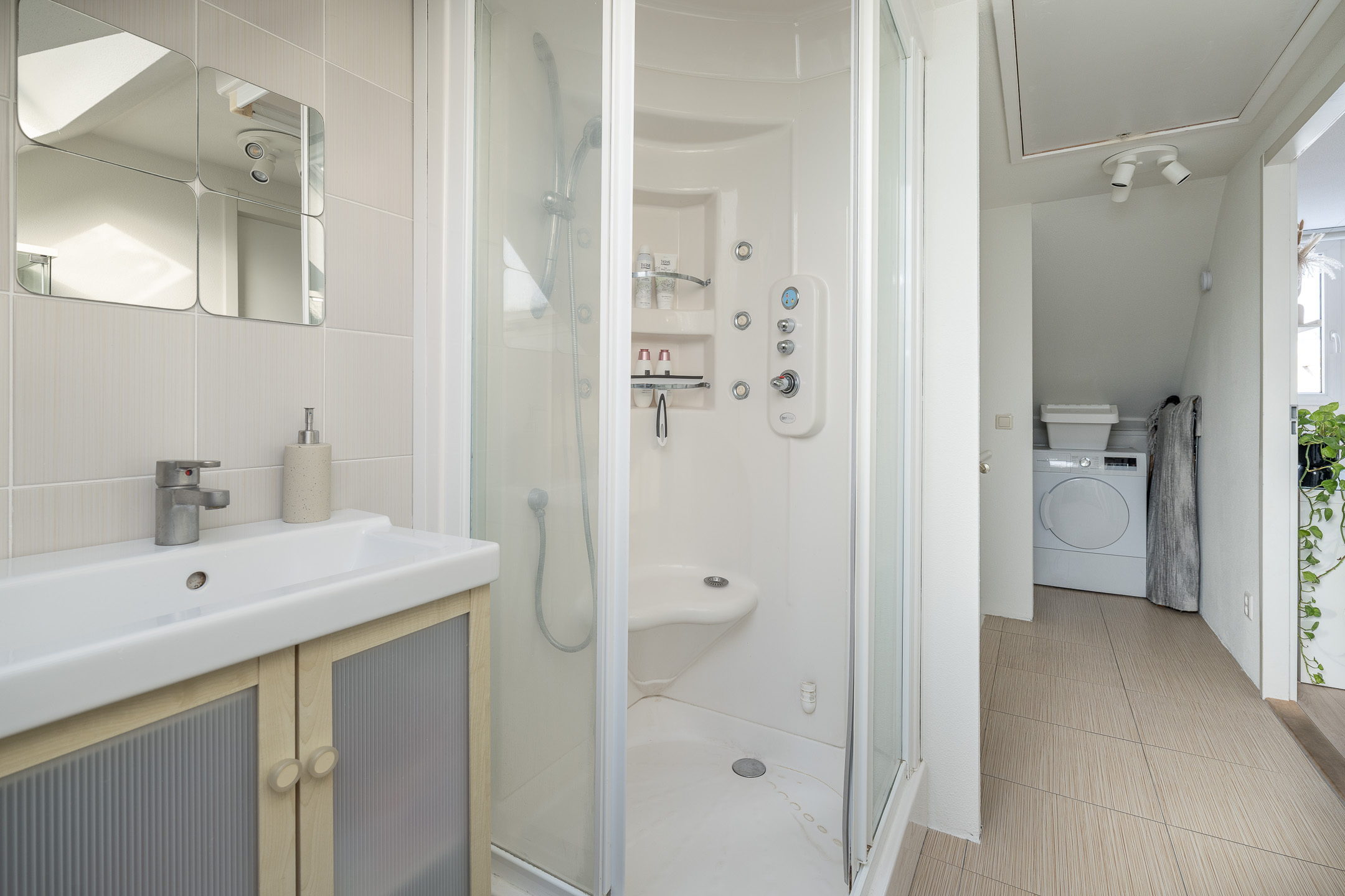 Ruime voorzolder met aansluiting wasmachine / droger en opstelling Intergas HR-combiketel (2015) en mechanische ventilator (2024). Aan de andere zijde van de overloop bevindt zich een douchecabine, een wastafelmeubel en een Veluxraam, ideaal voor als je gasten of oudere kinderen hebt. Tot slot bevindt zich hier nog een mooie slaapkamer (voorheen 2) met 2 (kunststof) dakkapellen, welke door middel van een toog met elkaar verbonden zijn. Op eenvoudige wijze maak je hier weer 2 separate kamers van, beide deuren zijn nog aanwezig.