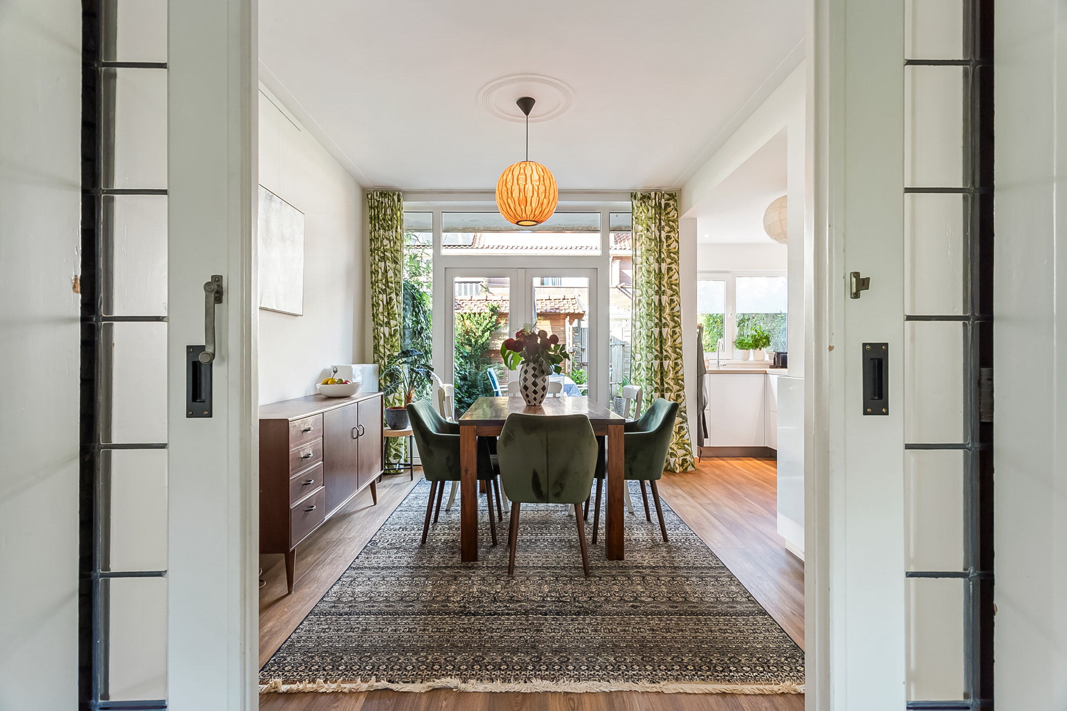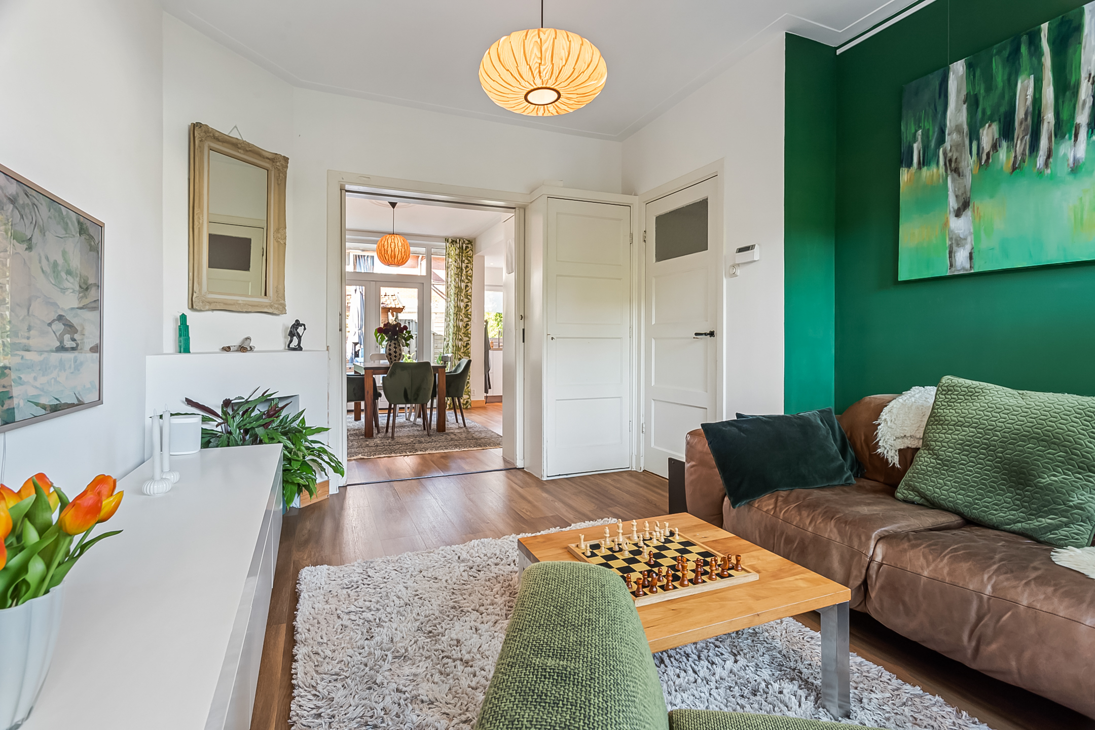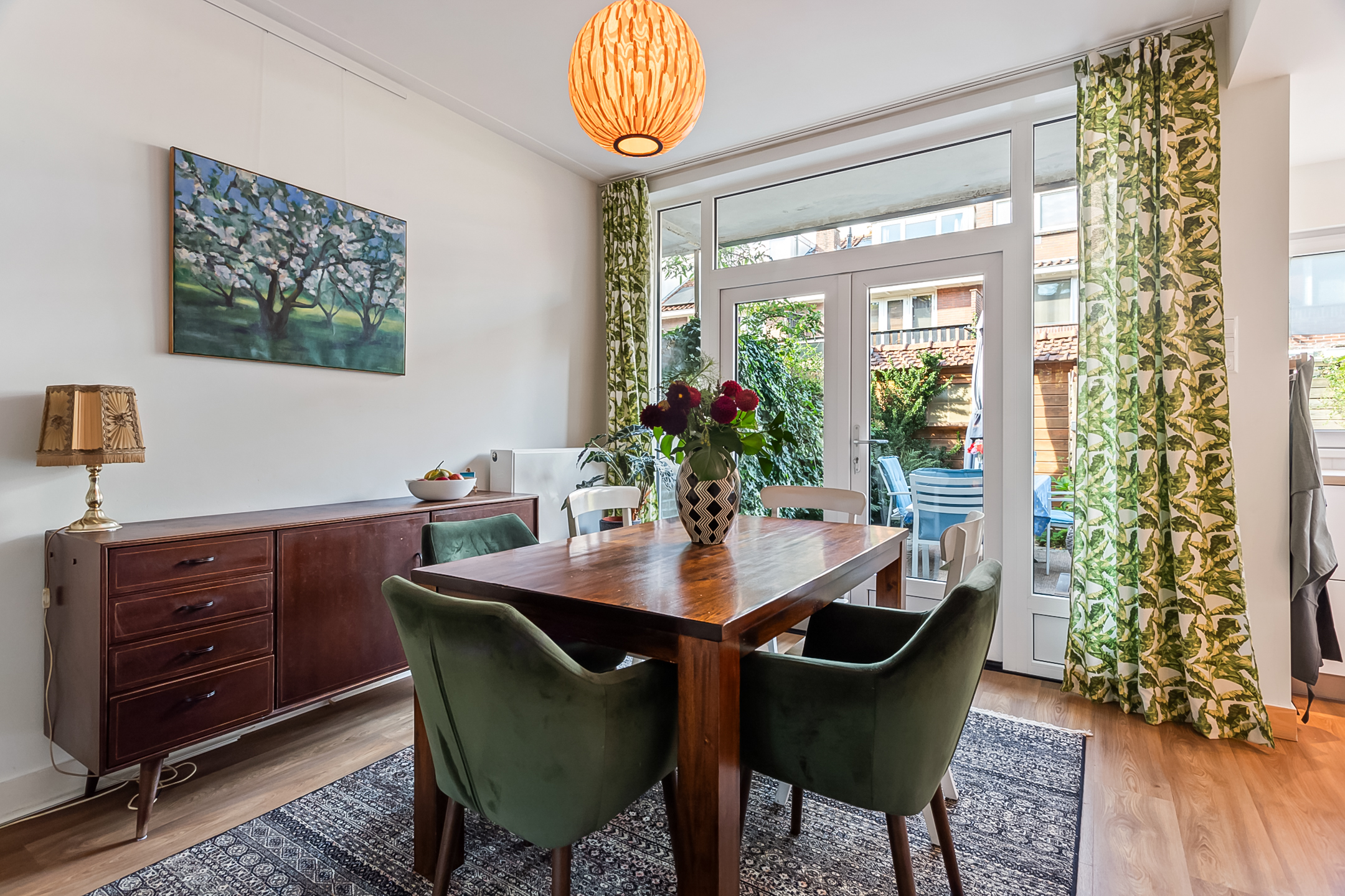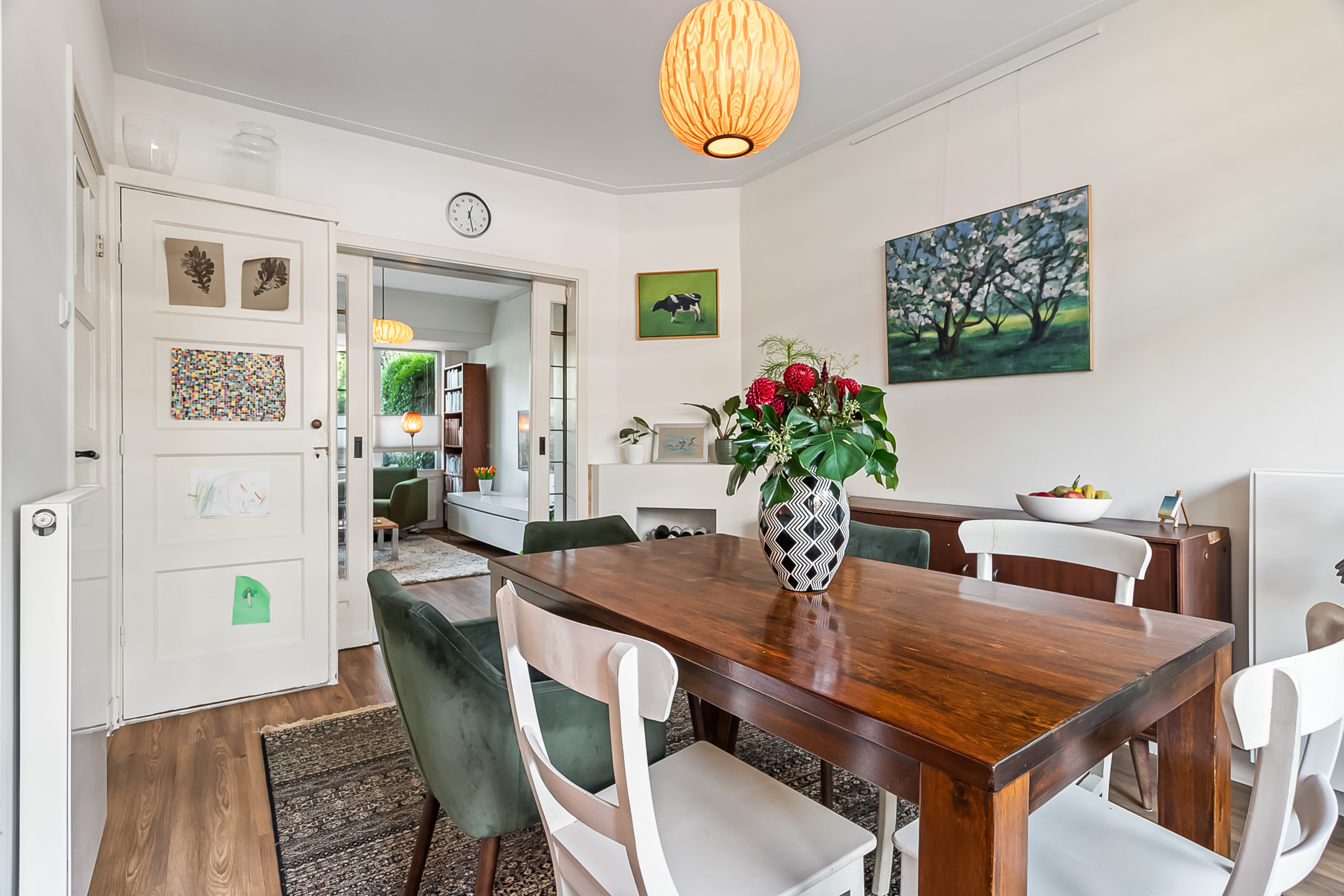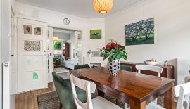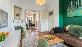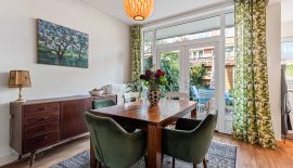 Het karakter van de dertiger jaren is bij deze fijne woning mooi gemixt met hedendaags comfort. Voeg daar de fijne voor- en achtertuin aan toe en je hebt de ideale gezinswoning. Het onderhoud is goed op orde. De woonkamer-en-suite is erg sfeervol door de prachtige en-suitedeuren met glas-in-lood, erker, PVC-vloer in warme kleurstelling en schouwen. Via de openslaande deuren staat de woonkamer direct in verbinding met de heerlijk zonnige achtertuin. De keuken is neutraal en van alle gemakken voorzien. De badkamer biedt comfort. Op de verdiepingen bevinden zich maar liefst 4 goed bruikbare slaapkamers en veel bergruimte.