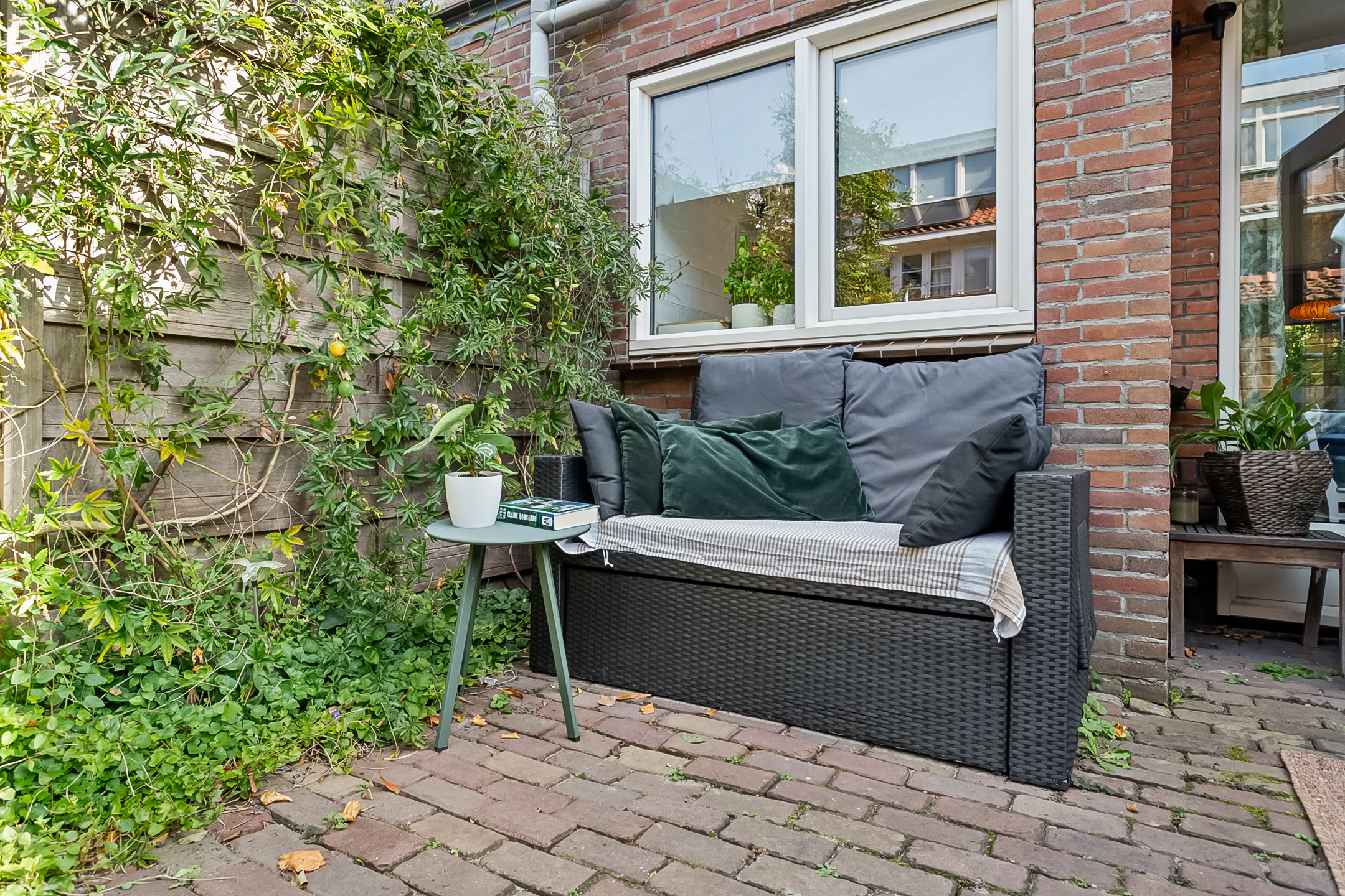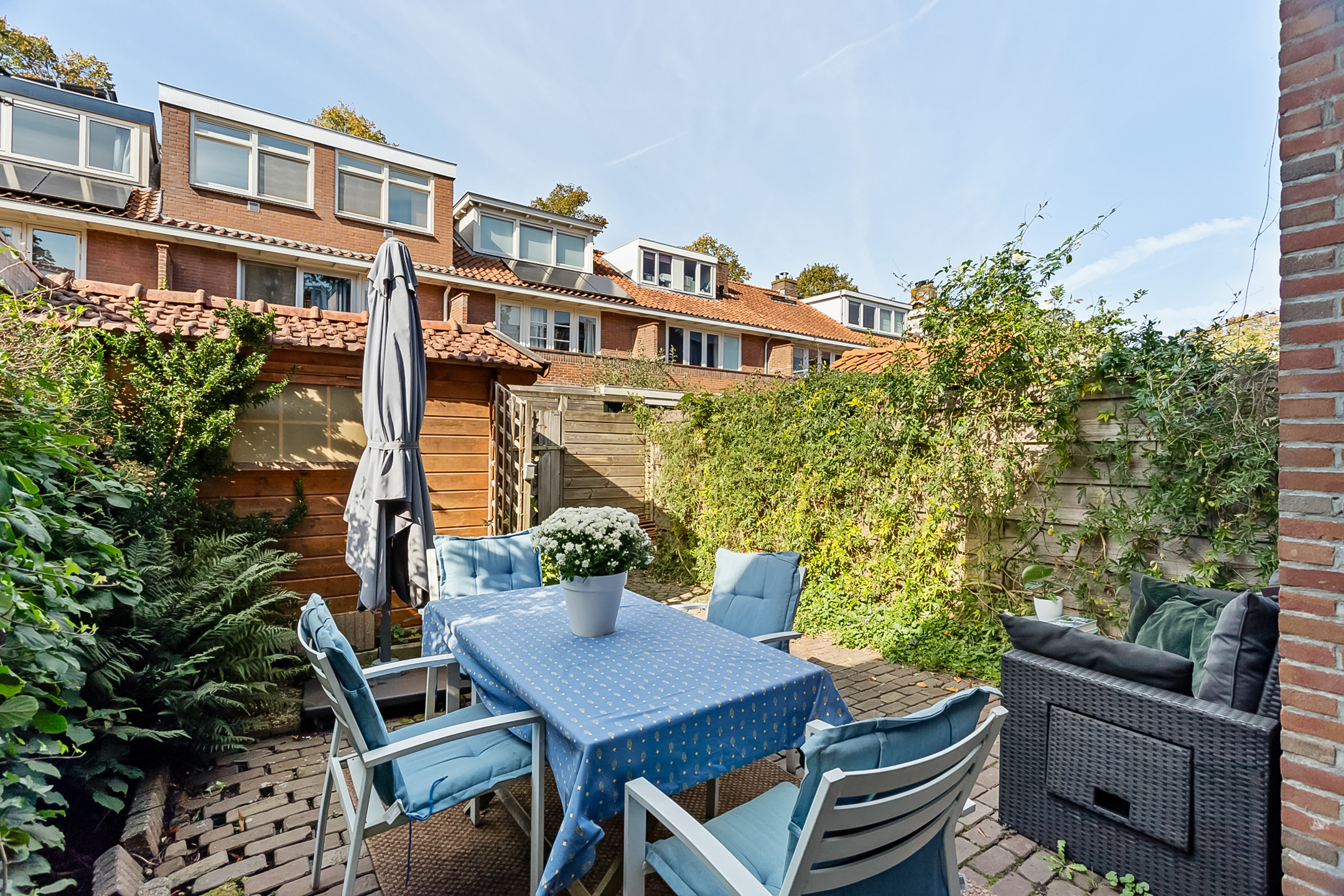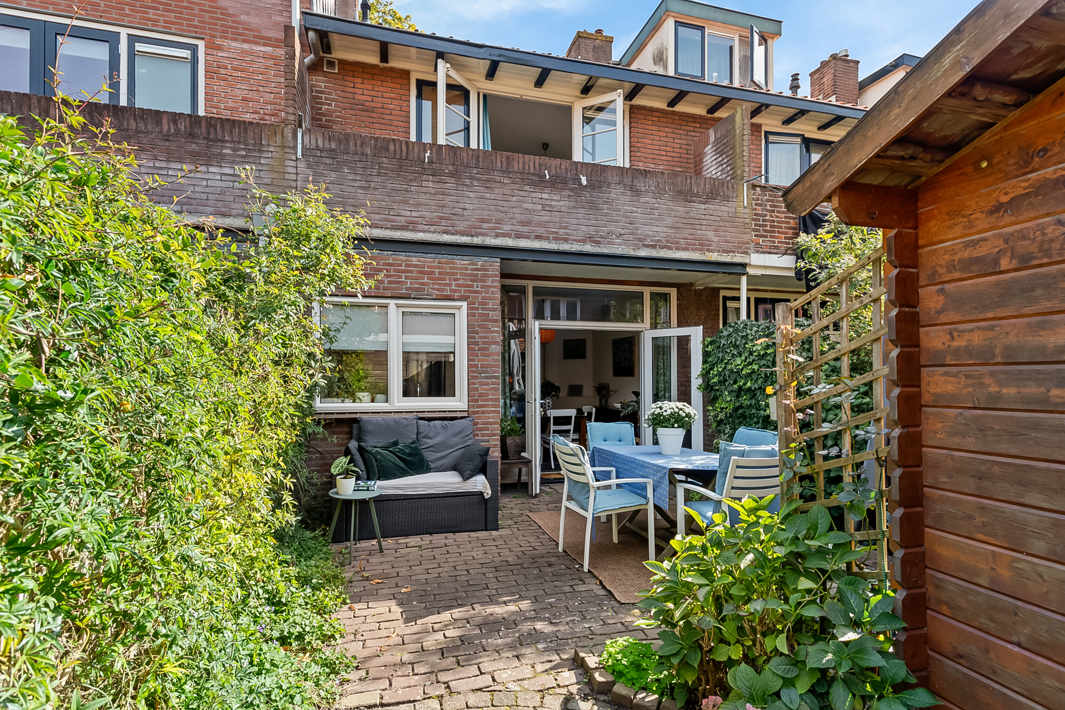 Heerlijke achtertuin gelegen op het westen met vrijstaande houten berging met elektra en een achterom. Vanaf het middaguur tot en met de avond laat de zon hier zich zien.