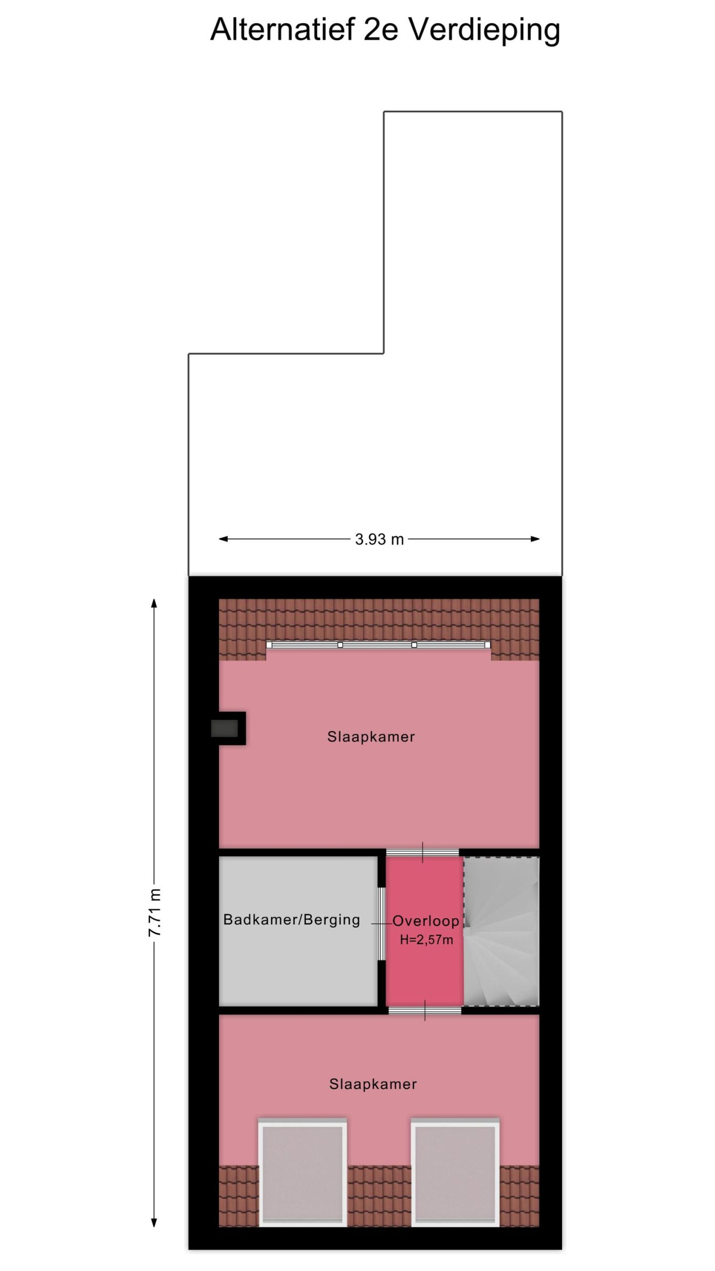 Open en zeer ruime tweede verdieping, die nu in gebruik is als werk- en logeerruimte, maar die ook zeer geschikt is om twee aparte slaapkamers te creëren.