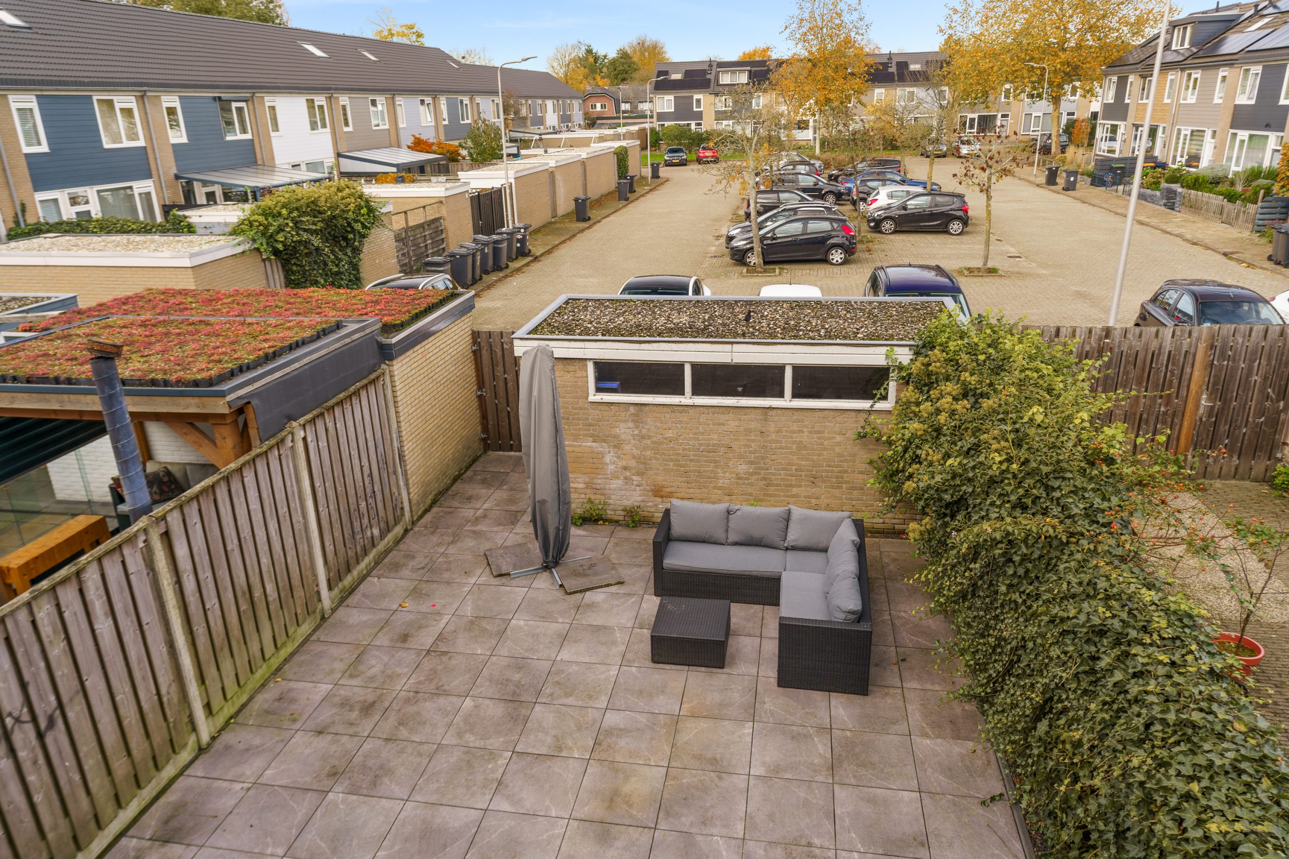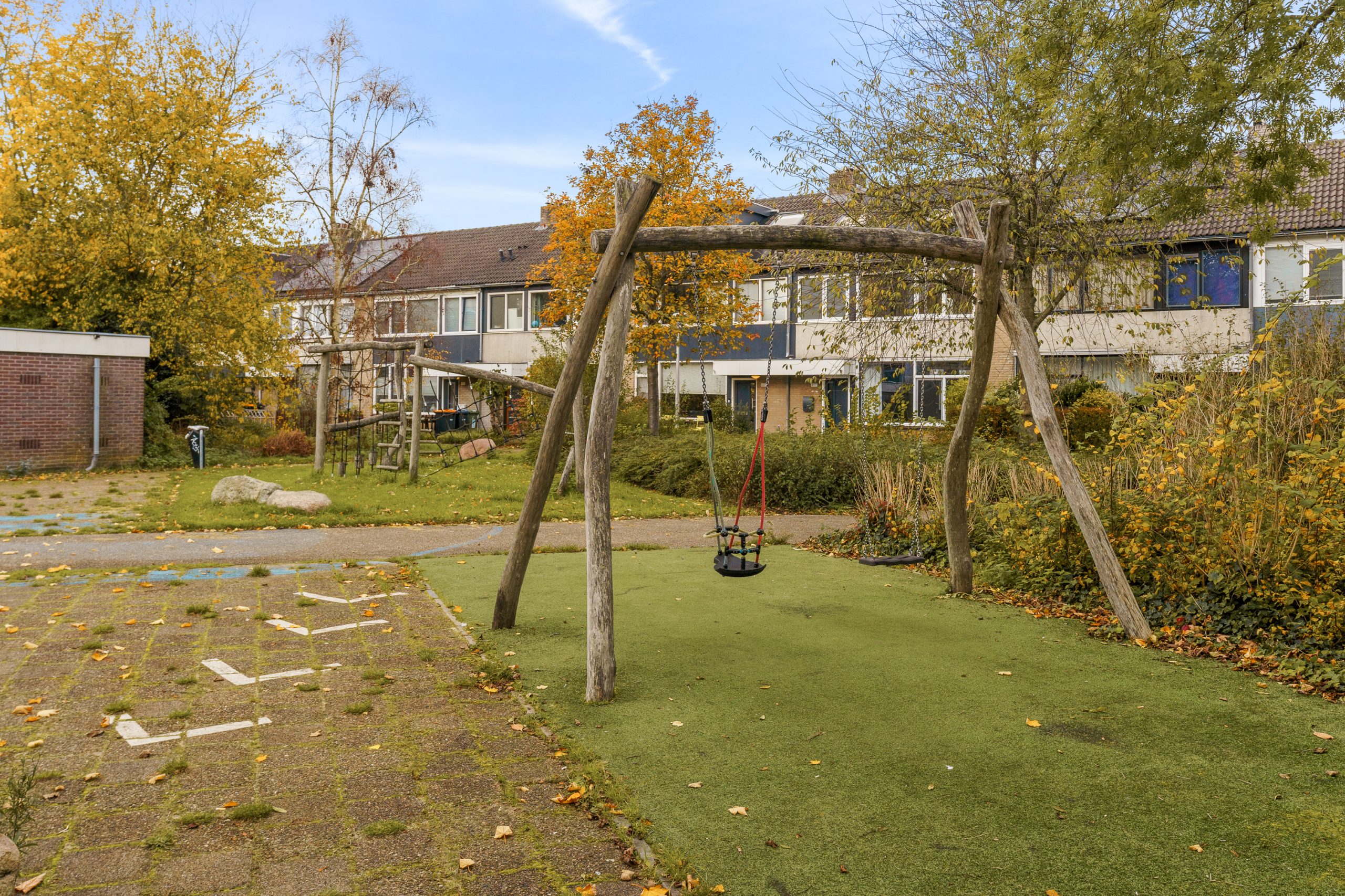 De achtertuin gelegen op het noordwesten (middag- en avondzon) en is circa 10 meter diep en voorzien van een stenen berging en achteruitgang. Deze komt uit op het achtergelegen parkeerterrein met voldoende parkeergelegenheid. De voorzijde ligt op het zuid-oosten (ochtendzon) en kenmerkt zich door een diepe voortuin en een oase van groen daaromheen met een aantal speeltoestellen, waar je heerlijk kunt genieten van de natuur en de rustige omgeving.