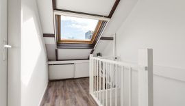 Ruime voorzolder met nieuw tuimelraam, opstelling CV-HR-combiketel (Intergas 2017), wasmachineaansluiting en berging. Nog 2 mooie slaapkamers, beide voorzien van een groot tuimelraam (waarvan 1 nieuw).