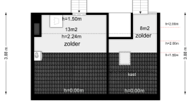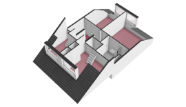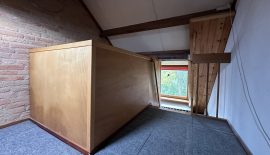 Op de volgende niveau’s bevinden zich een kleine slaapkamer met dakkapel, kastruimte en een extra hobbyruimte met tuimelraam. Daarnaast ligt een grotere slaapkamer met dakkapel, vaste kast en een opkamer met opstelling CV-combiketel (Bosch, 2006) en berging.