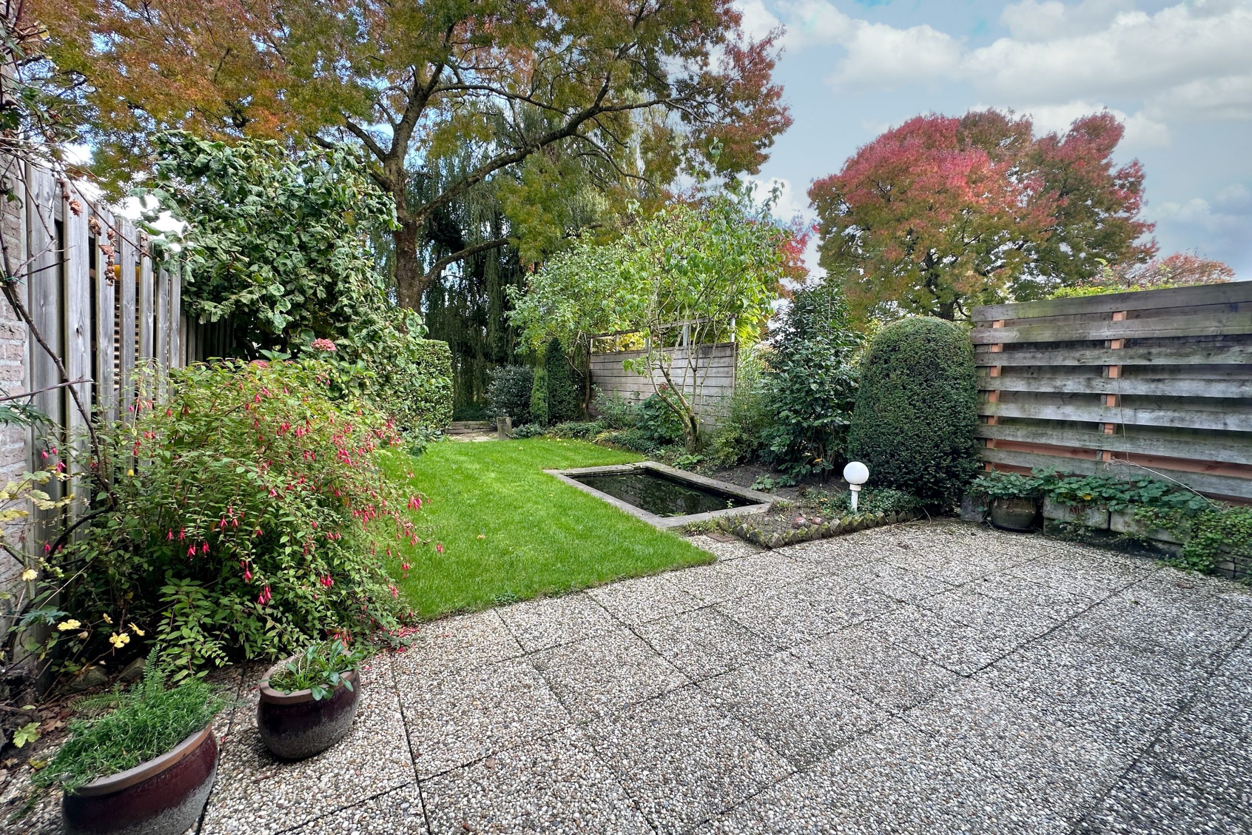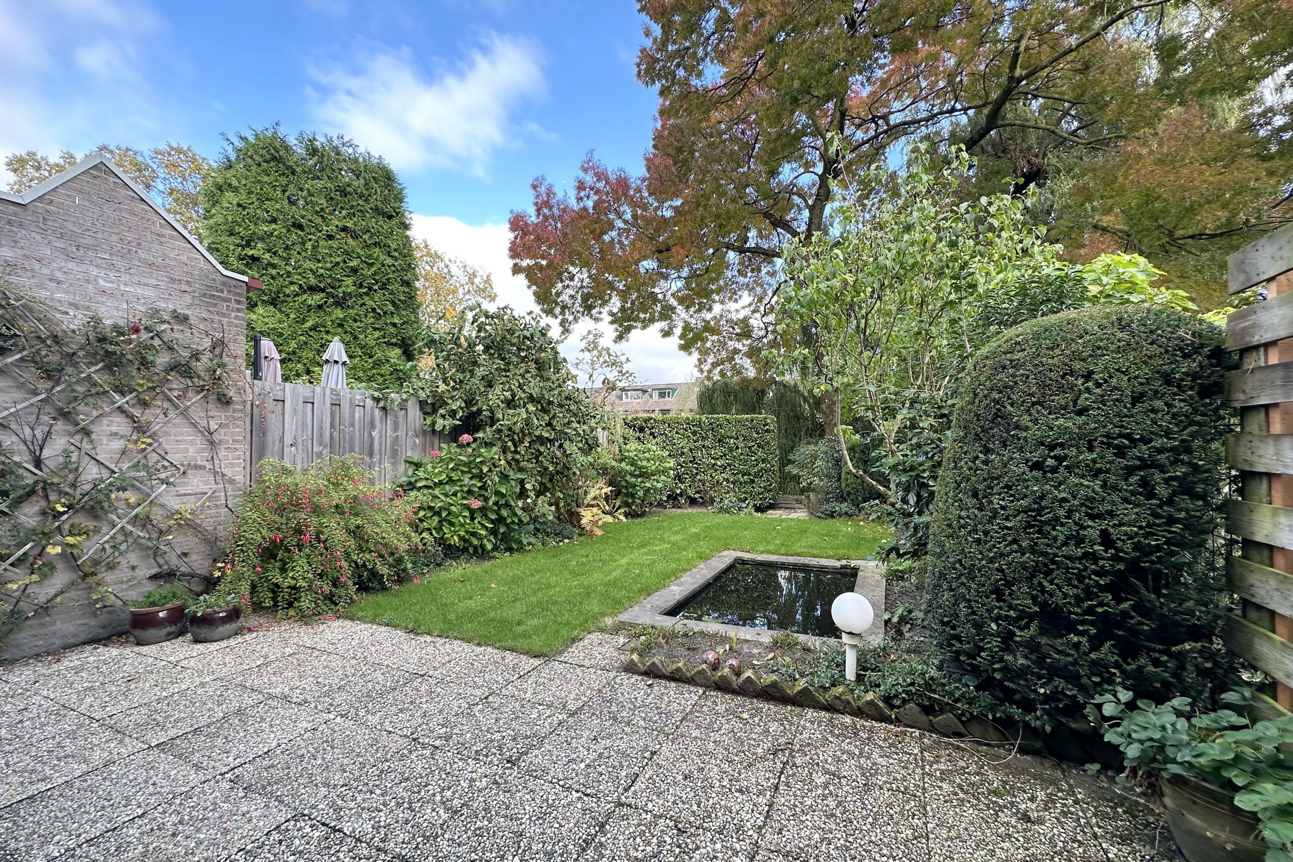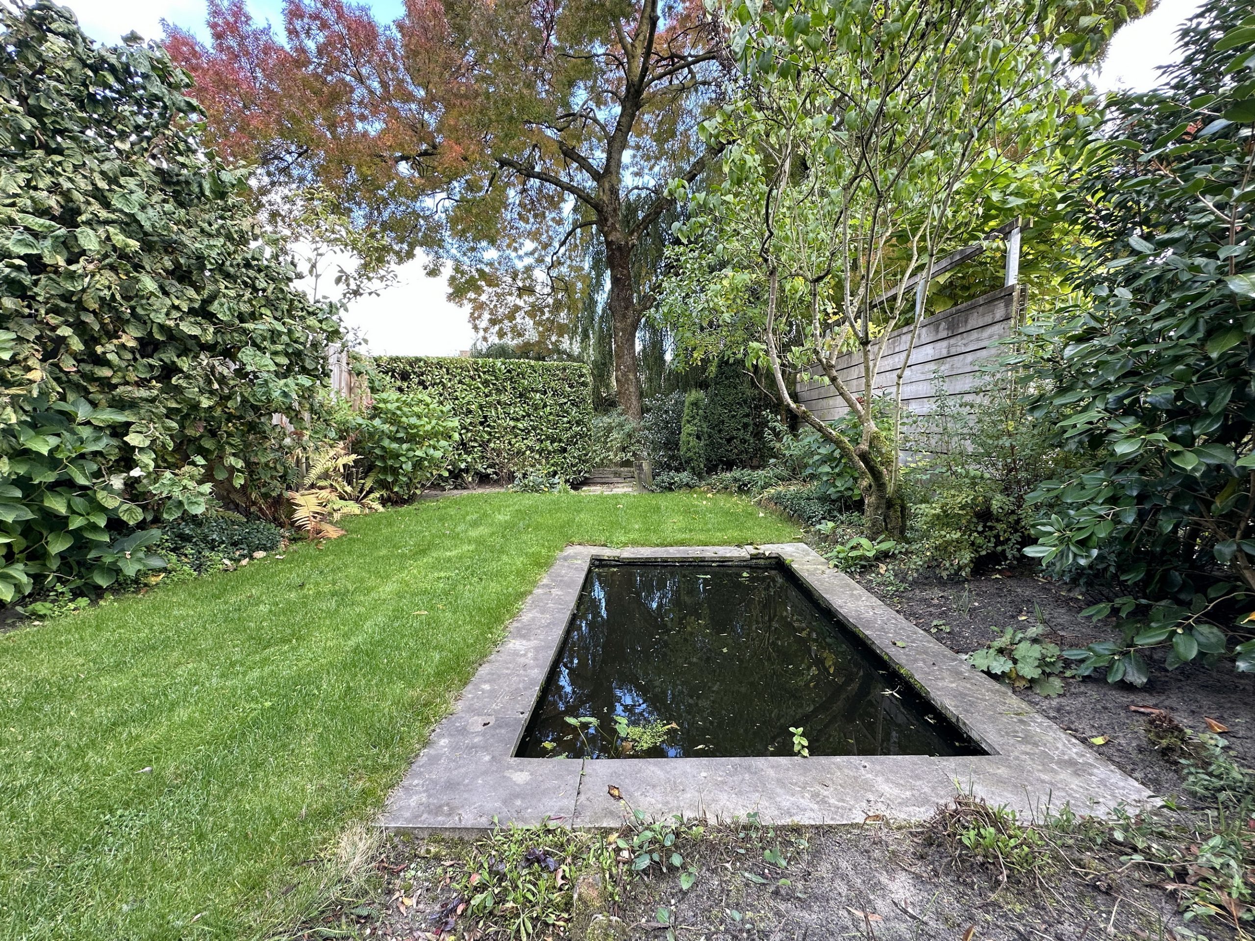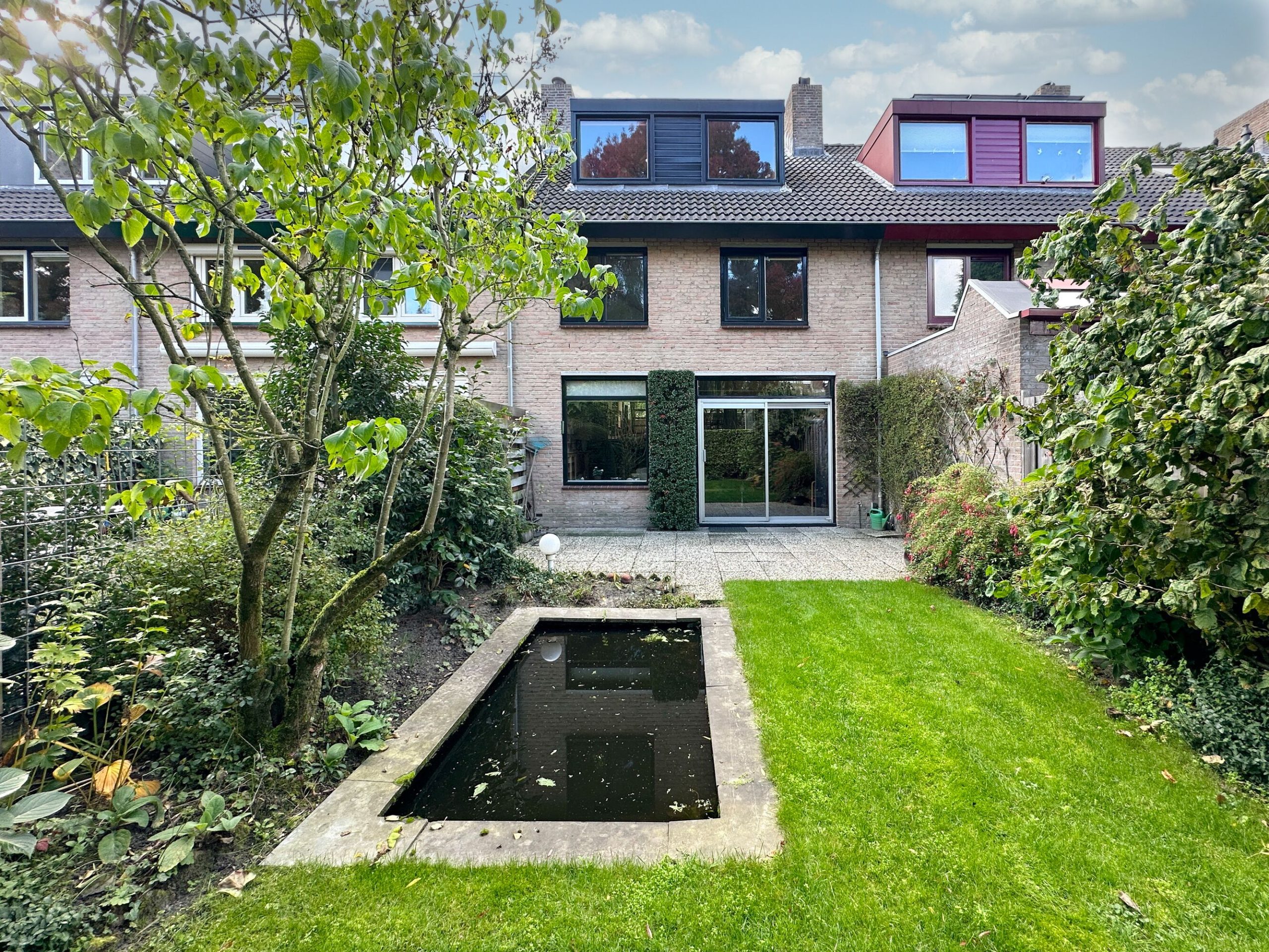 – keurig aangelegde achtertuin op het oosten voorzien van strakke vijverpartij en achterom