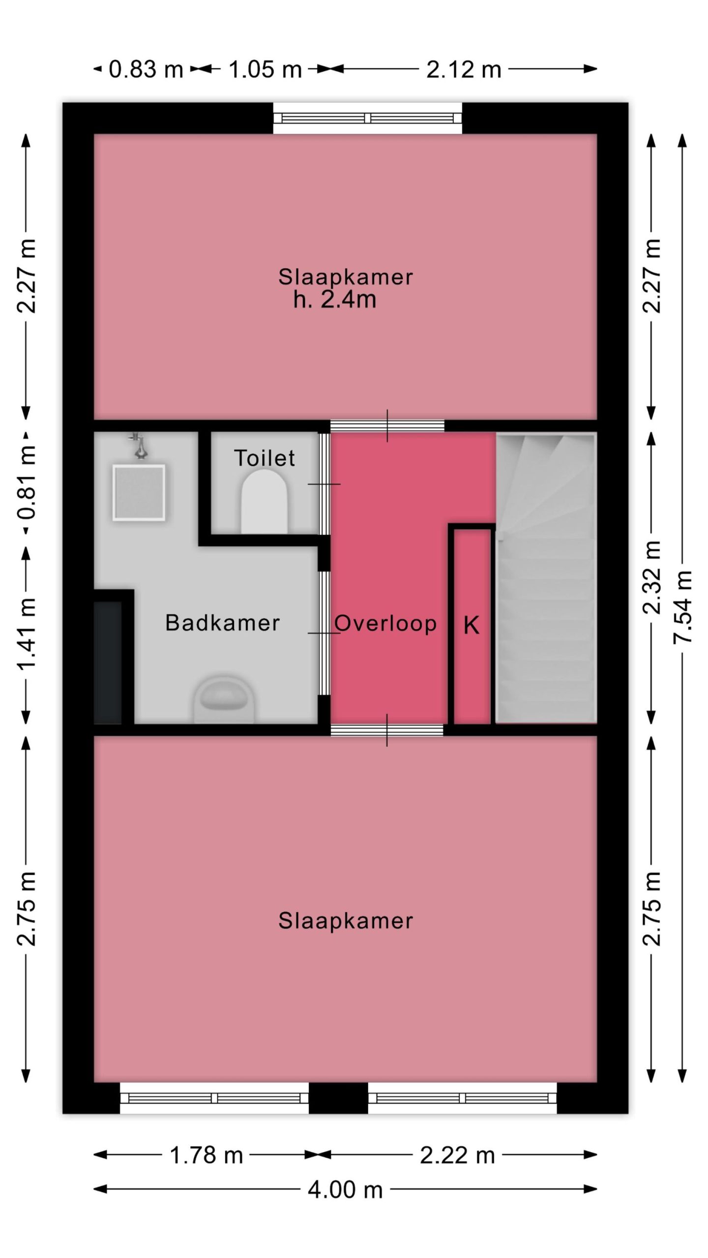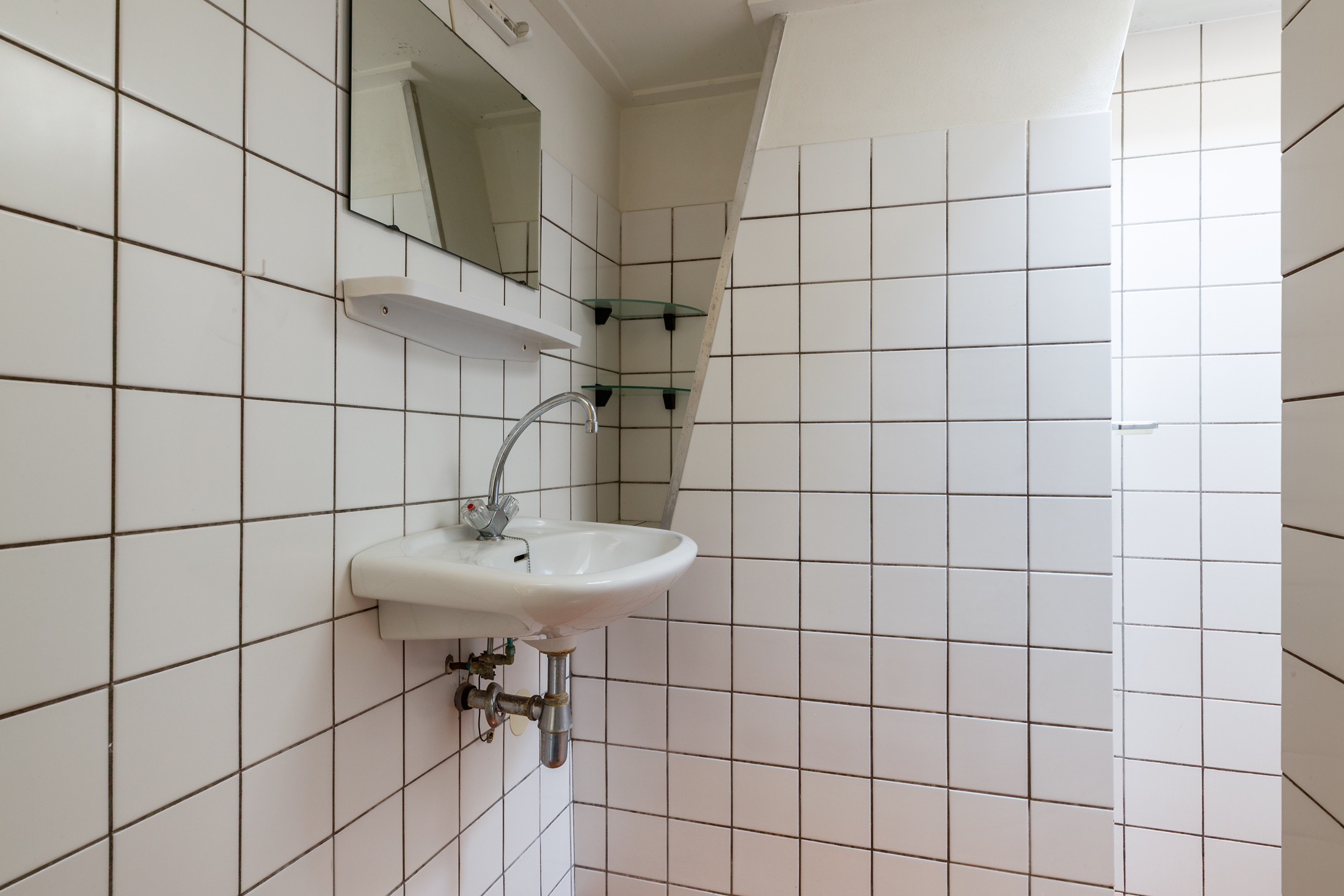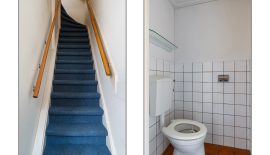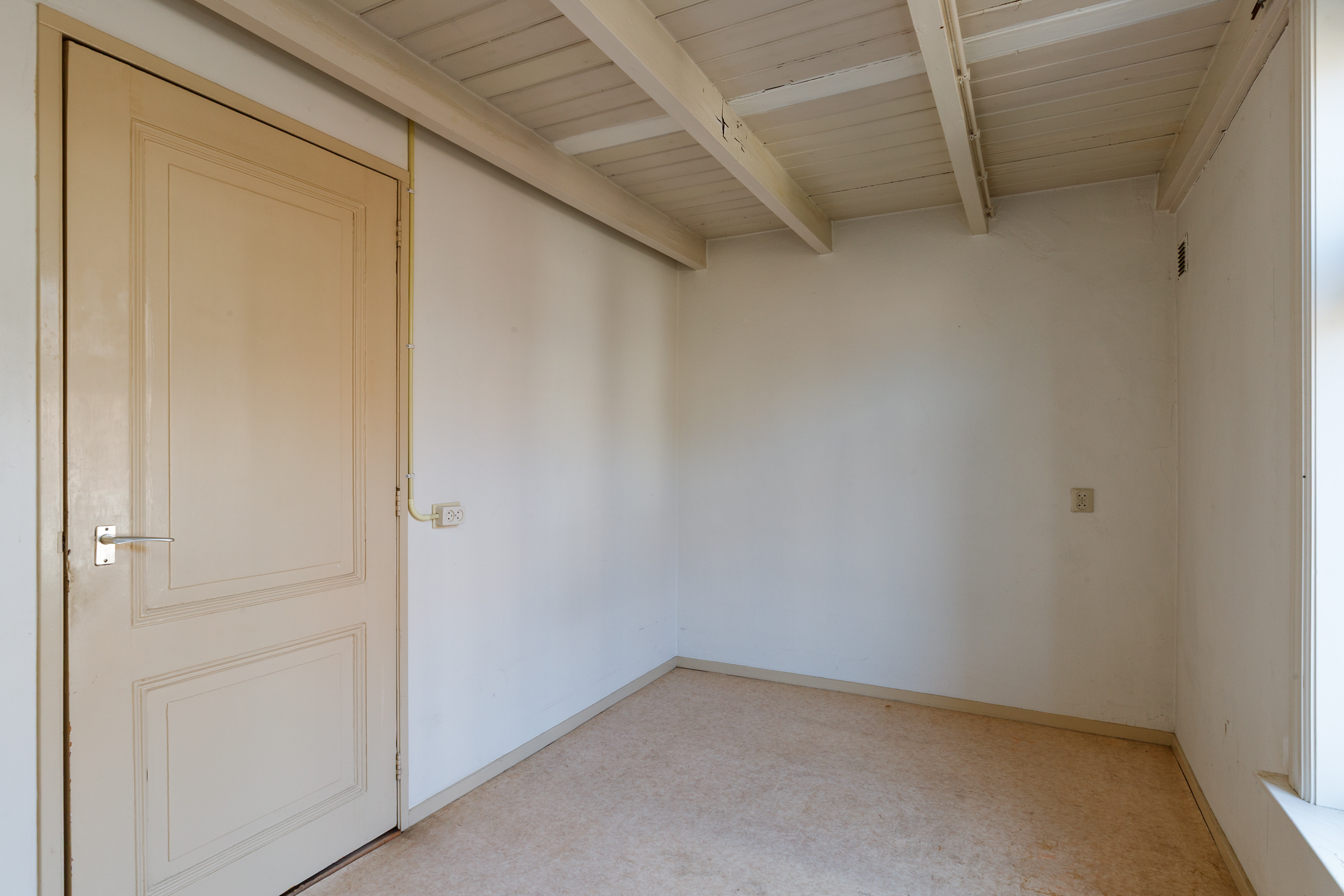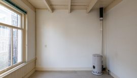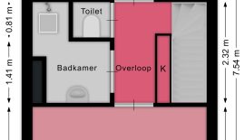 Overloop met opbergkast. Grote slaapkamer aan de voorzijde, voorzien van een mooi balkenplafond, dubbele raampartij en originele lambrisering. Aan de achterzijde vind je de tweede slaapkamer, die tevens ruim is. De badkamer bevind zich tussen beide slaapkamers in en is voorzien van een douche en wastafel. De toiletruime is separaat.