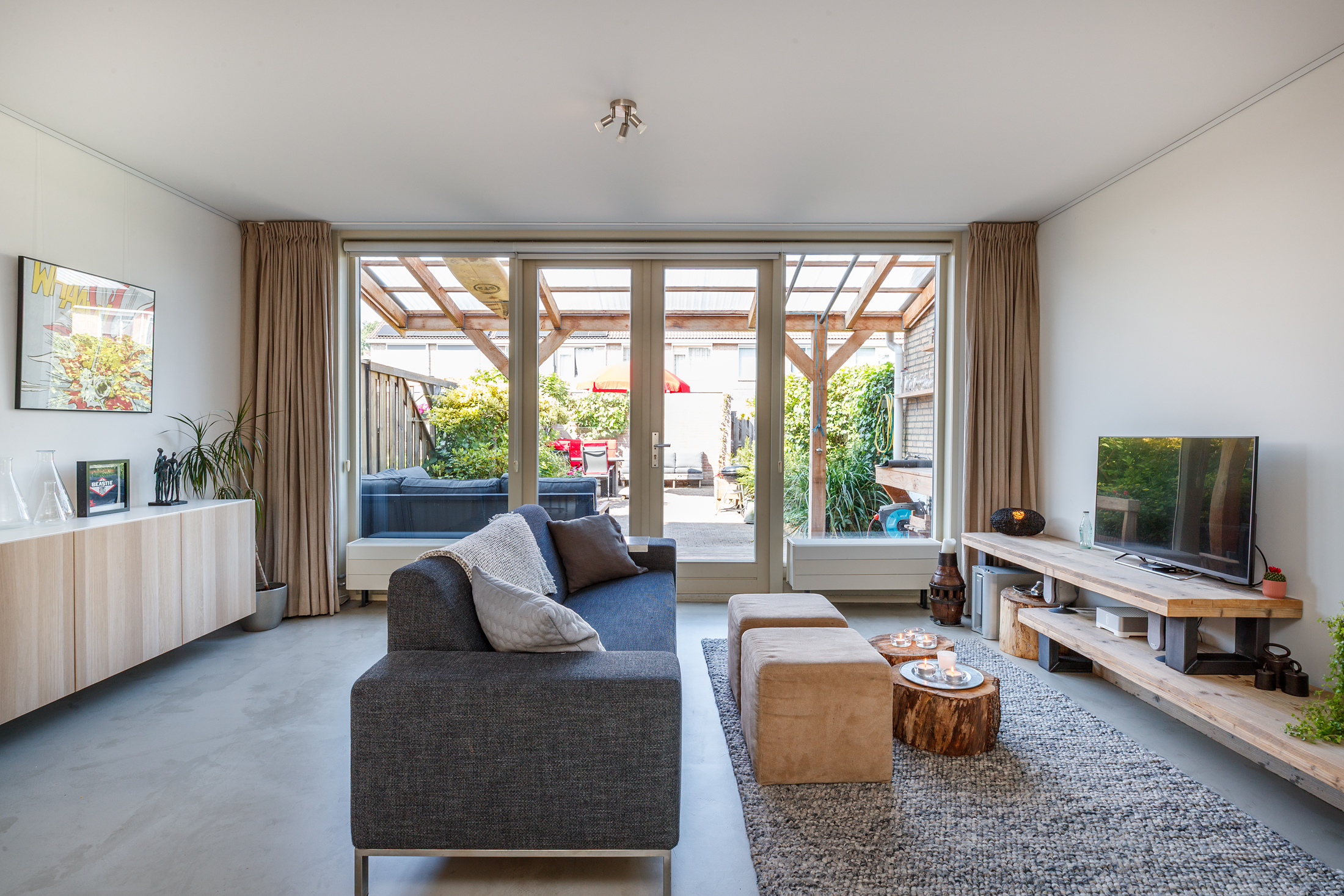 – De woonkamer is aan de achterzijde voorzien van een nieuwe pui met openslaande deuren in 2012