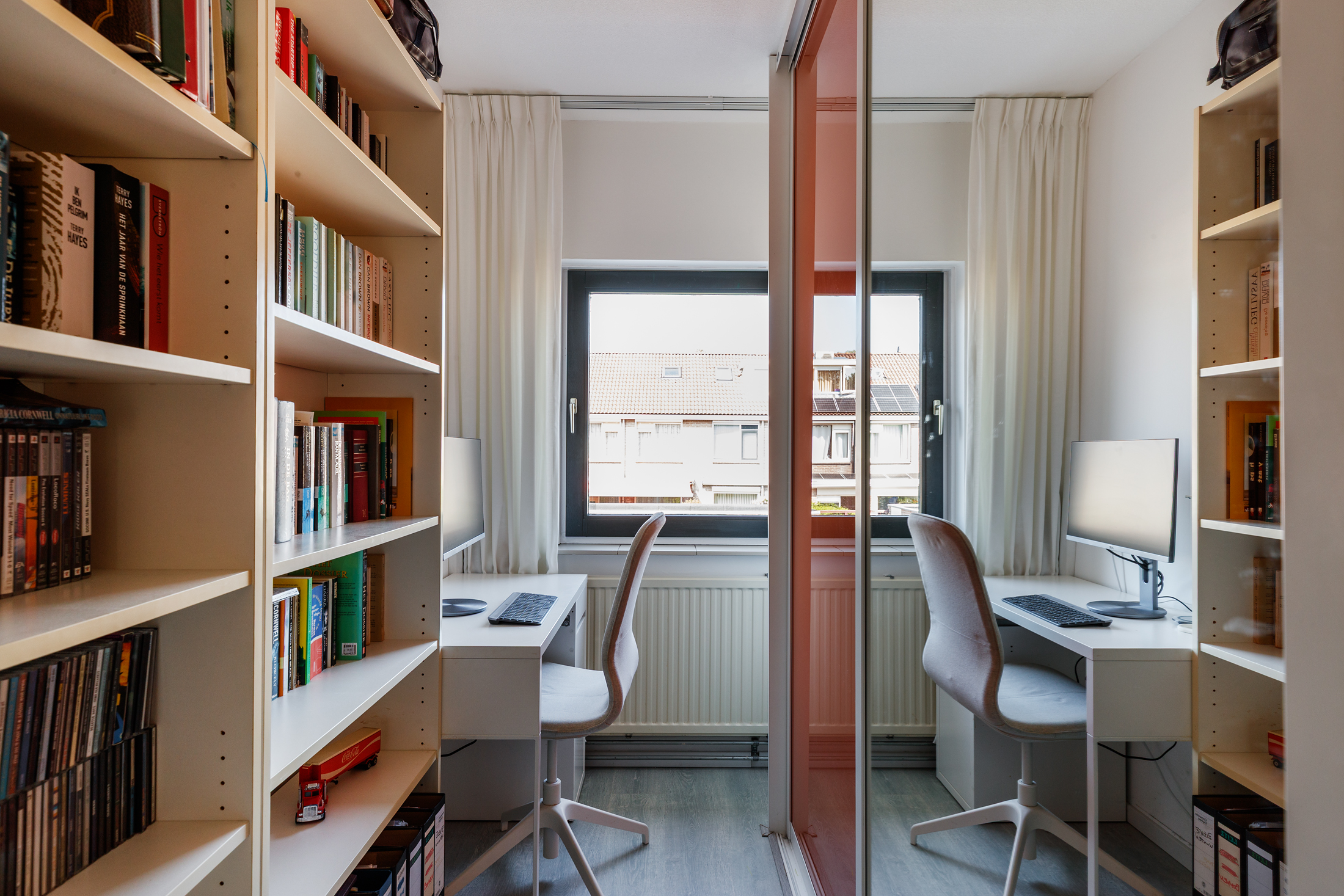 Goed onderhouden en ruime eengezinswoning met een voor- en achtertuin, veranda, berging en achterom. De woning is licht en comfortabel. De woonkamer is met name op de achtertuin gericht doordat de keuken aan de voorzijde ligt. Dit geeft veel privacy. Via de openslaande deuren staat de woonkamer direct in verbinding met de heerlijke achtertuin voorzien van een veranda, terrassen en voldoende bergruimte in de vrijstaande berging. Met de achtertuin op het noorden en de voortuin op het zuiden vind je de hele dag wel een plek om in de zon of juist de schaduw te genieten. De open keuken is modern en compleet. Op de eerste verdieping bevinden zich drie slaapkamers en een moderne badkamer. De tweede verdieping beschikt over een ruime overloop met wasruimte en bergruimte en een ruime vierde slaapkamer met vaste kastenwand en 2 dakramen. De woning is in 2018/2019 gerenoveerd waarbij onder andere de begane grond gestuct is en de afwerkvloeren vernieuwd zijn. Op het hoofddak zijn in 2021 zonnepanelen geplaatst.