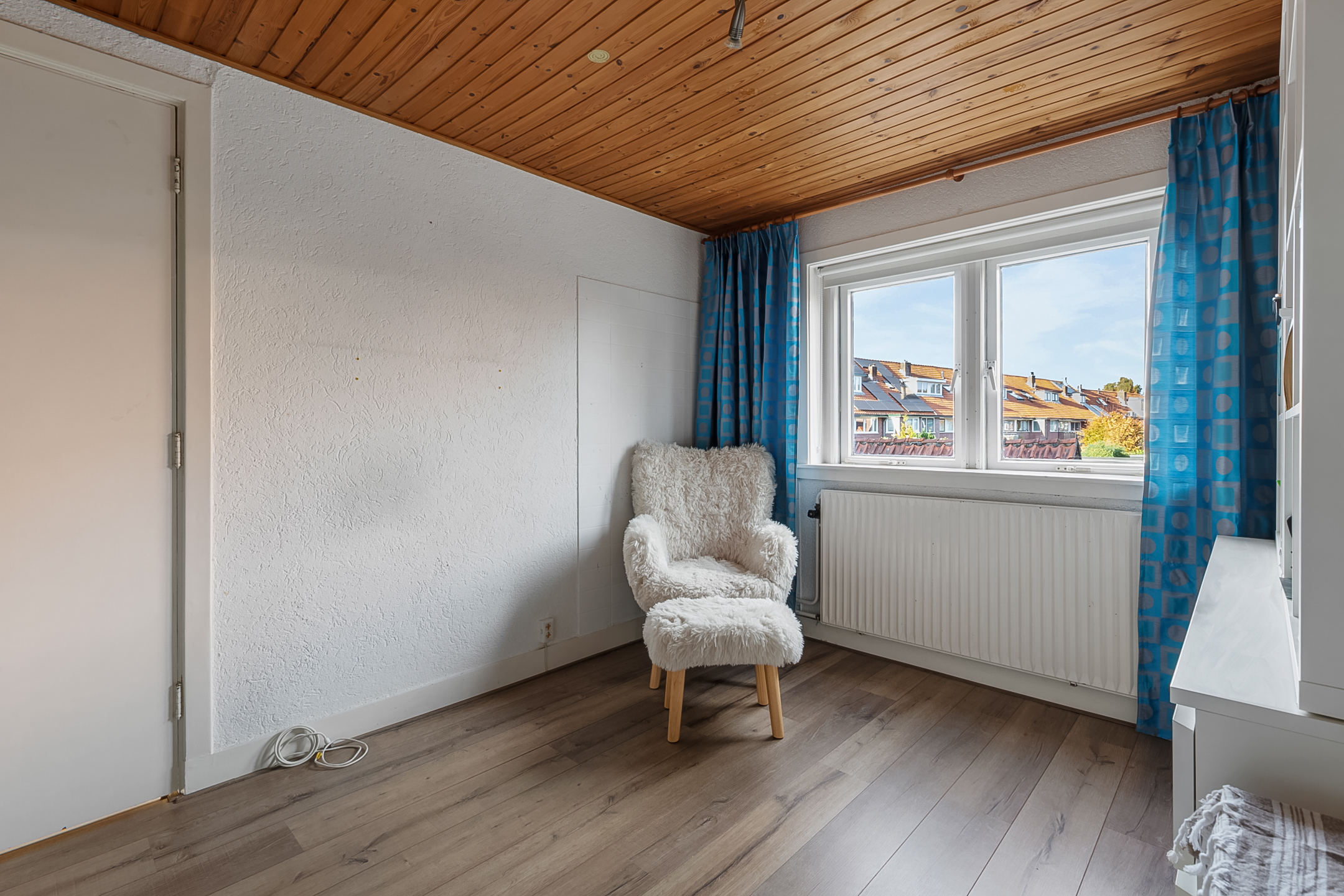 Deze fijne gezinswoning is goed onderhouden en beschikt over 2 ruime slaapkamers op de 1e verdieping en een ruime slaapkamer op de 2e verdieping met een dakkapel aan de voor- en achterzijde.