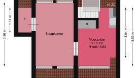 2e verdieping: via vaste trap bereikbare zolderverdieping, ruime overloop met dakkapel, 3e ruime slaapkamer met dakkapel aan de voor- en achterzijde en toegang tot een bergruimte.