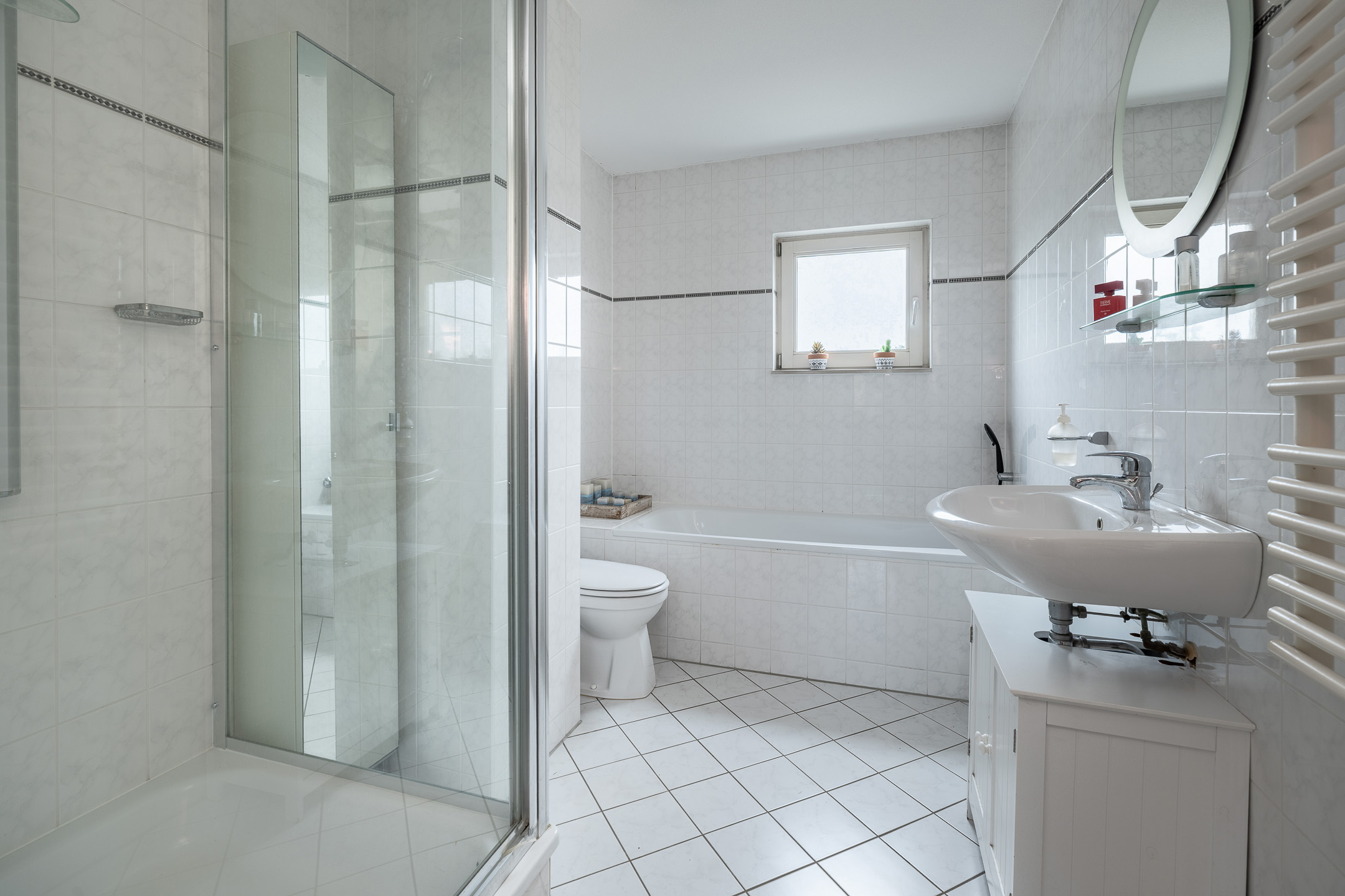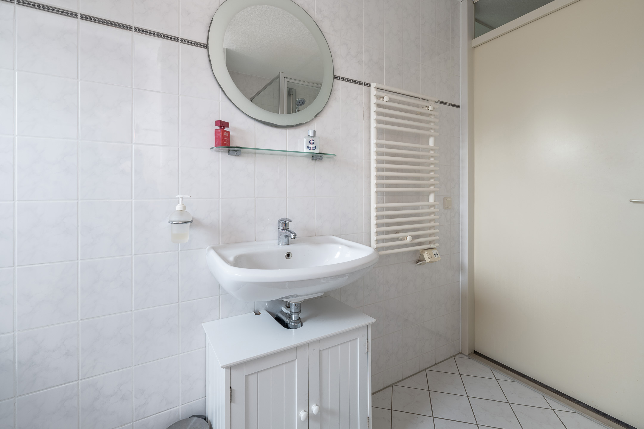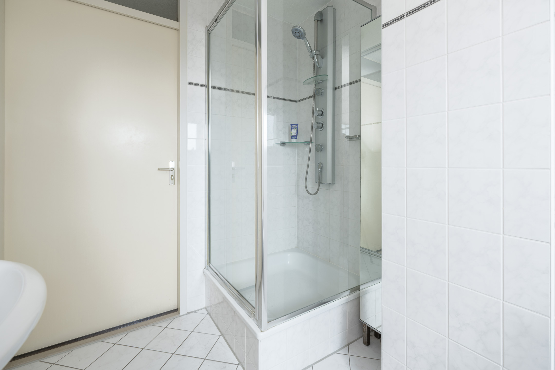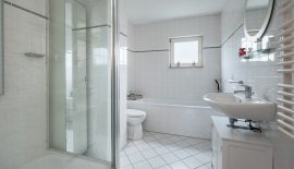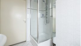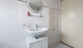 1e verdieping: overloop met toegang tot drie goed formaat slaapkamers, 1 grote en 1 middelgrote aan de achterzijde, de ruime hoofdslaapkamer en de complete badkamer aan de voorzijde. De badkamer heeft een praktische indeling en beschikt over een ligbad, separate douchecabine, toilet en een wastafel.