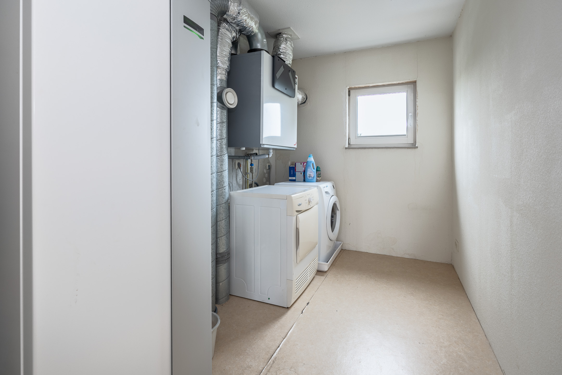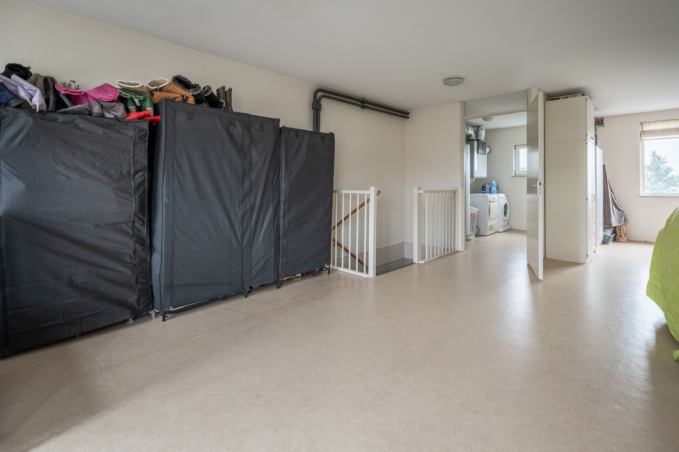 2e verdieping: volwaardige 2e verdieping welke op dit moment een grote open ruimte is, met in de hoek de was- en stookruimte. Hier kan je je fantasie de vrije loop laten over wat er allemaal mogelijk is met deze enorme ruimte.