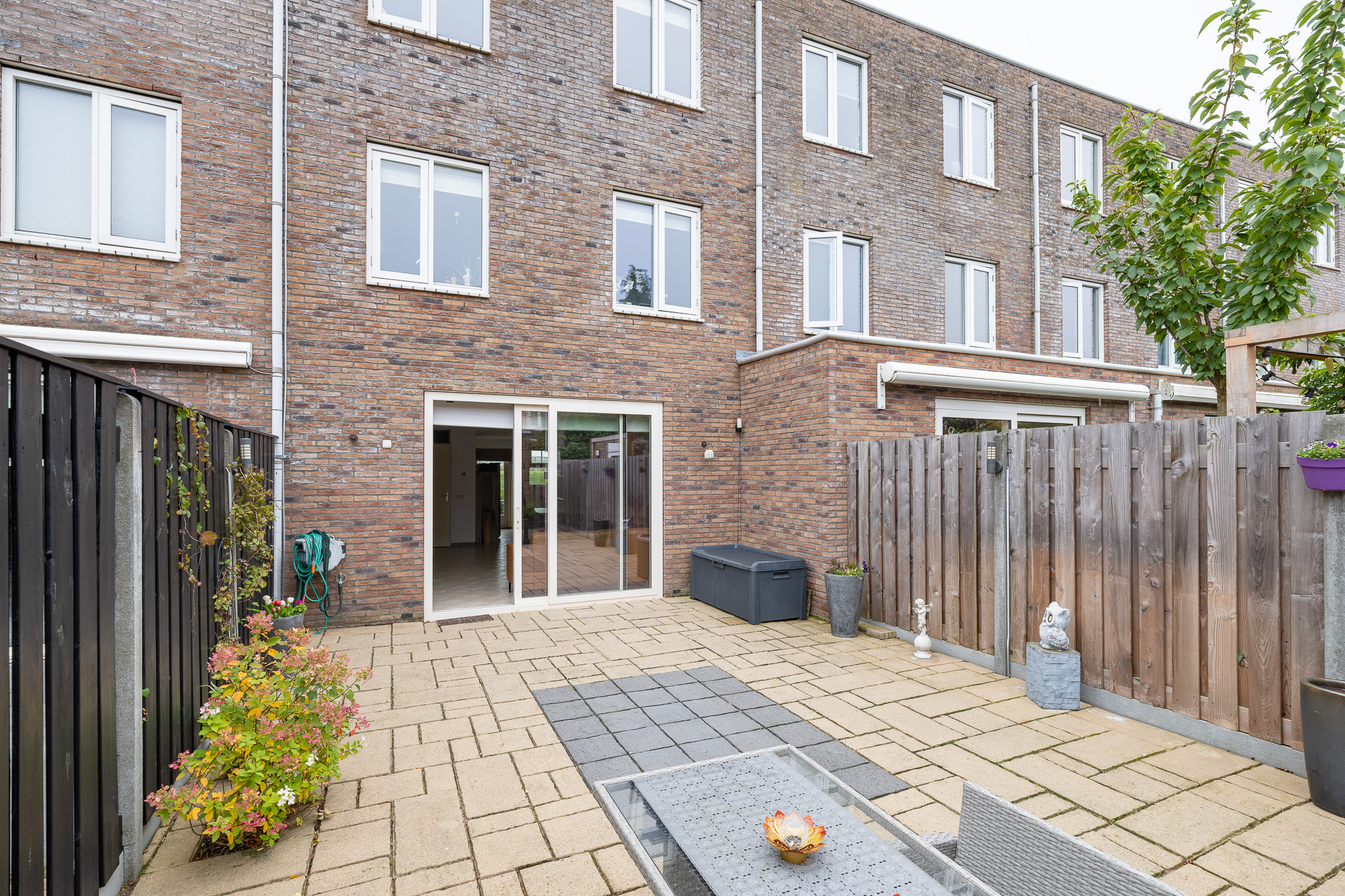 De achtertuin welke bereikbaar is via een achterom, heeft een mooi formaat, beschikt over een ruime stenen berging en ligt op het noordwesten waardoor er zon is tot het einde van de middag.
