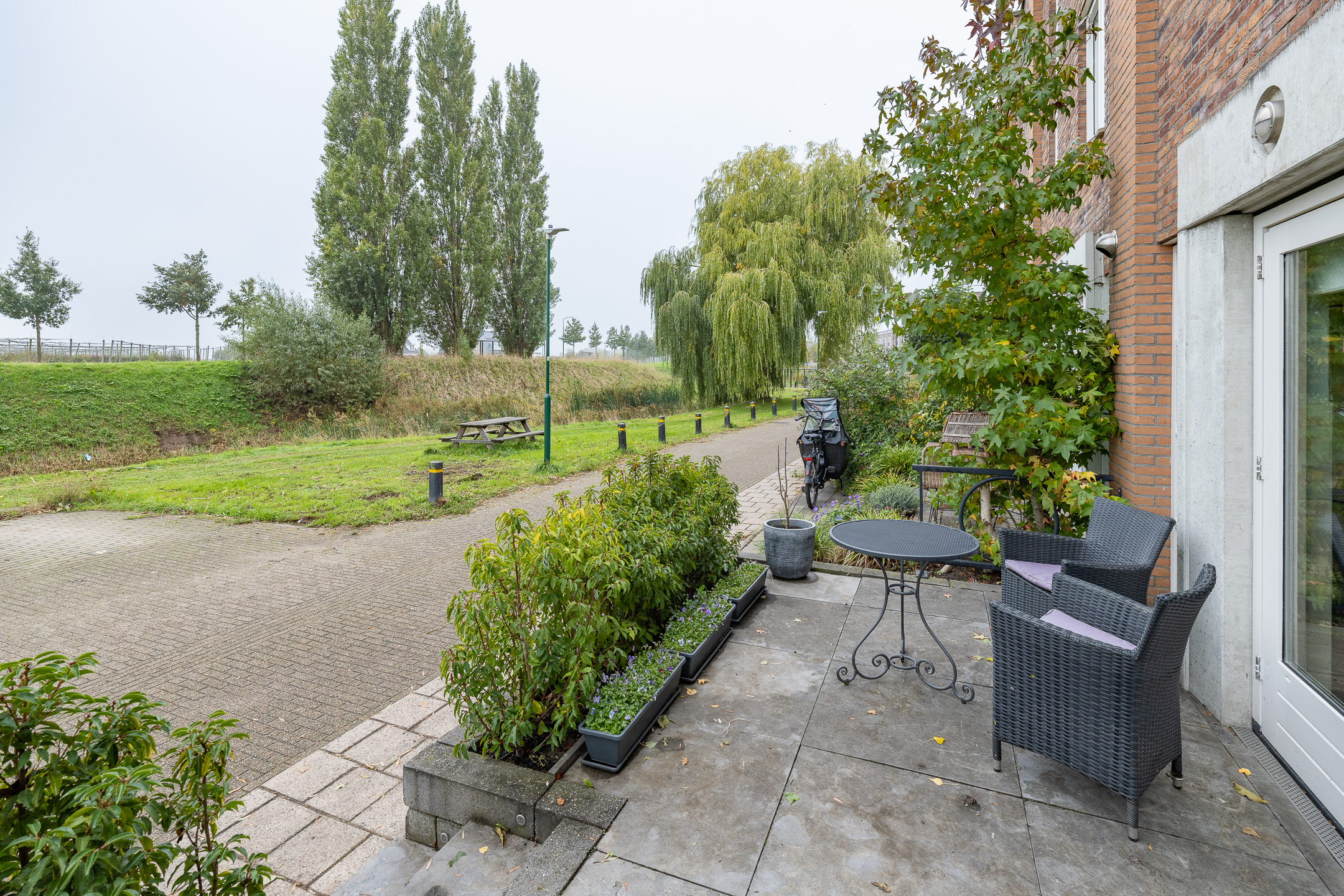De voortuin ligt op het zuidoosten en beschikt over een terras om een lekker kopje koffie te drinken in de ochtend zon.
