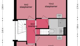 Overloop met zowel dakkapel als paneeldeuren voorzien van glas-in-lood ramen. Totaal bevinden zich hier 2 grote slaapkamers met wastafel en 2 kleinere slaapkamers. De grote kamer aan de achterzijde beschikt over openslaande deuren naar het balkon, wat in 2020 geheel gerenoveerd is. Centraal in het midden ligt een nette badkamer met douchecabine, toilet, wastafel en vloerverwarming.