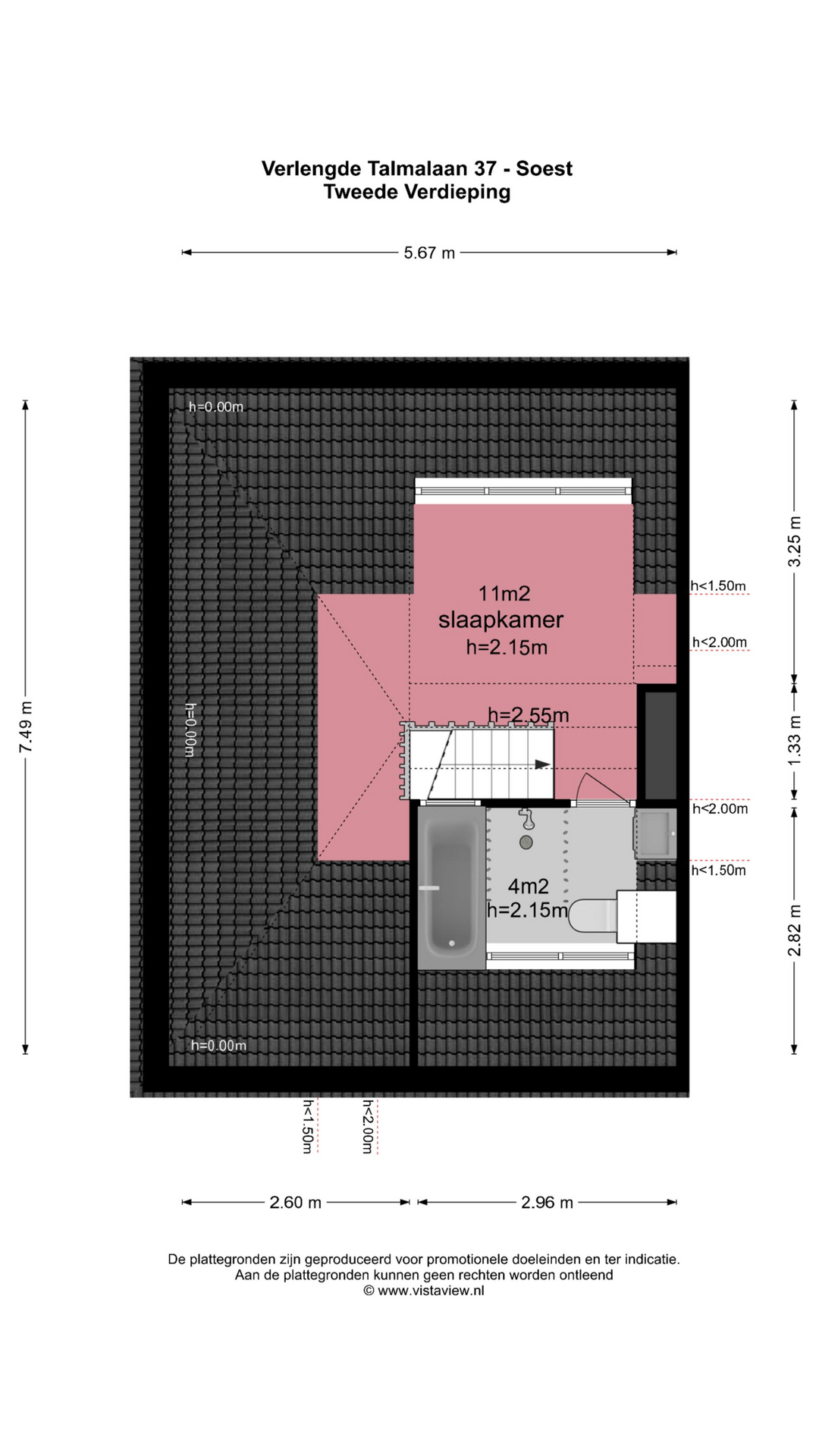 Op deze woonetage met 2 kunststof dakkapellen bevindt zich de L-vormige hoofdslaapkamer met veel bergruimte alsmede een 2e badkamer voorzien van ligbad, wastafel, zwevend toilet en vloerverwarming.