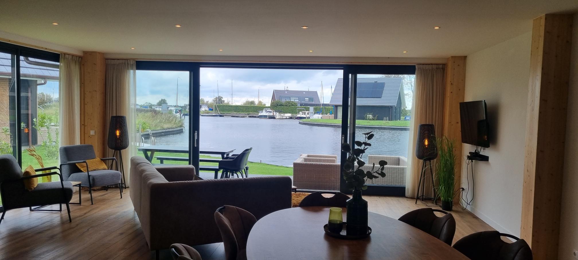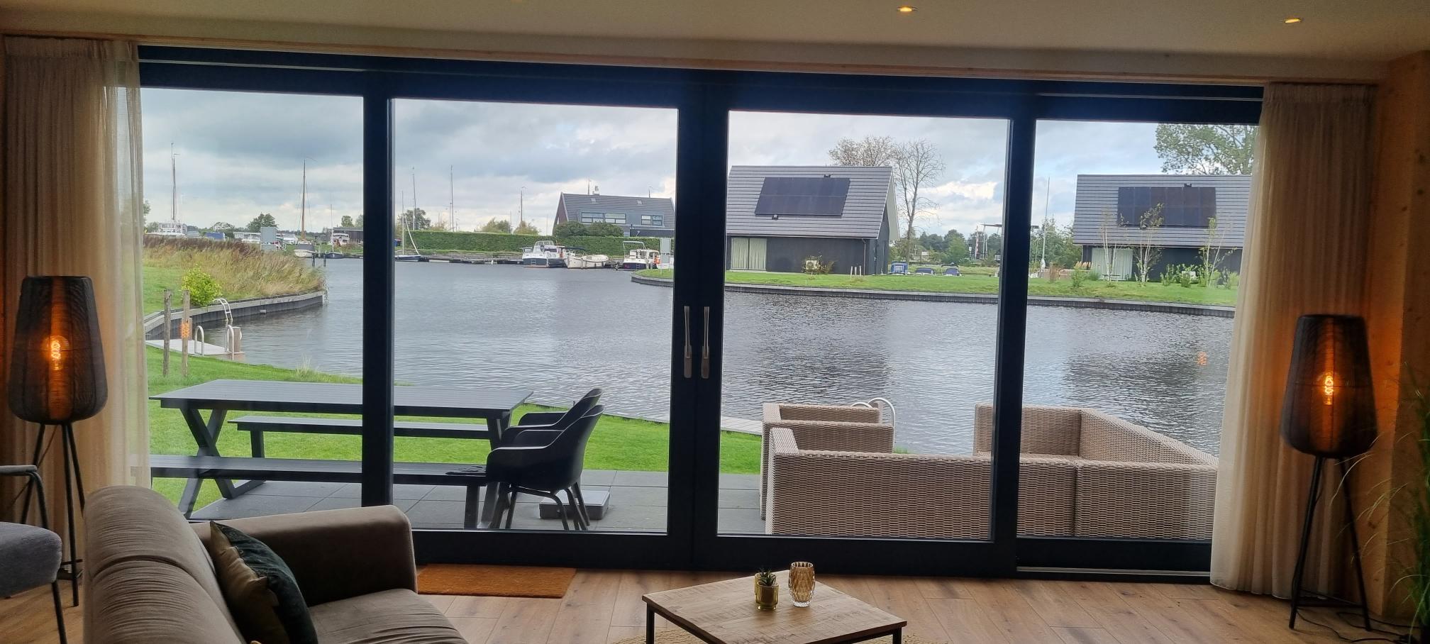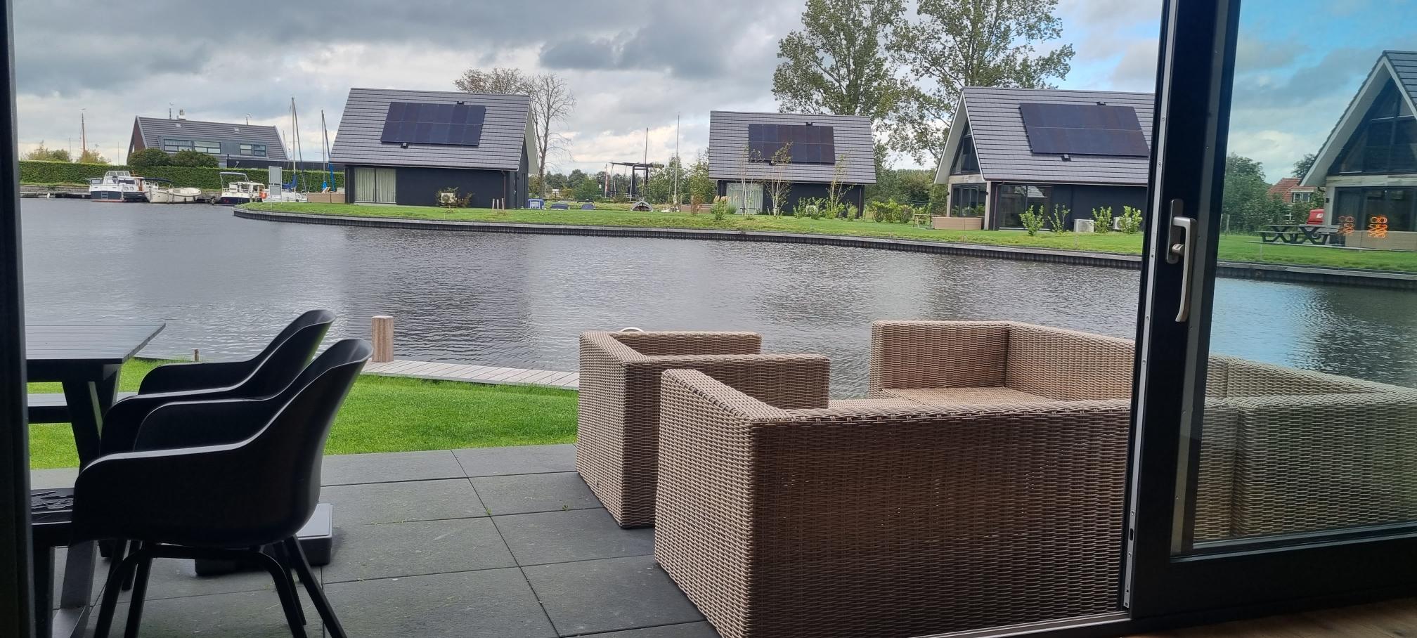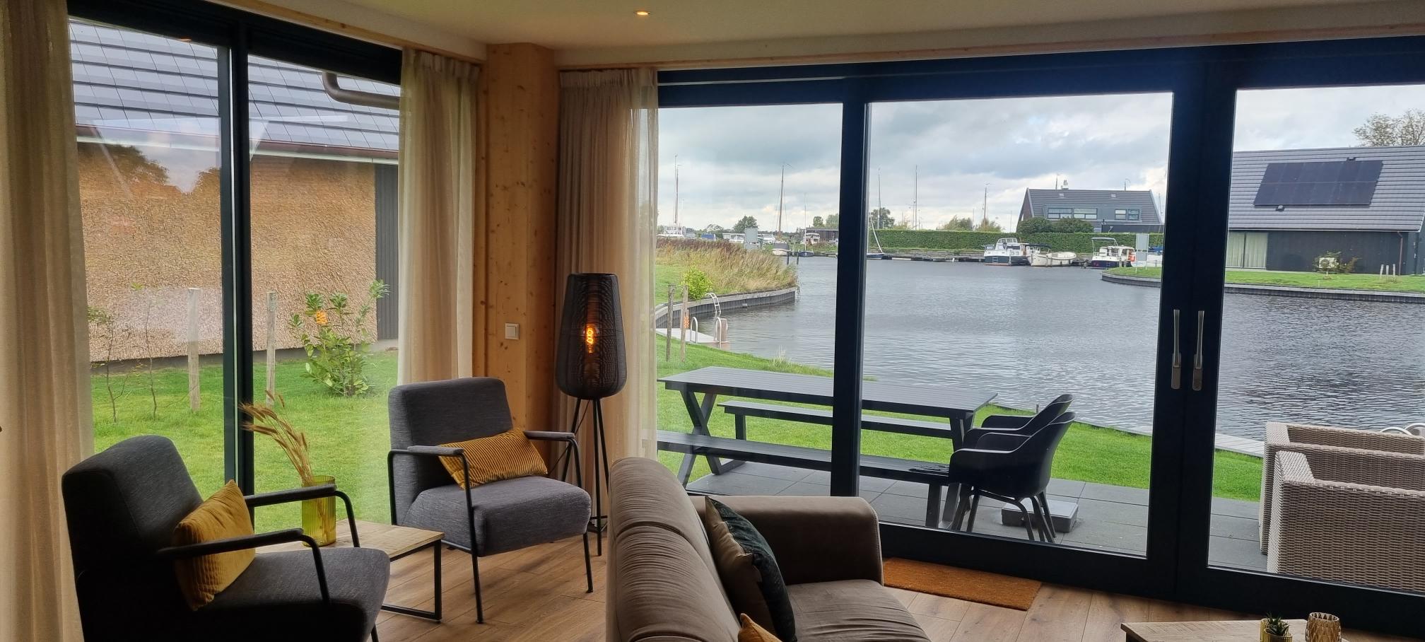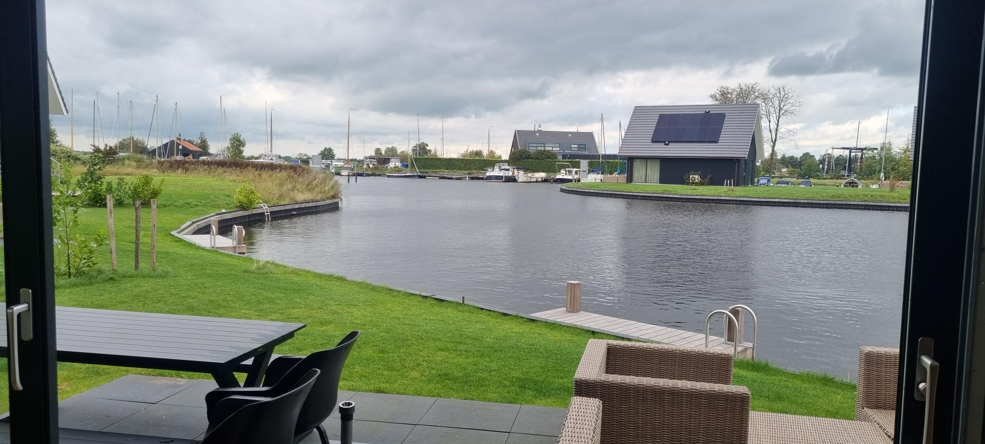 Aan een beschutte haven en open vaarwater bij Nationaal Park De Ålde Feanen ligt deze in 2022 nieuw gebouwde, duurzame en gasloze 6-persoons recreatievilla van circa 120 m2 met 3 slaapkamers, 2 badkamers en een eigen aanlegsteiger op een royaal perceel van 1140 m2 eigen grond inclusief water, een brede fraai aangelegde oevertuin, parkeerstrook en toegangsweg. Deze woning is in 2022 compleet afgewerkt met fraaie PVC-vloeren, strakke wanden, leuke houten interieurdetails, LED verlichting, complete keuken met inbouwapparatuur en fraai sanitair. De complete inrichting / meubilering / stoffering / inventaris is separaat ter overname.