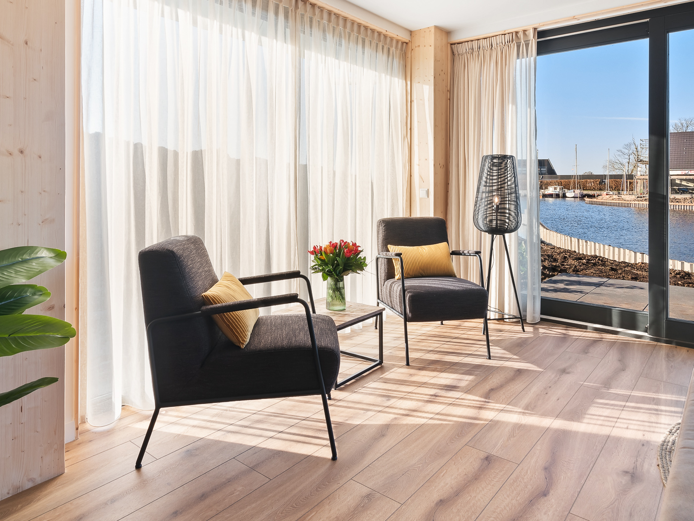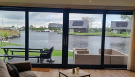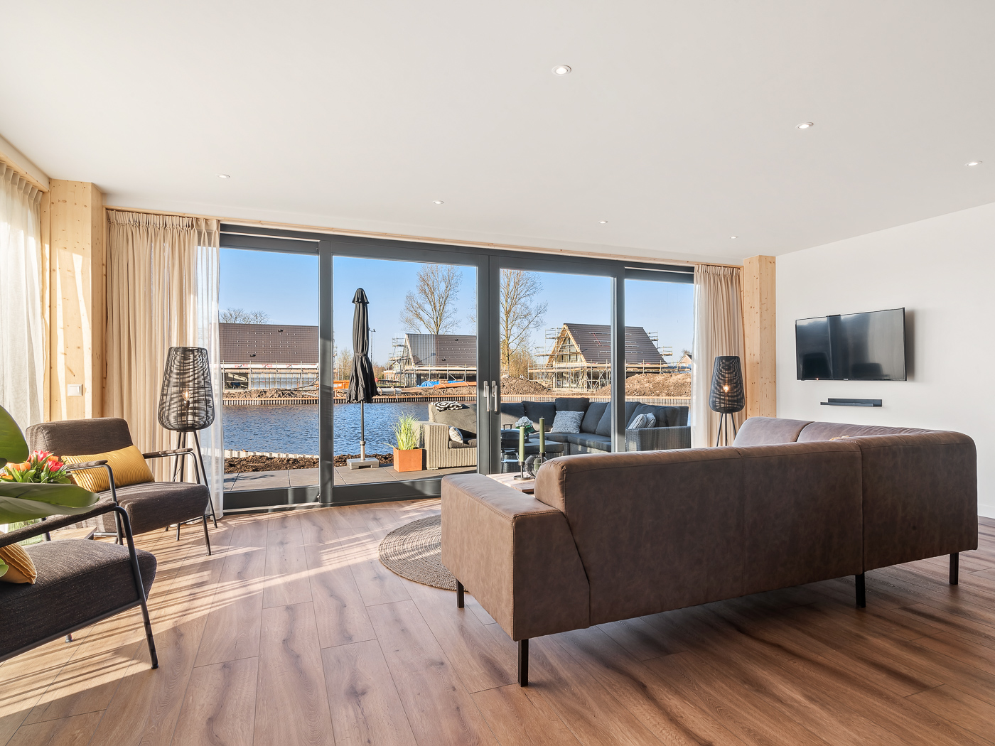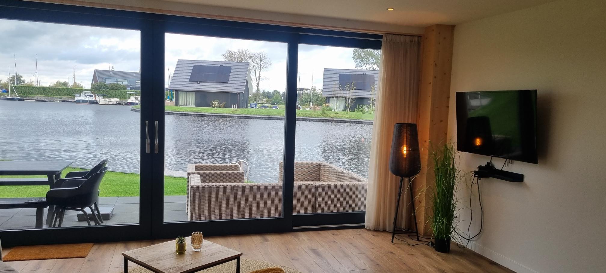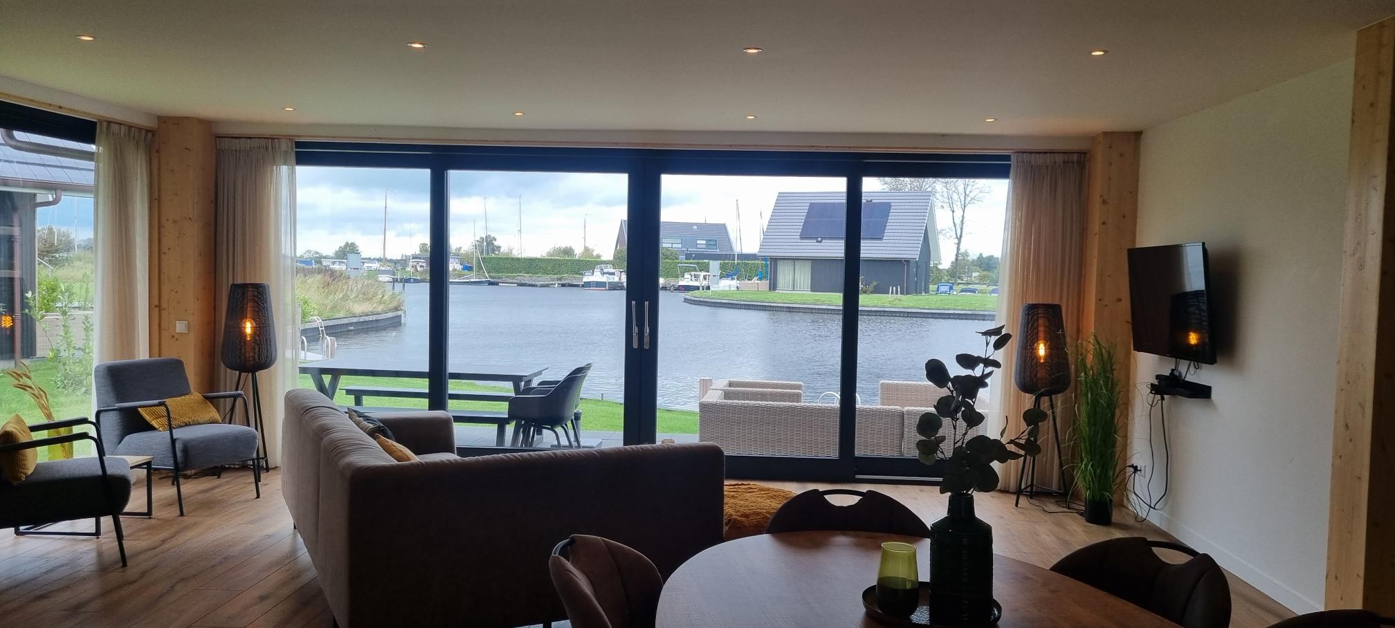Aan een beschutte haven en open vaarwater bij Nationaal Park De Ålde Feanen ligt deze in 2022 nieuw gebouwde, duurzame en gasloze 6-persoons recreatievilla van circa 120 m2 met 3 slaapkamers, 2 badkamers en een eigen aanlegsteiger op een royaal perceel van 1140 m2 eigen grond inclusief water, een brede fraai aangelegde oevertuin, parkeerstrook en toegangsweg. Deze woning is in 2022 compleet afgewerkt met fraaie PVC-vloeren, strakke wanden, leuke houten interieurdetails, LED verlichting, complete keuken met inbouwapparatuur en fraai sanitair. De complete inrichting / meubilering / stoffering / inventaris is separaat ter overname.