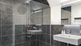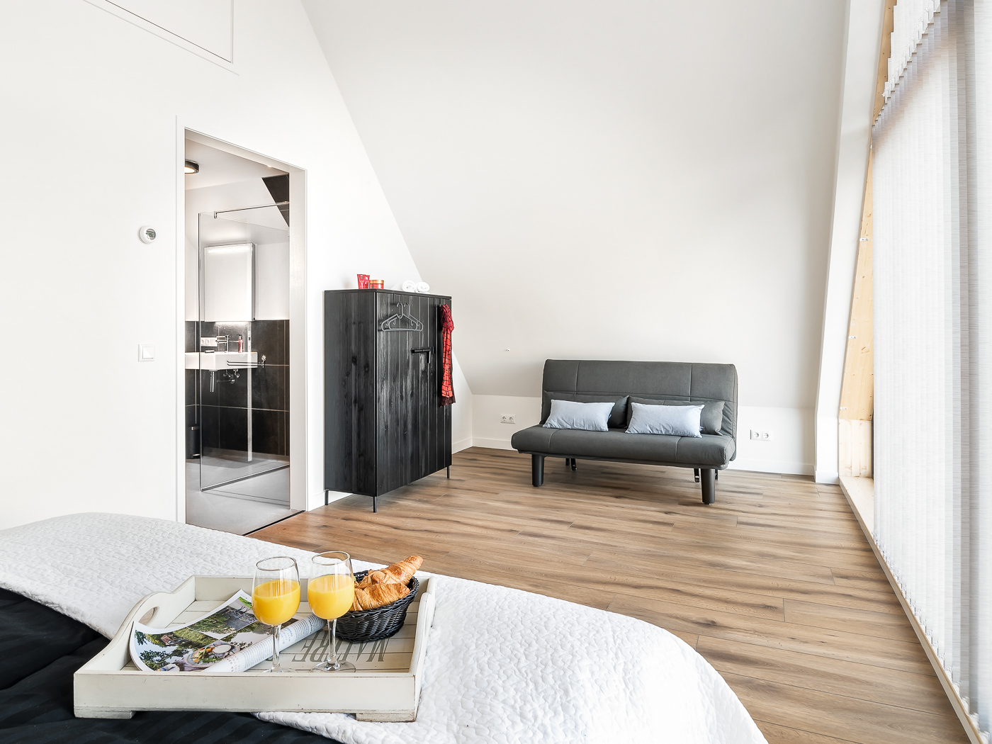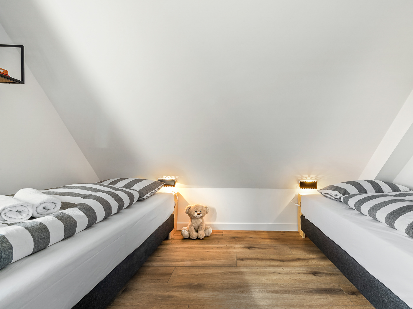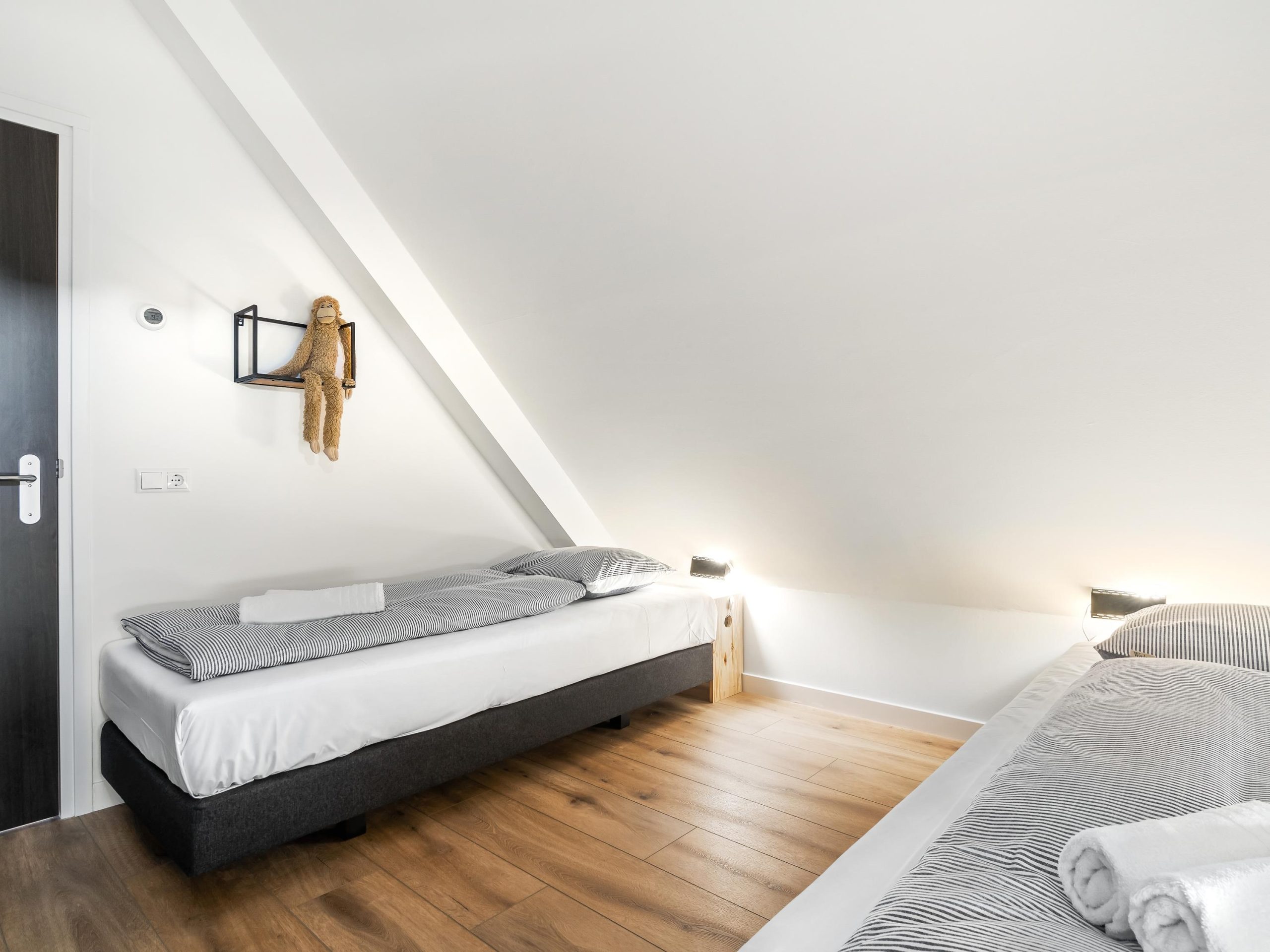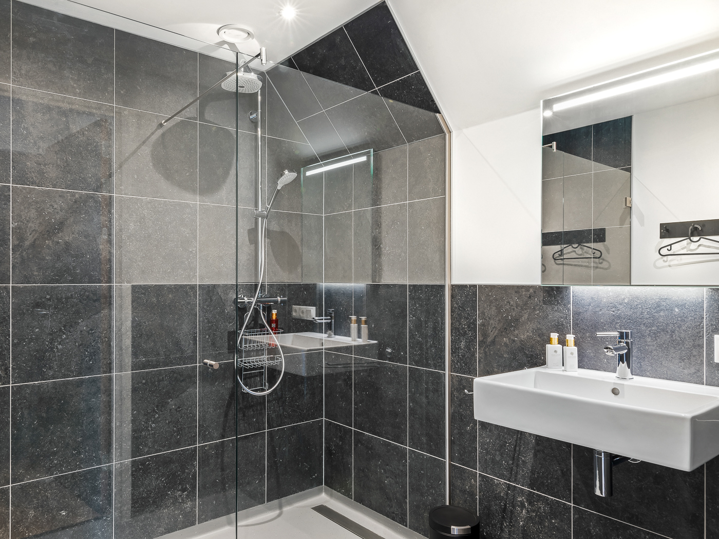 Overloop met luxe hangend toilet en fonteintje. Riante hoofdslaapkamer met grote driehoekige glaspui met openslaande deuren en een Frans balkon waar vanuit u een panoramisch uitzicht heeft op het water. Deze master-bedroom beschikt over een eigen inloopdouche met wastafel. Ook is een grote kofferberging aanwezig, waar u bijvoorbeeld ook uw privéspullen kunt opbergen. Aan de voorzijde bevinden zich nog 2 slaapkamers, beide met gevelraam. Een 2e luxe badkamer met inloopdouche, glaswand, wastafelmeubel en tuimelraam maken het geheel compleet.